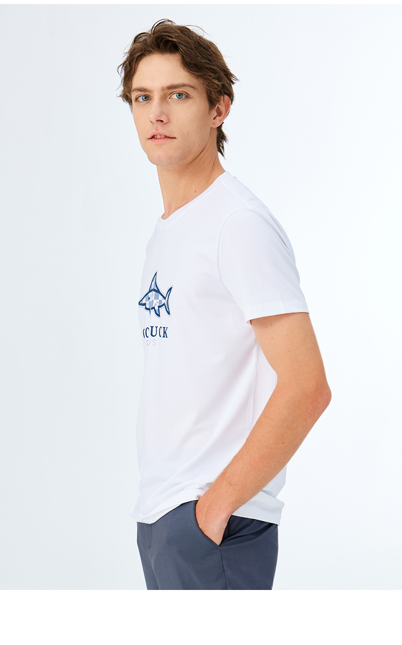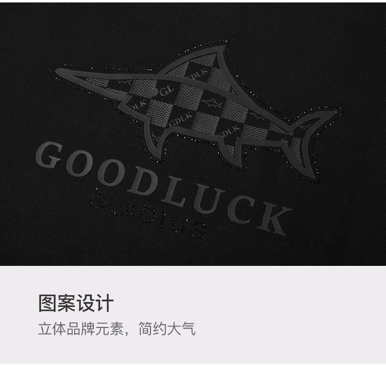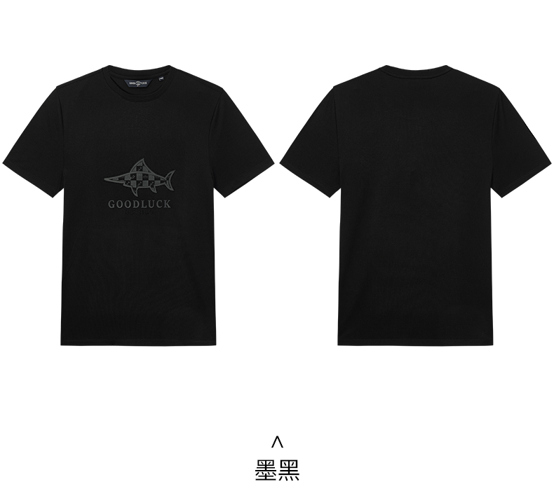 【纯棉提花】德鲨鲨鱼黑色短袖T恤男2026夏新款休闲打底衫