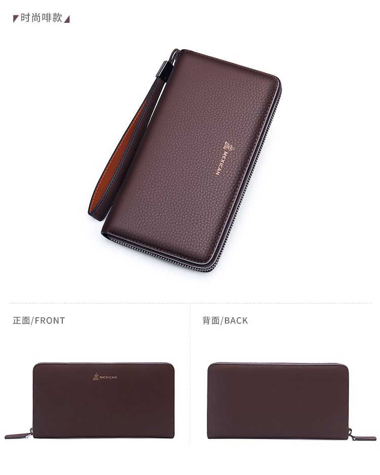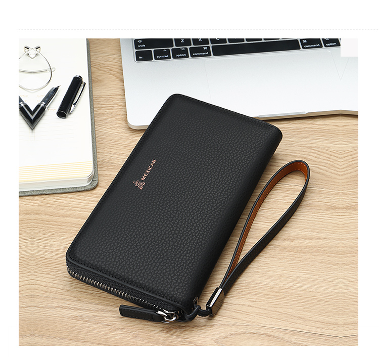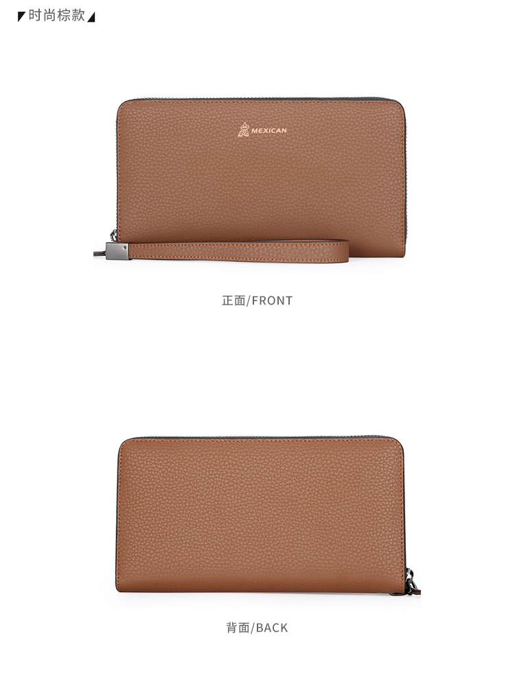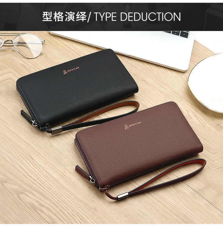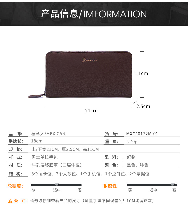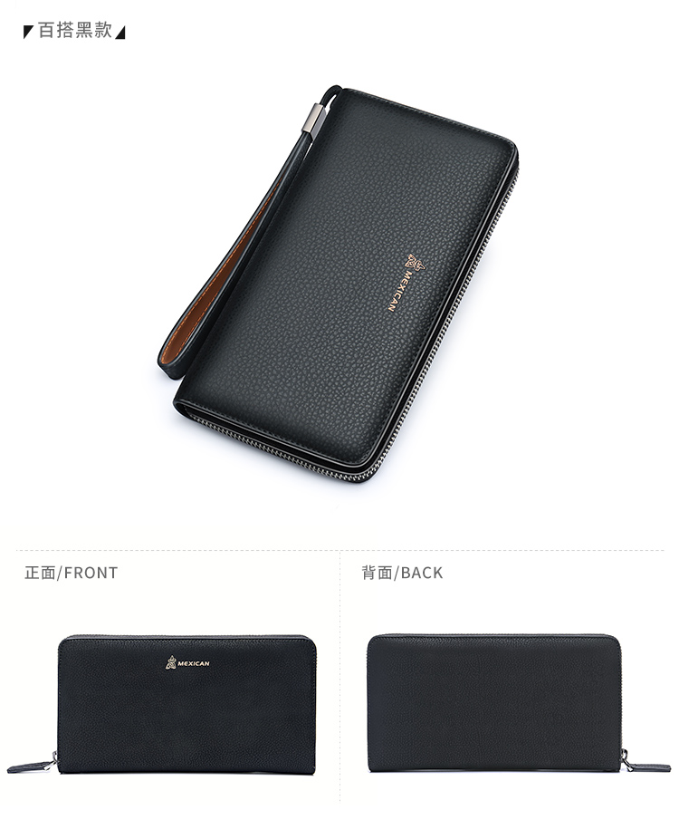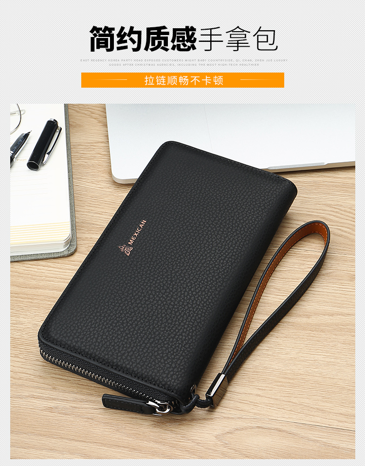 稻草人Mexican商务男士质感牛皮手包男式大容量手抓包男款钱包单拉手拿包MXC40172M-01黑色