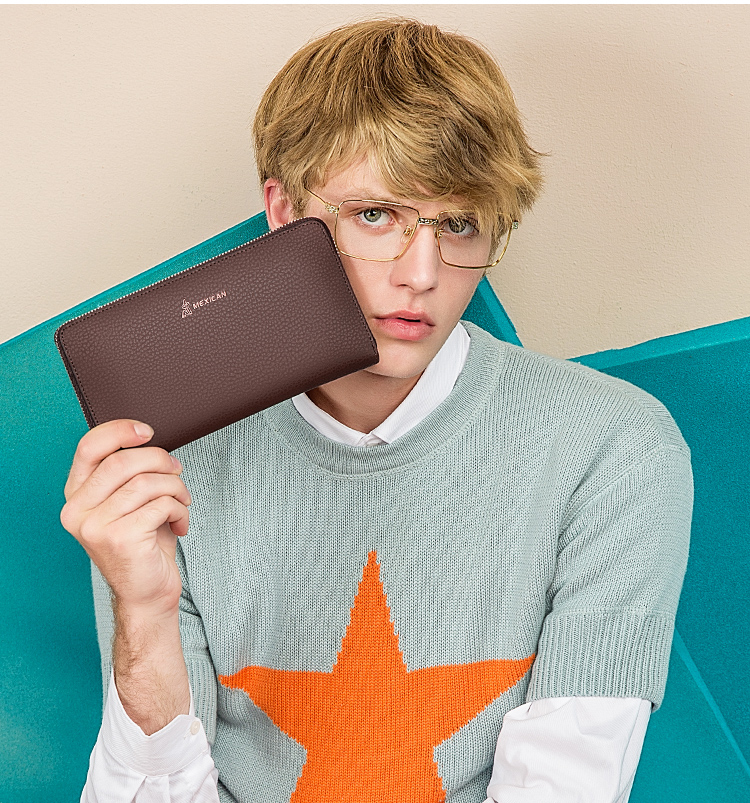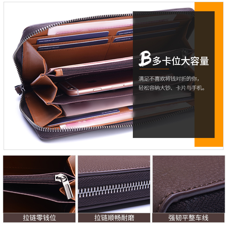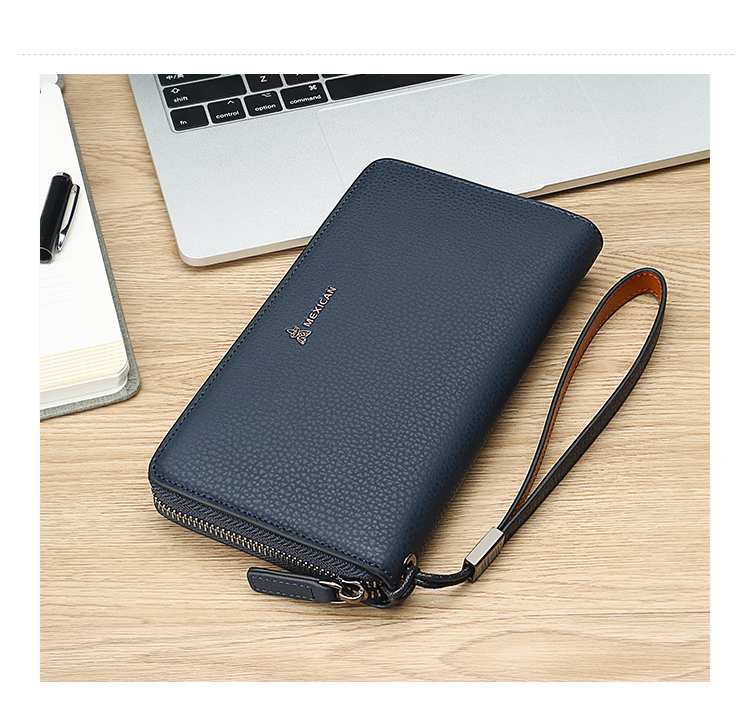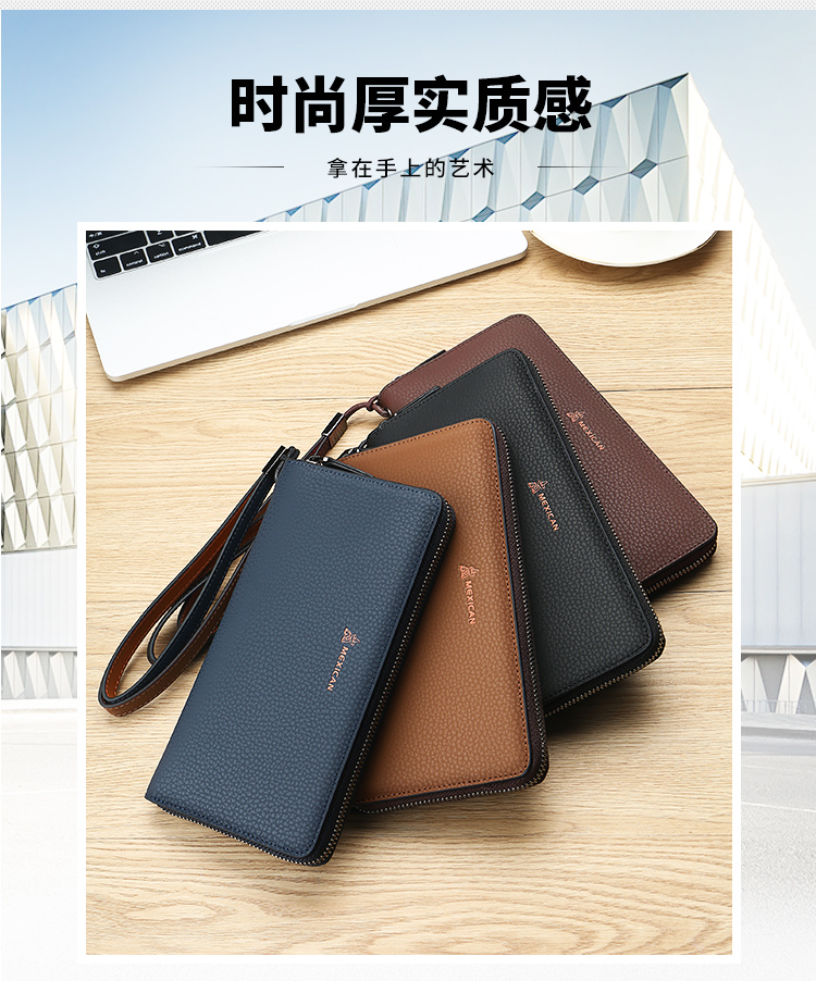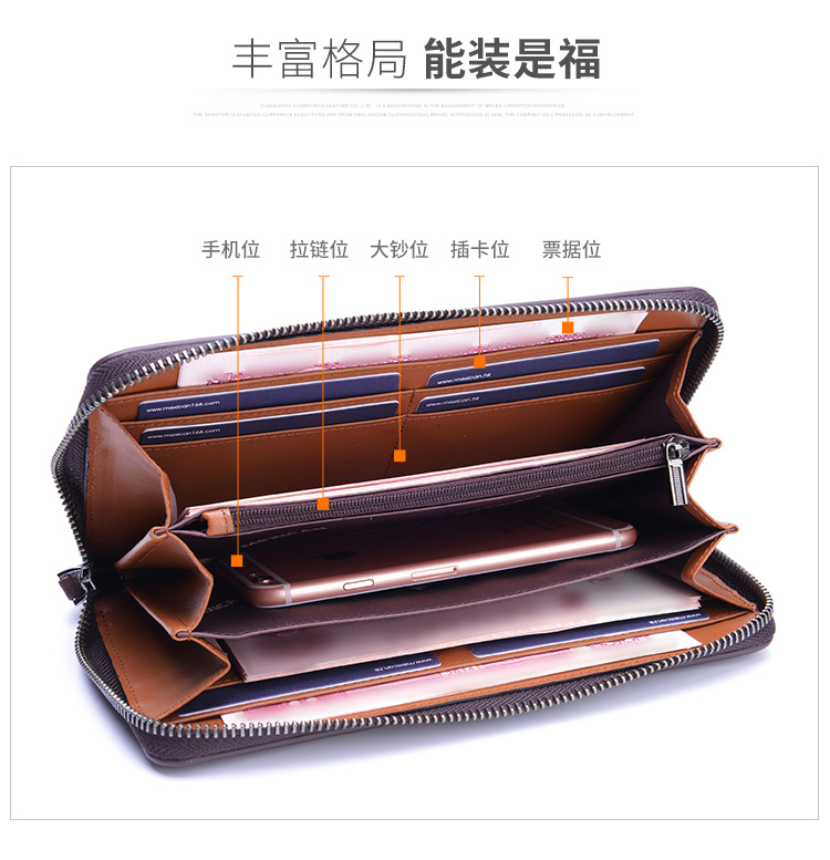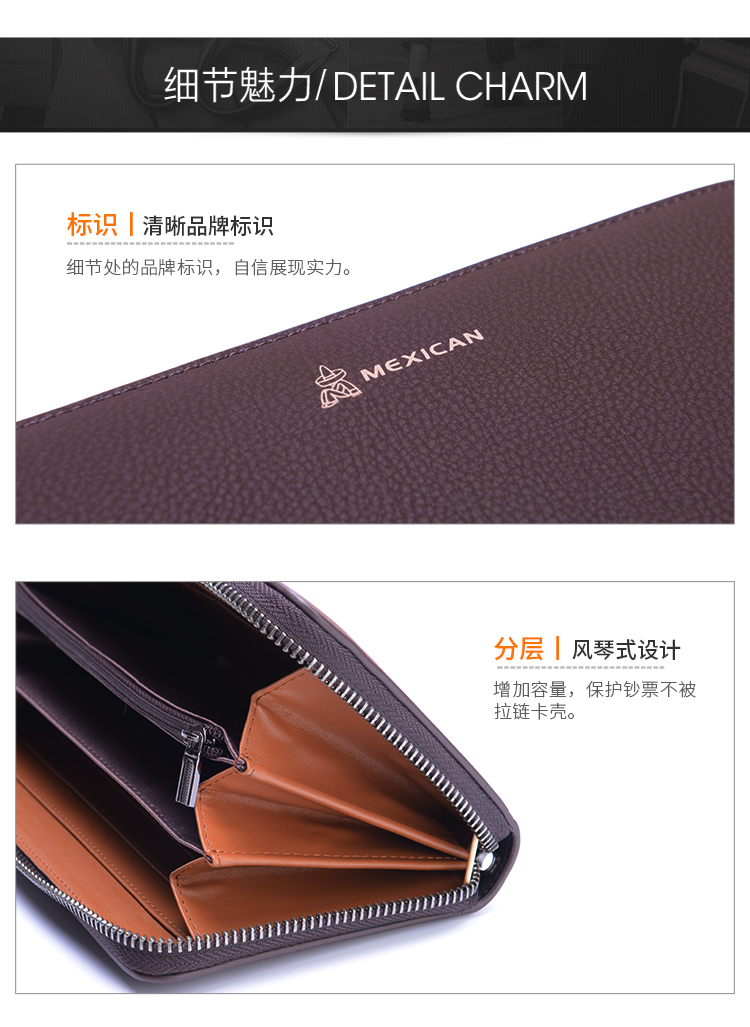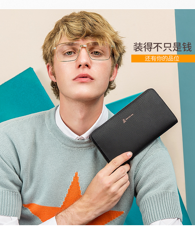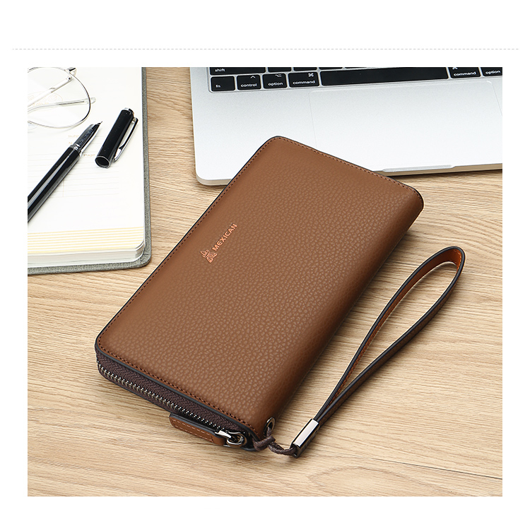 稻草人Mexican商务男士质感牛皮手包男式大容量手抓包男款钱包单拉手拿包MXC40172M-01黑色