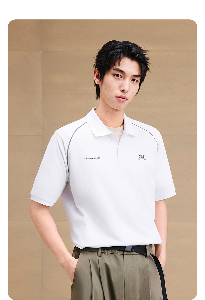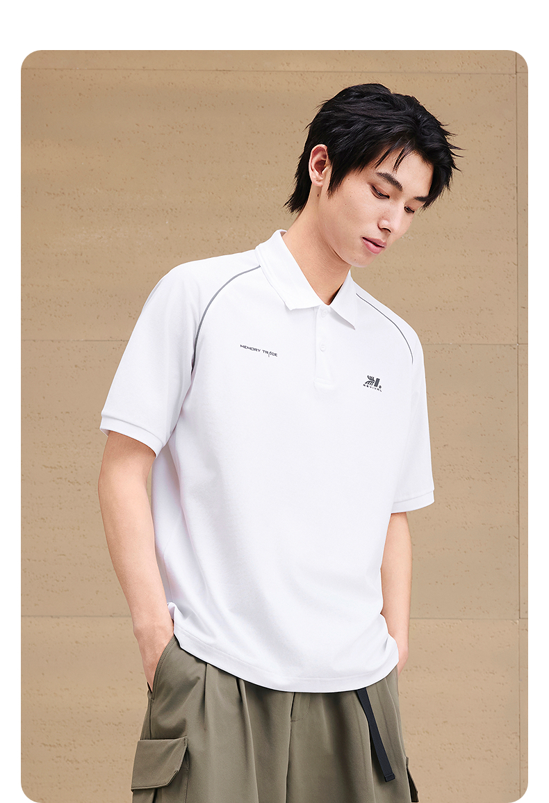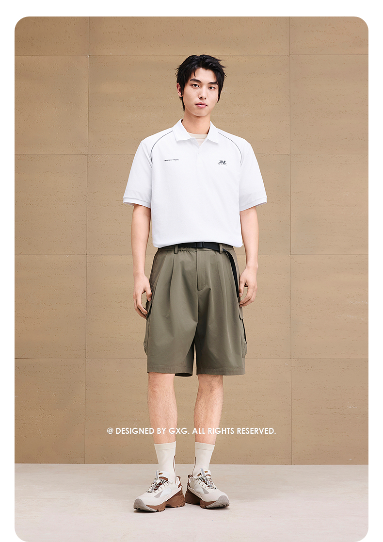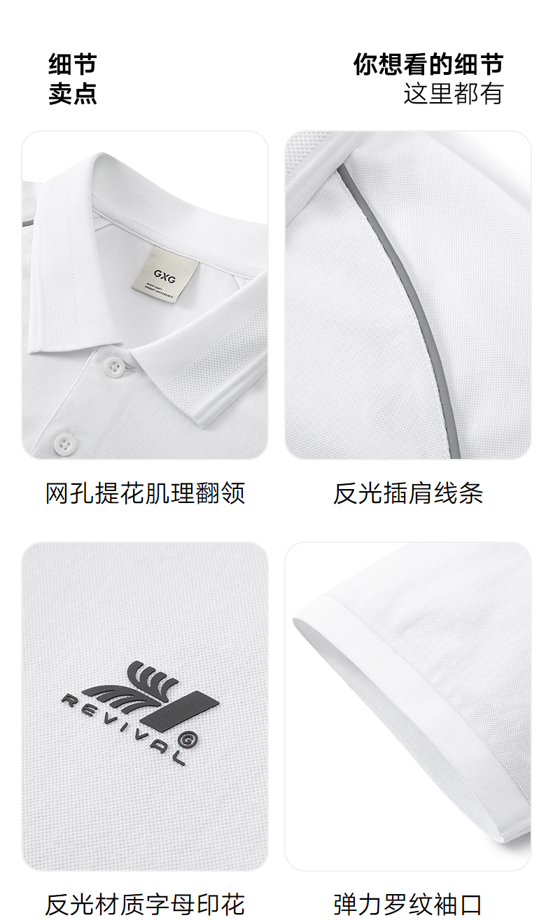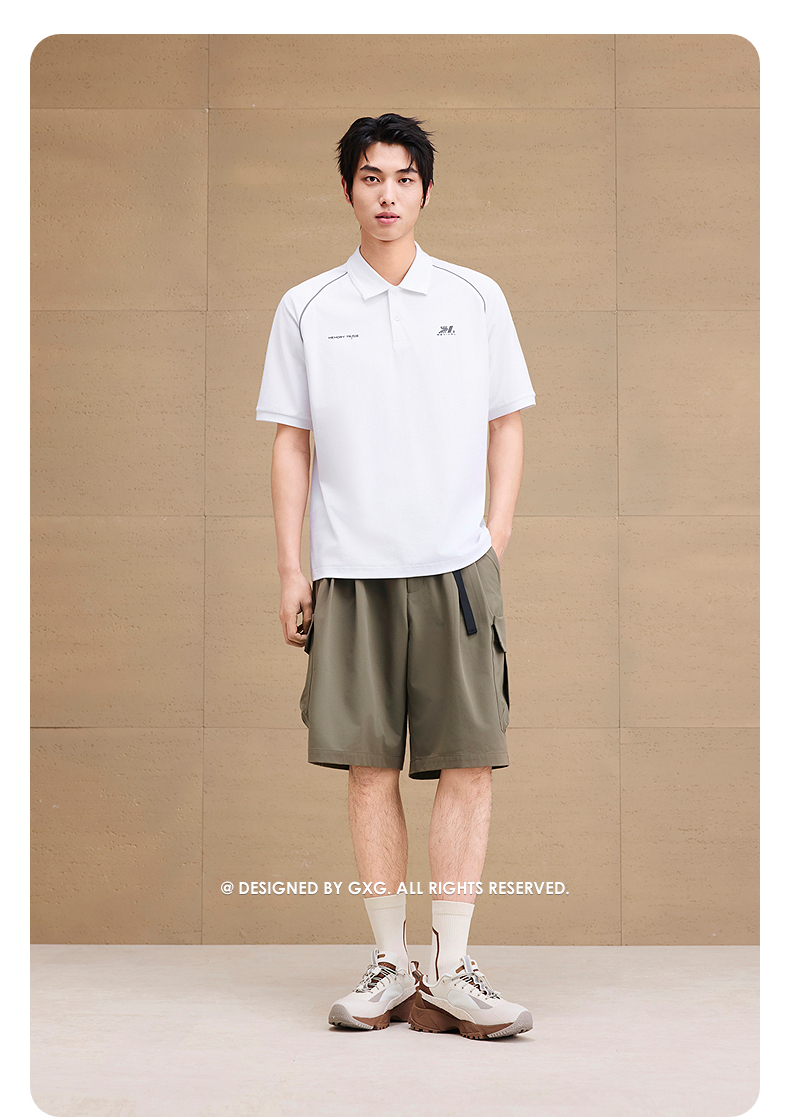 GXG男装 重磅分割印花反光休闲polo衫男士翻领短袖上衣 25夏热卖
