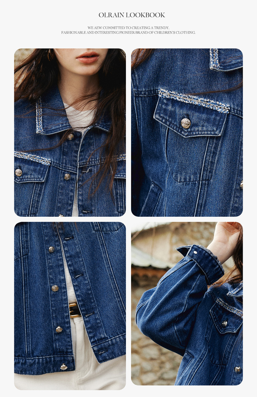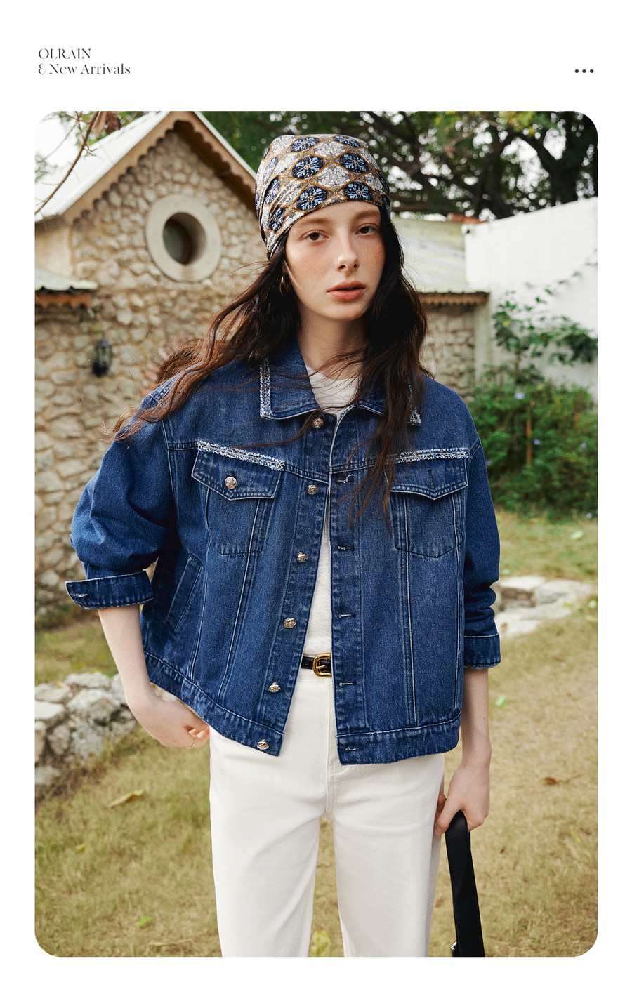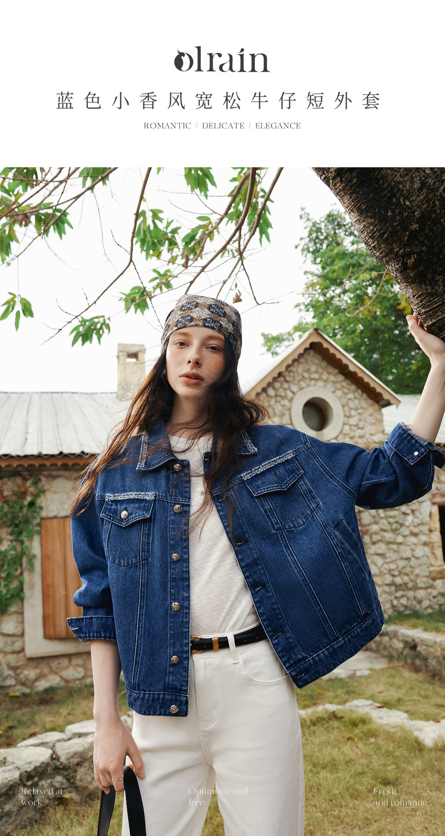 OLrain欧芮儿复古时尚休闲牛仔外套2026春新款宽松短款夹克上衣女