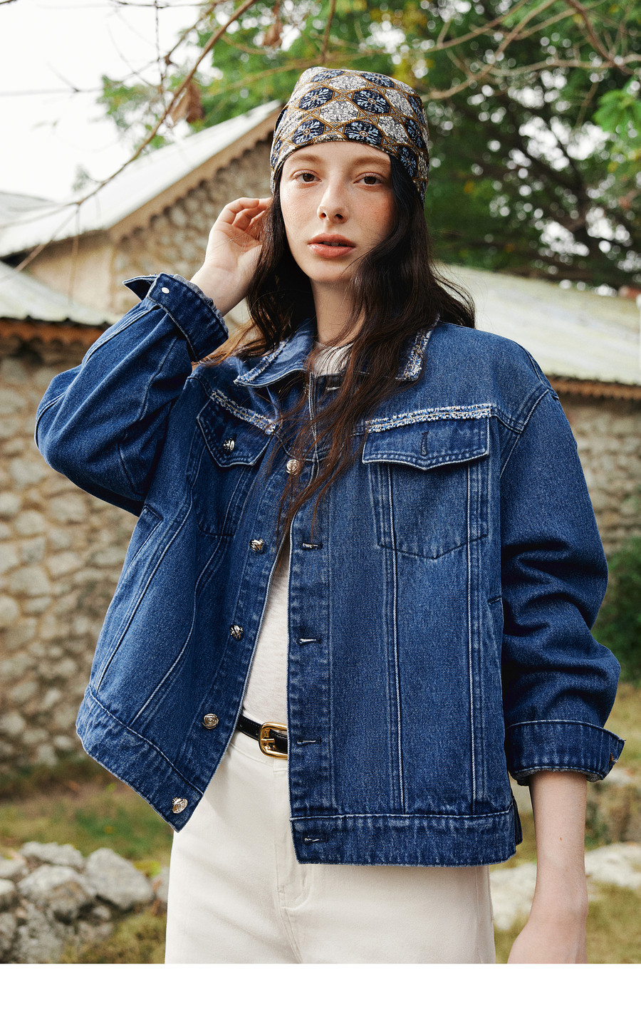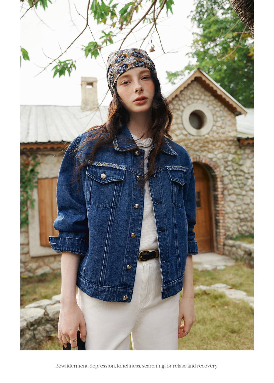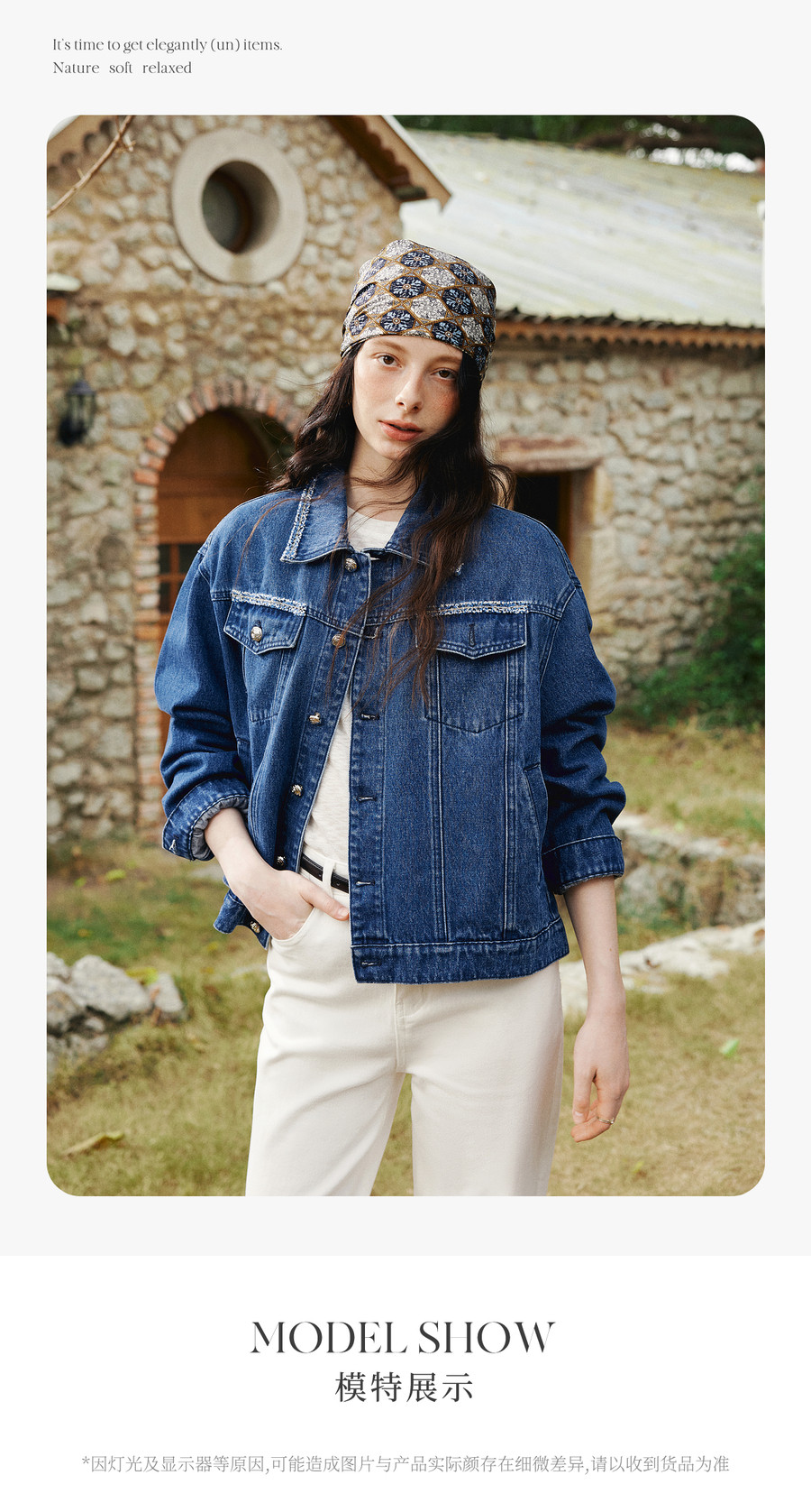 OLrain欧芮儿复古时尚休闲牛仔外套2026春新款宽松短款夹克上衣女