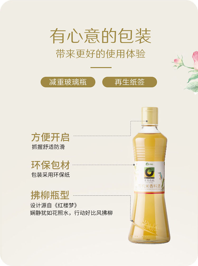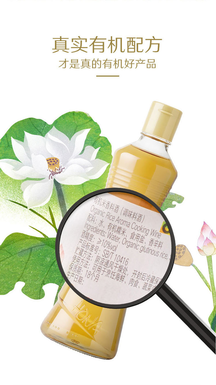 禾然有机料酒500ml 米香料酒 增香提鲜去腥炒菜家用 0食品添加剂