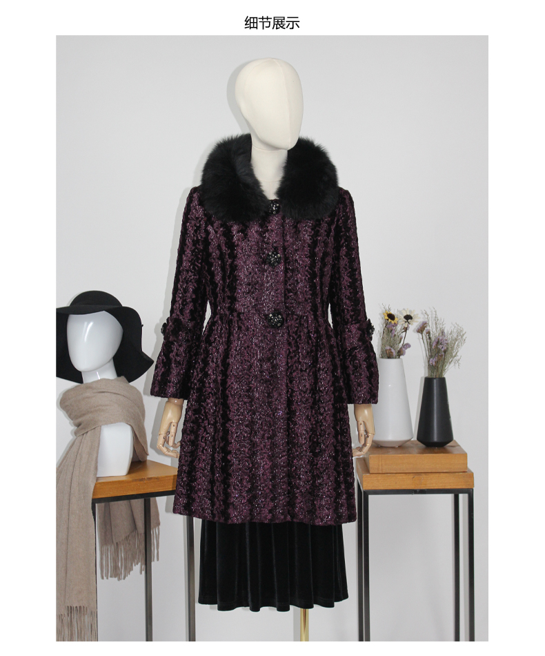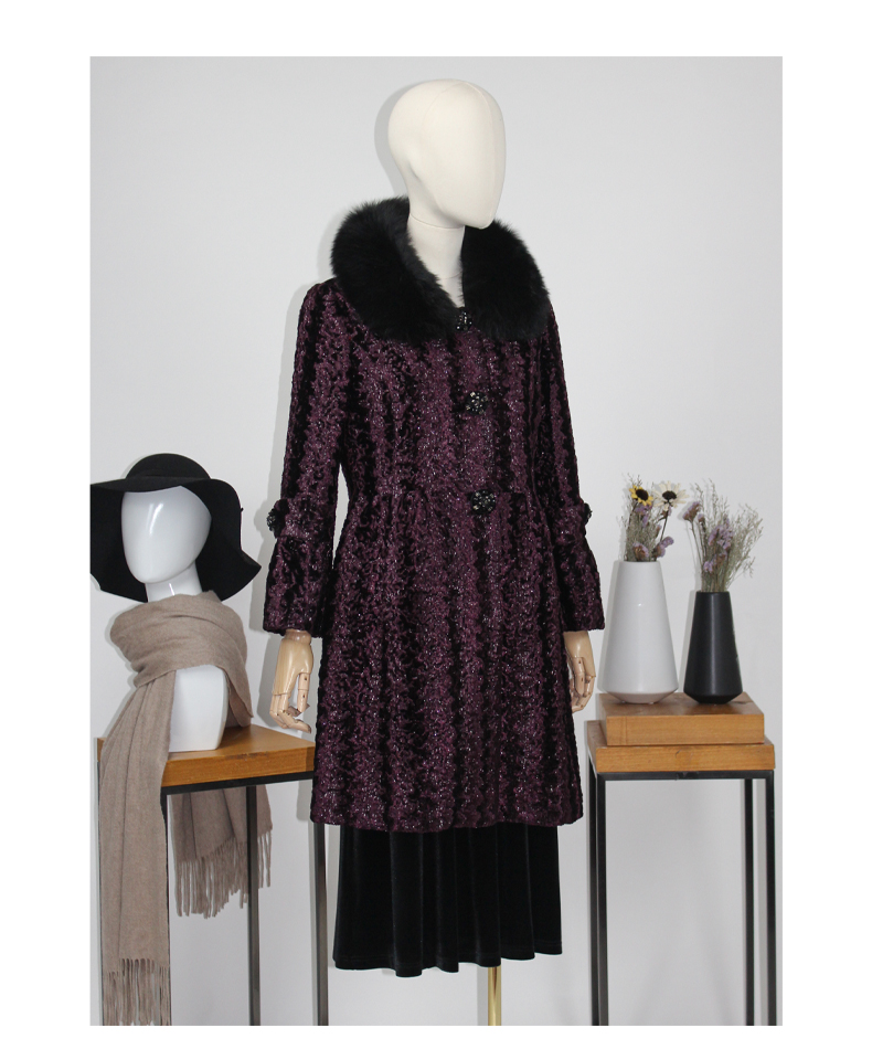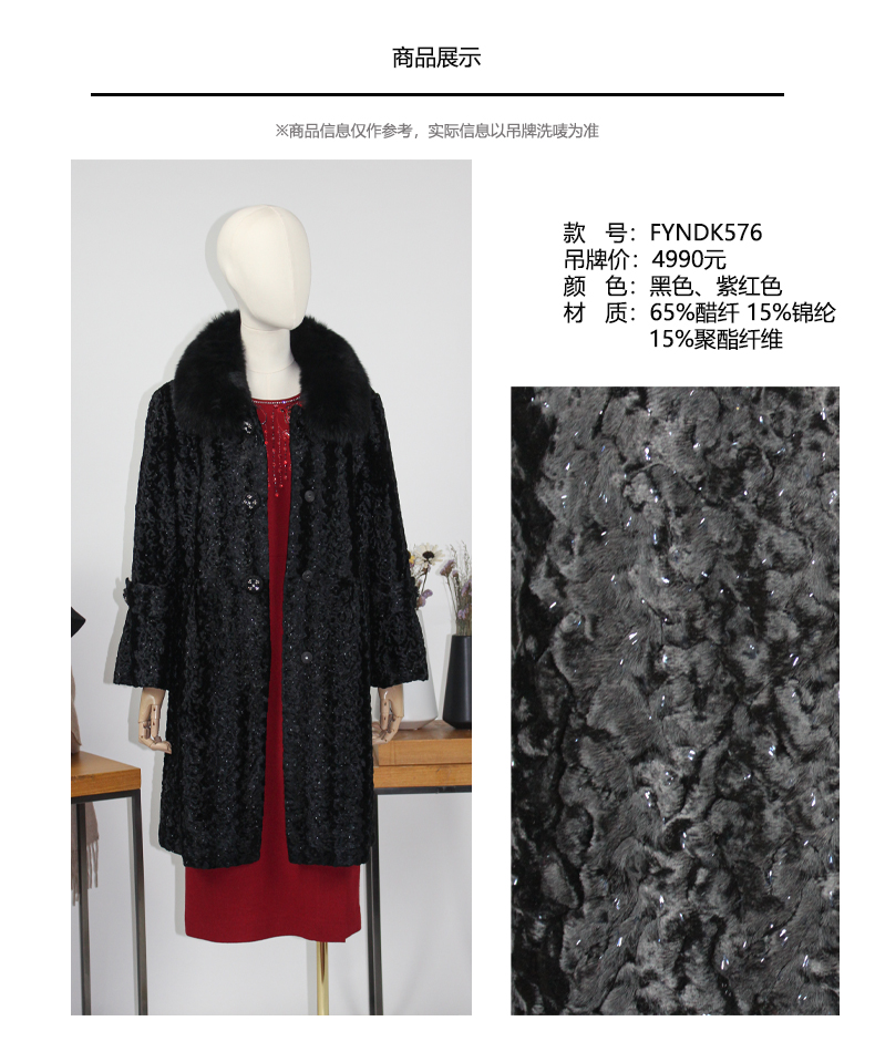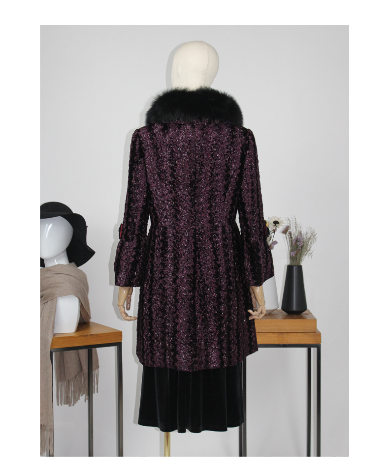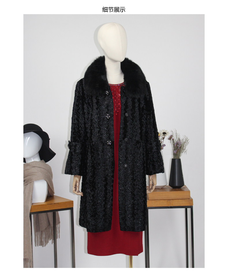 FOCALS福柯斯女装新款狐狸毛领中长款单排扣大衣外套FYN8K576