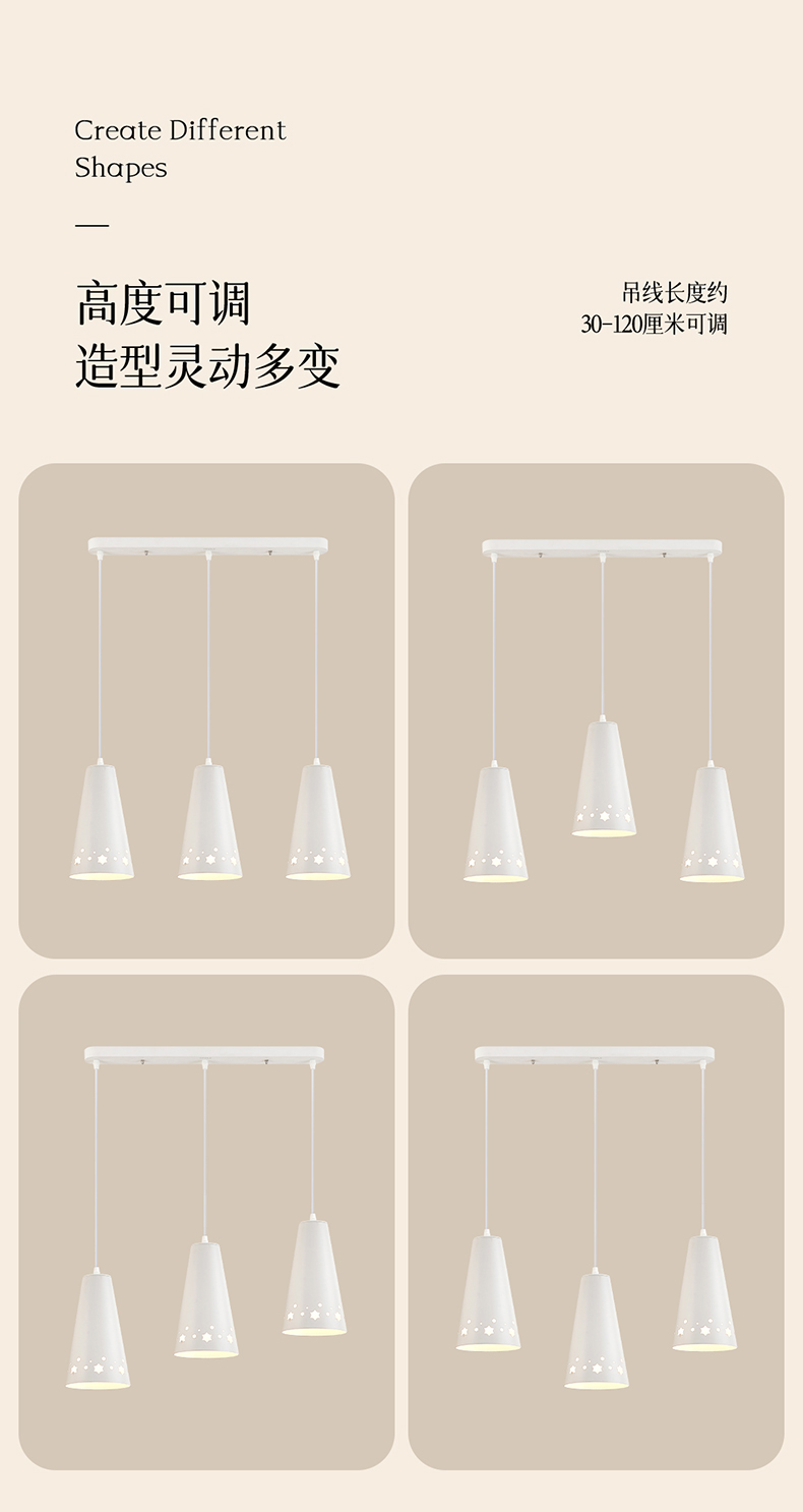 OPPLE欧普照明繁星3头奶油风餐厅吊顶