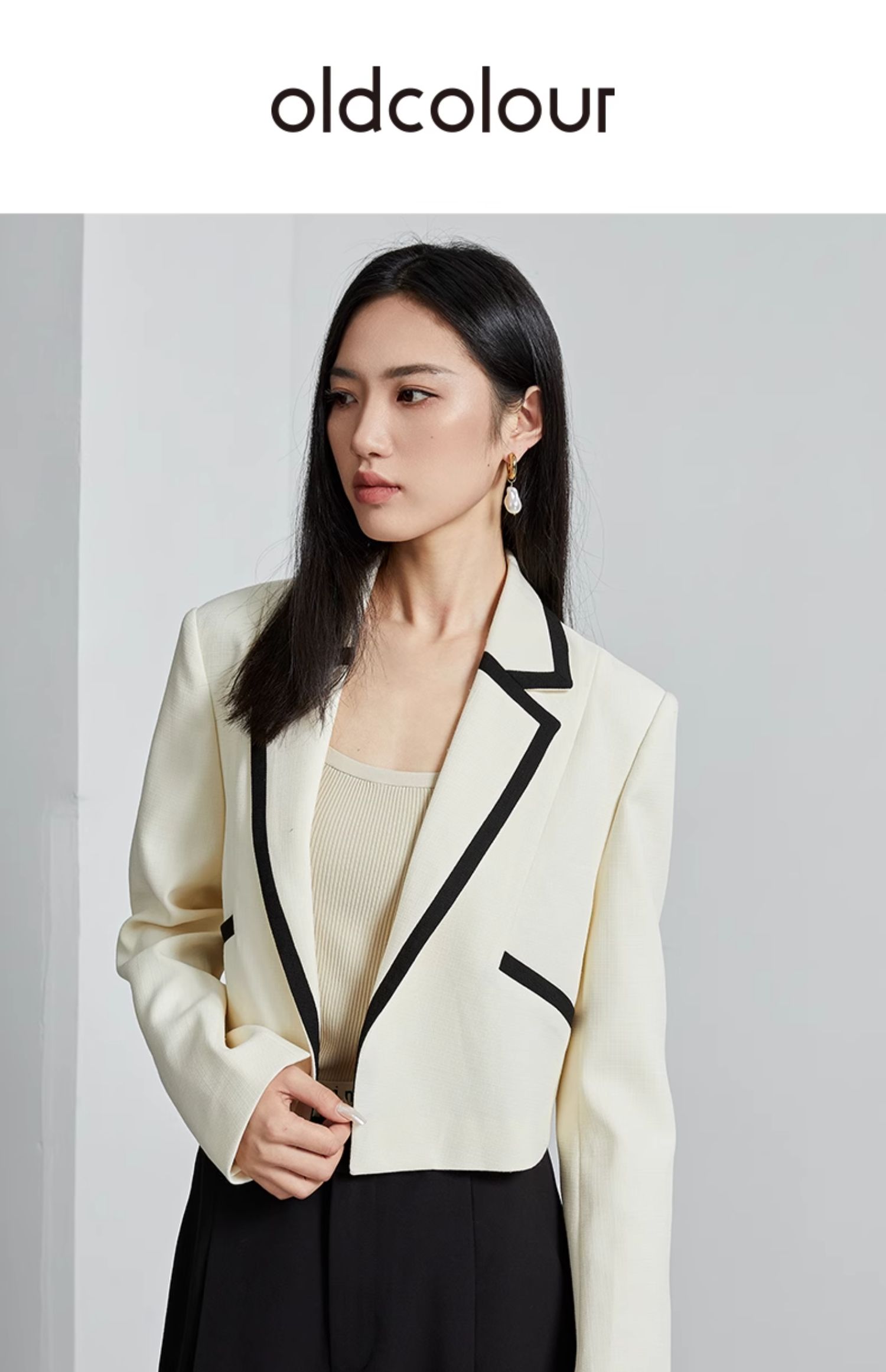 oldcolour秋季新款短款西装外套撞色休闲简约设计感上衣P320409A1
