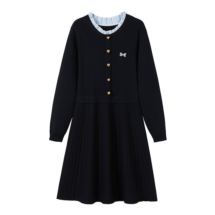 奢姿2025年秋季新款大码女装立领气质裙子胖妹妹学院风胸针连衣裙9851820835