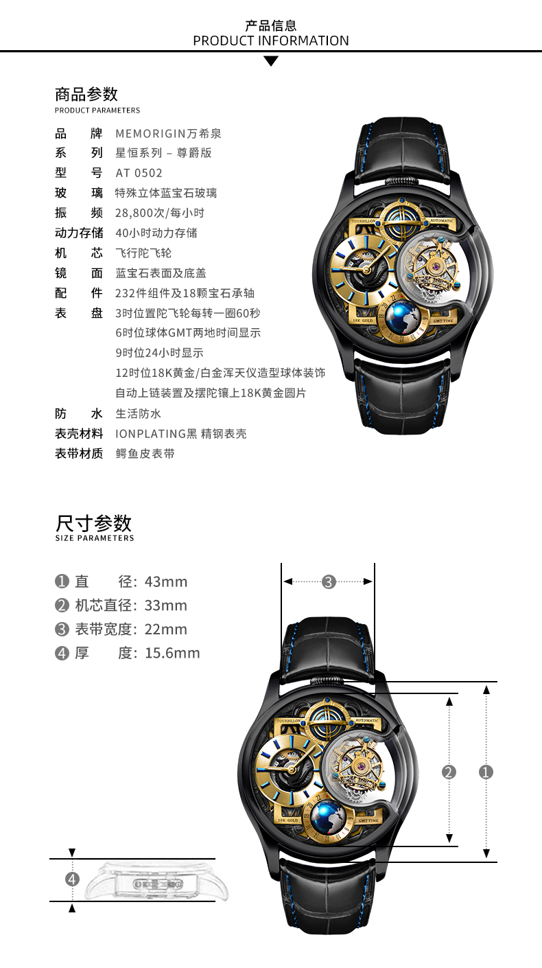 MEMORIGIN万希泉星恒系列尊爵版陀飞轮限量机械腕表真皮男士手表