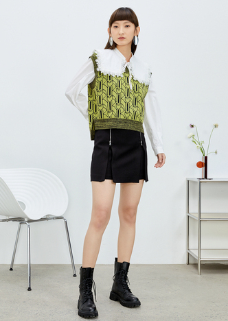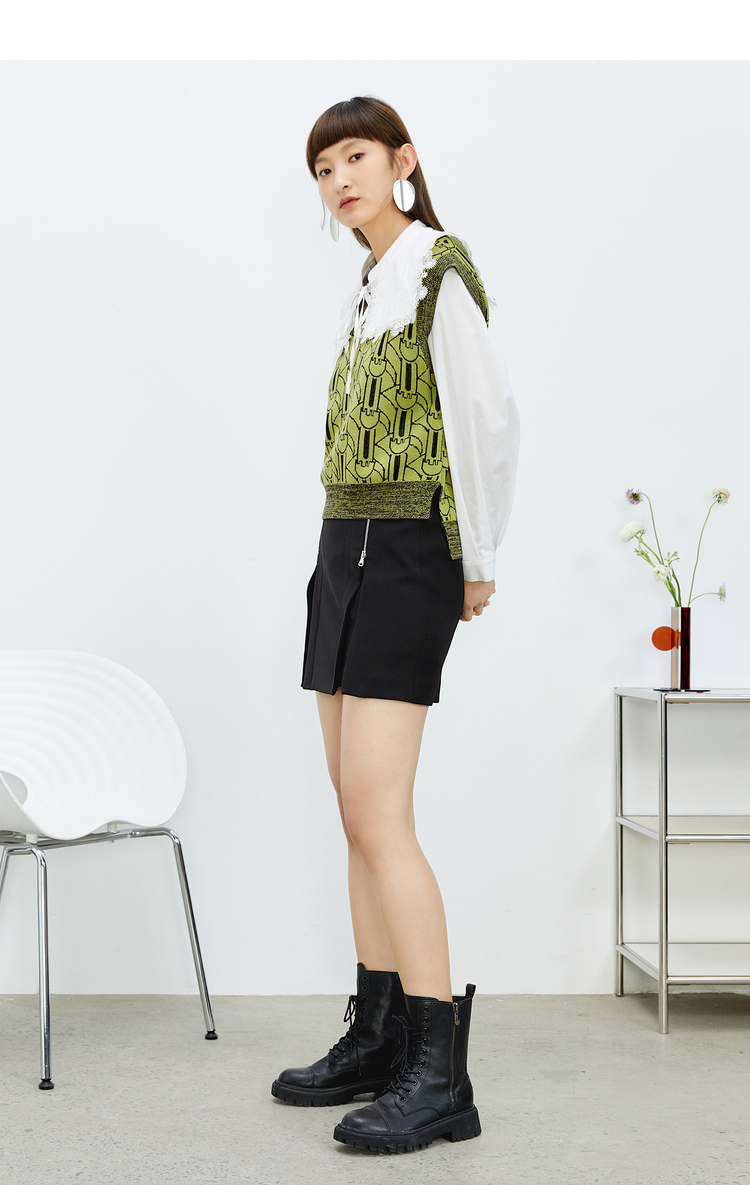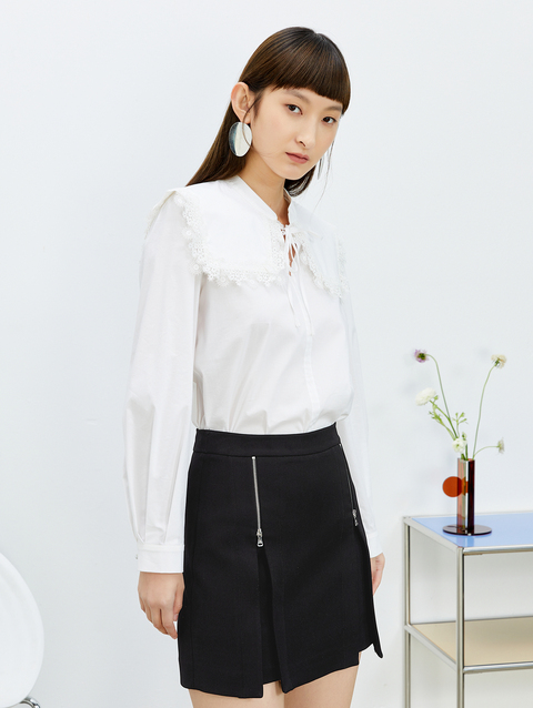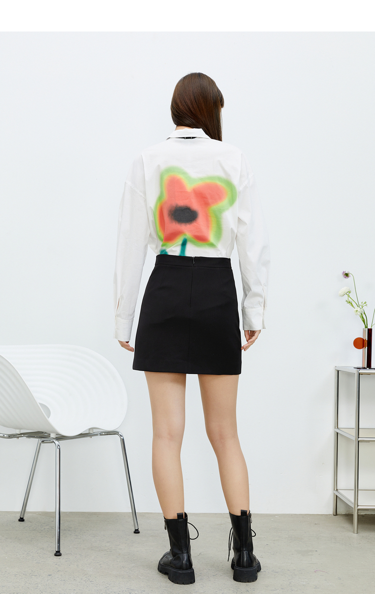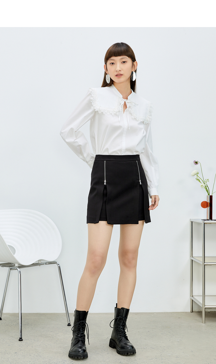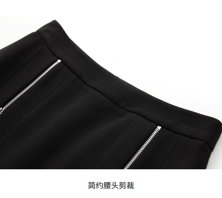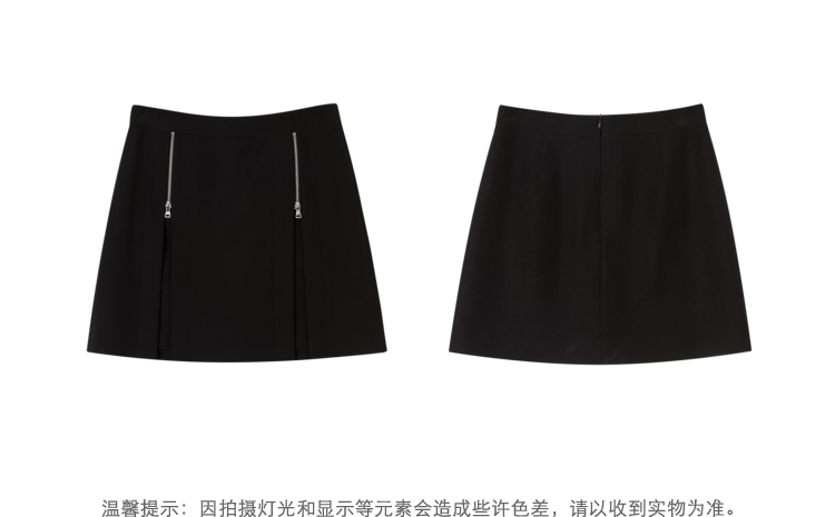 NEELLY纳俪商场同款春夏黑色半身裙女裙摆开叉设计高腰A字裙短裙N22022E01079