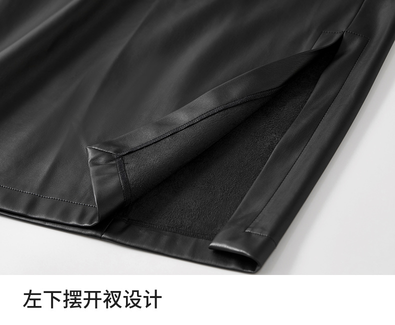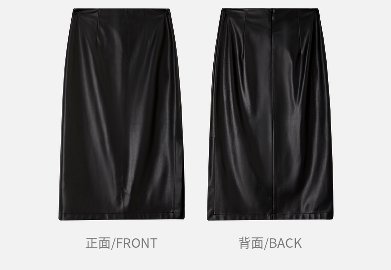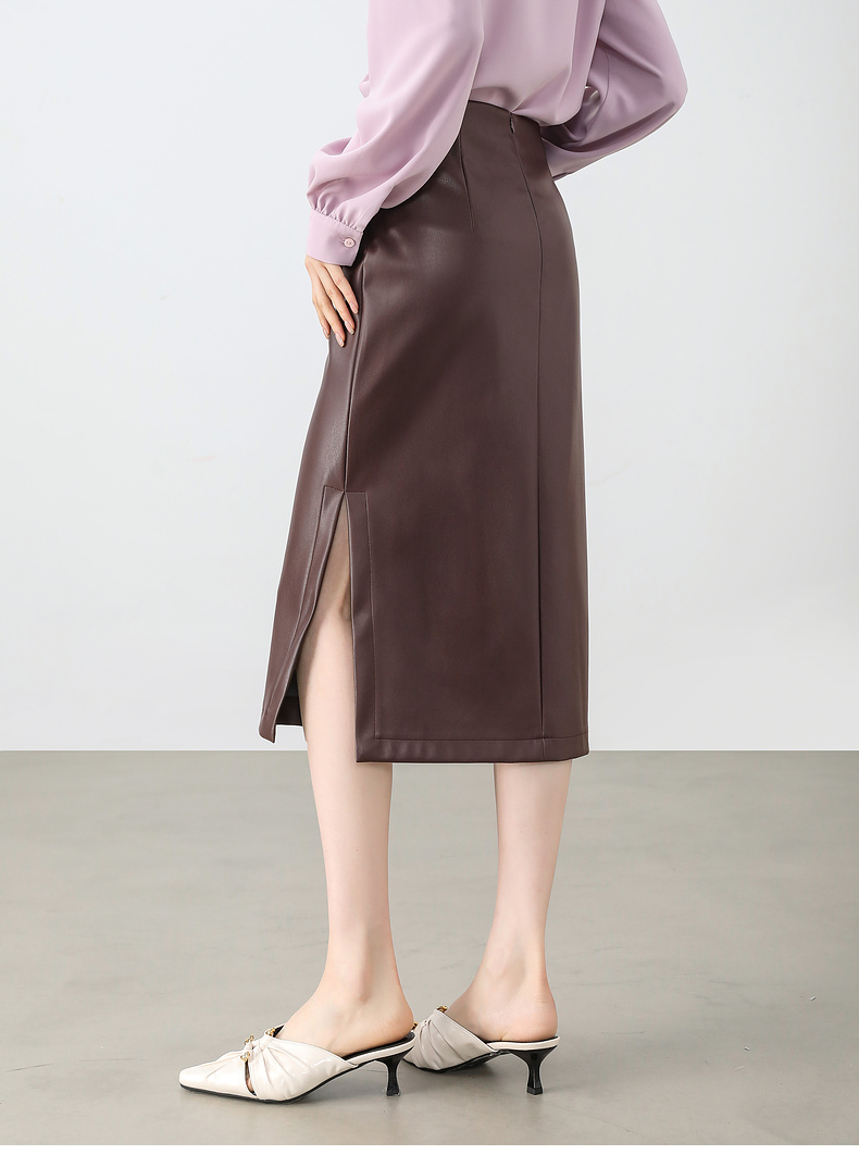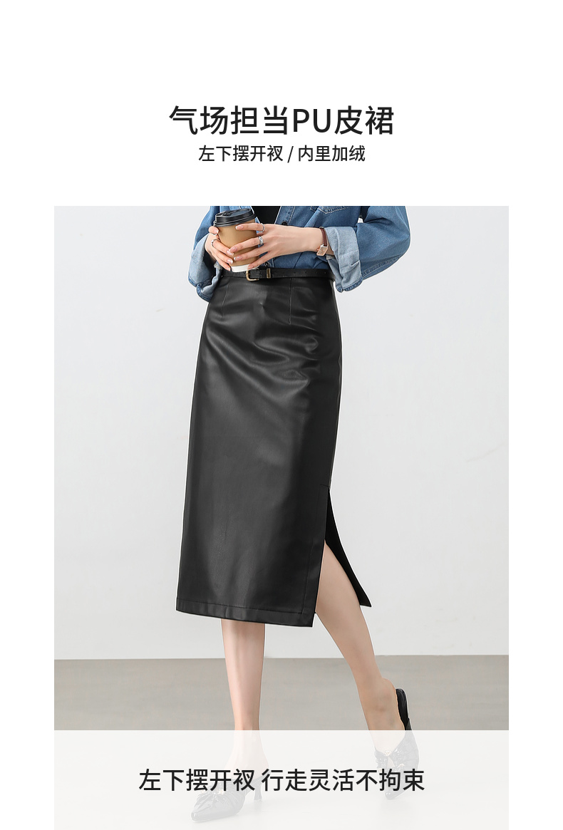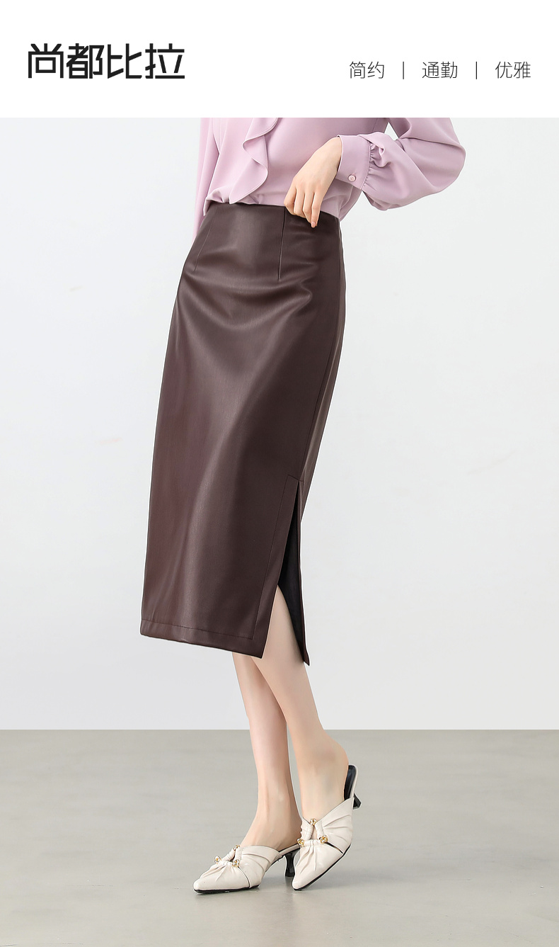 【尚都比拉】时髦柔软PU皮通勤百搭包臀开衩裙中长裙美拉德复古高腰加绒半裙-151Q58382