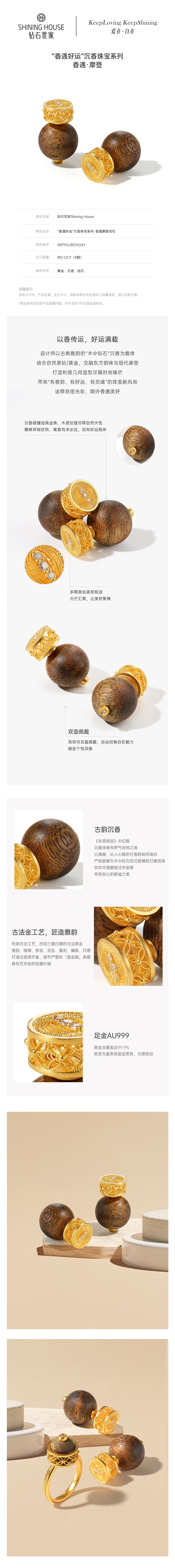 【钜惠价】【沉香黄金】【香遇·摩登系列】钻石世家 足金钻石耳环 古韵沉香与华贵黄金碰撞组合 汇聚非遗之美【黄金产品不支持无理由退换货】预计3-5天发货