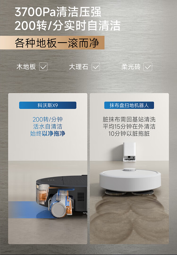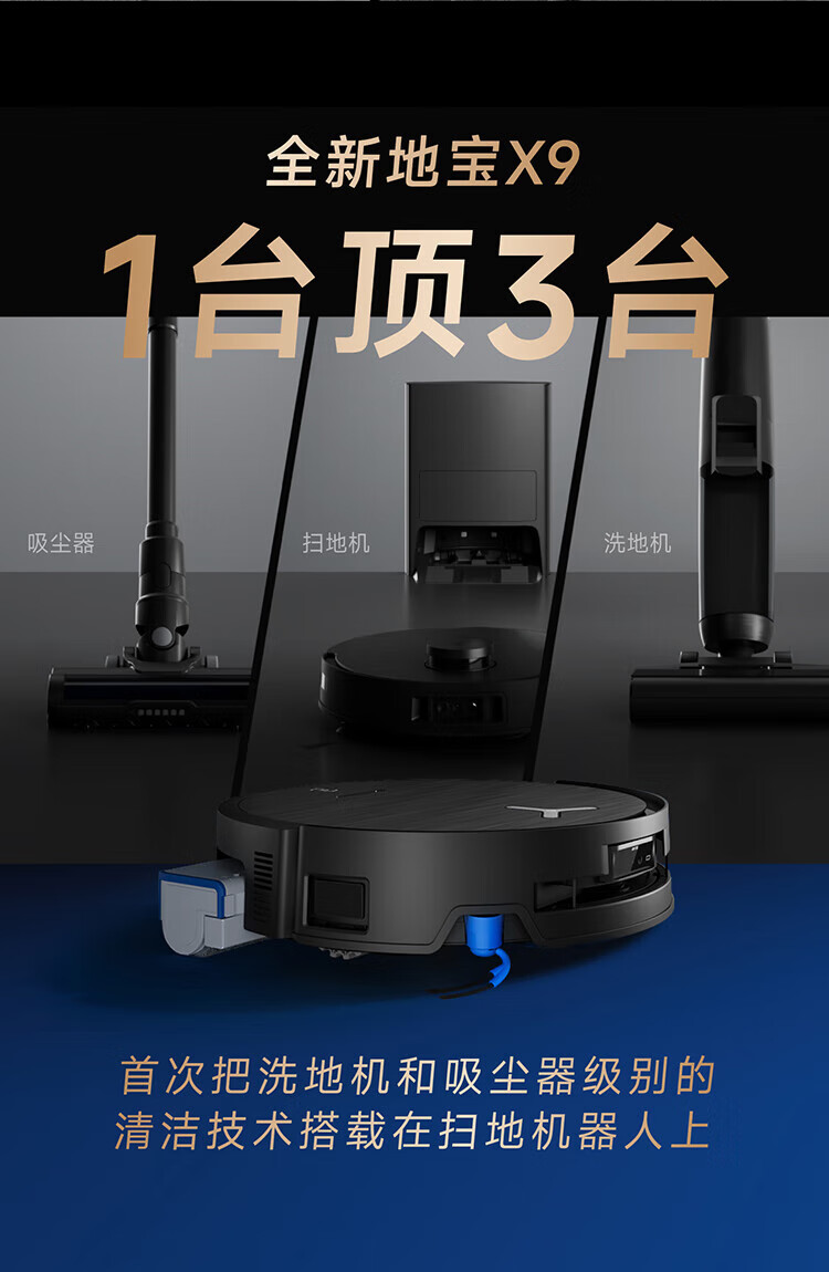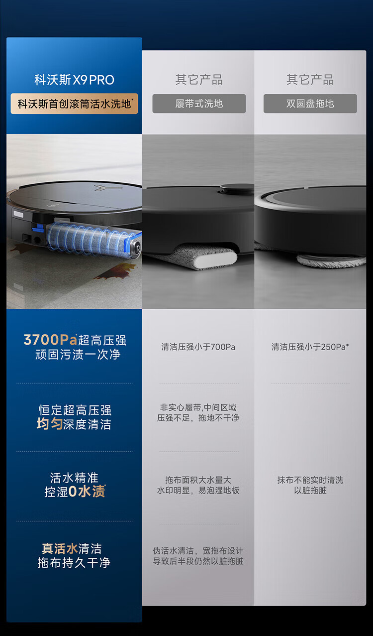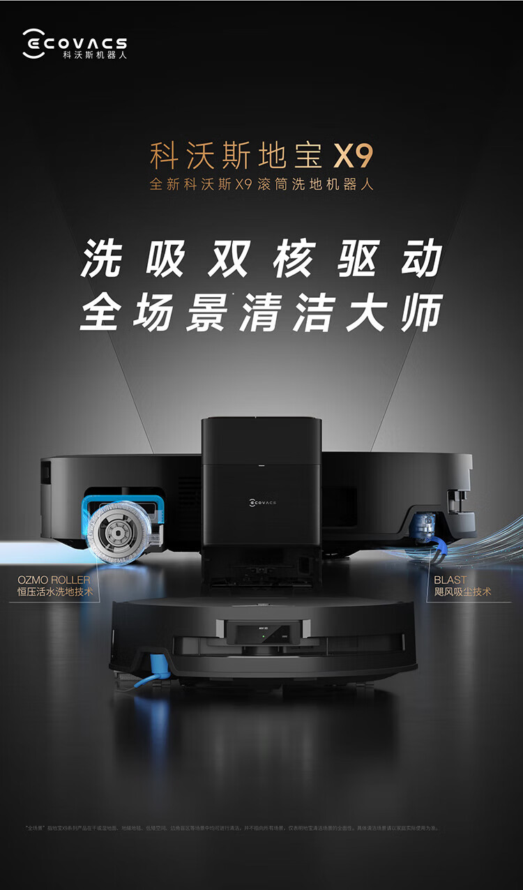 科沃斯(ECOVACS)重磅新品_X9_扫地机器人恒压滚筒活洗_洗地机器人_扫拖一体自动清洗智能家用_自动上下水_X9-水箱版【新】