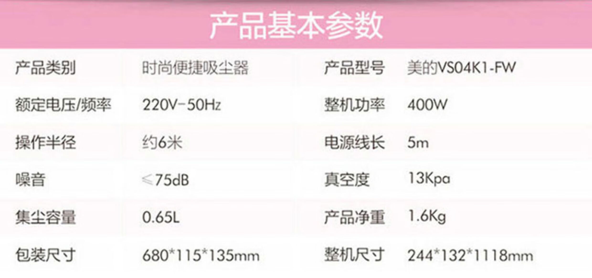 美的 吸尘器 VS04K1-FW【粤湾】