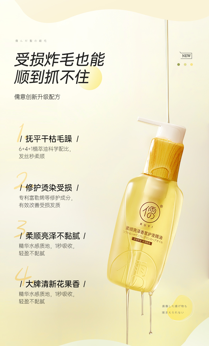 儒意柔顺亮泽香氛护发精油135ml 摩洛哥护发精油 防毛躁柔顺 修复干枯烫染受损卷发 持久留香 | 儒意官方商城