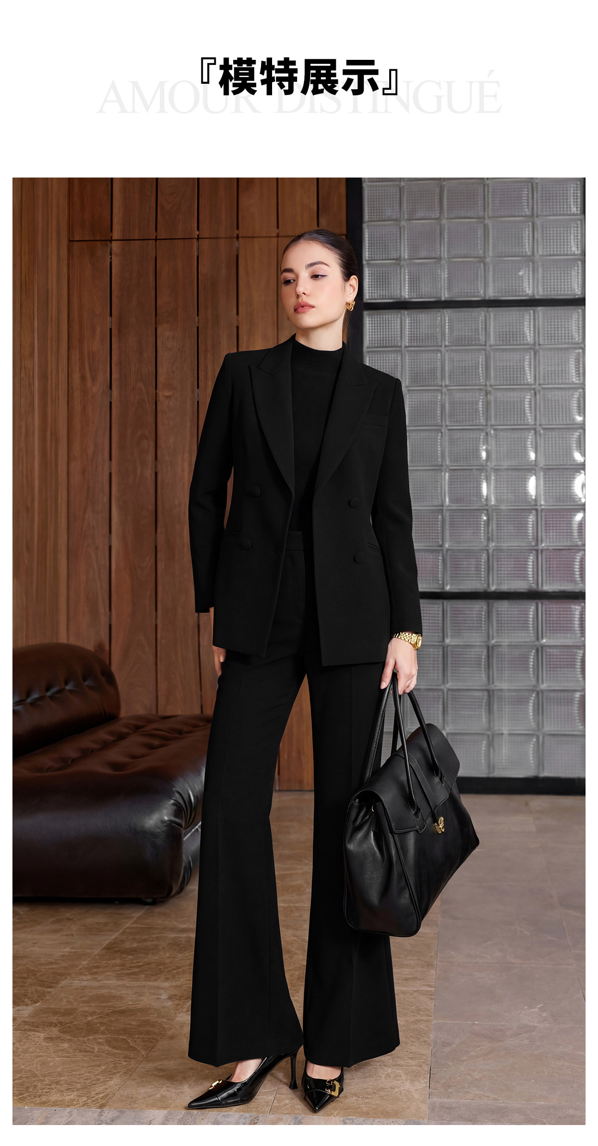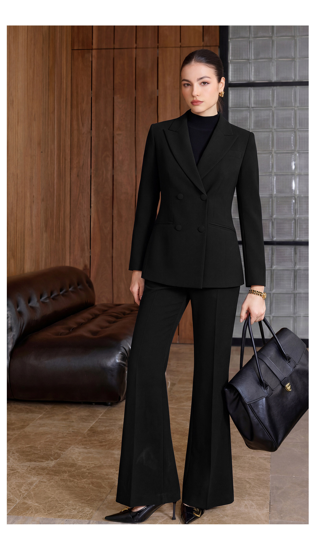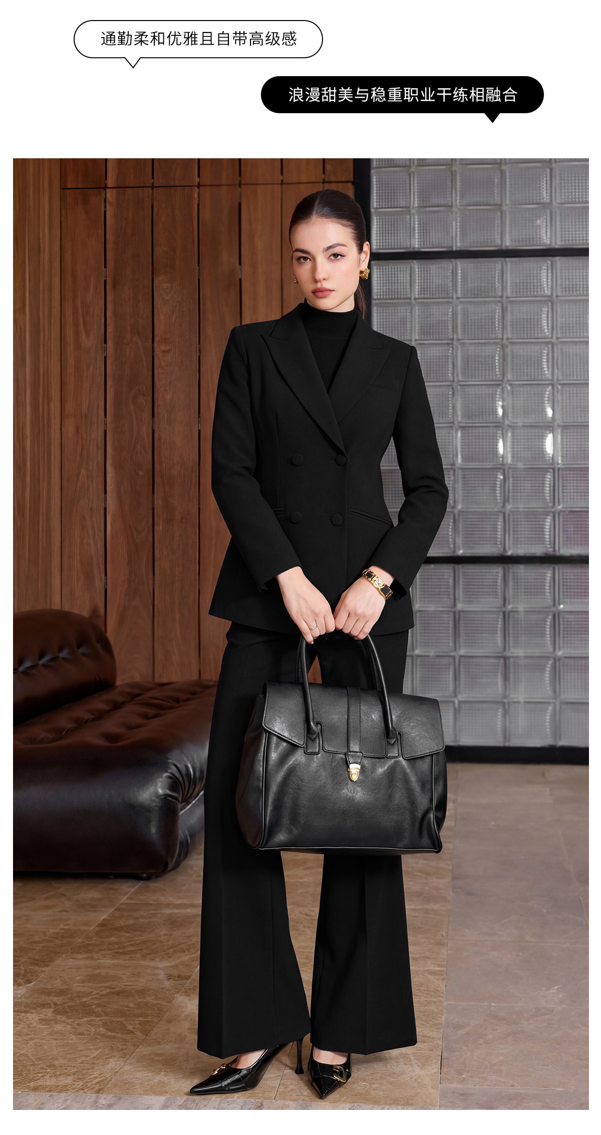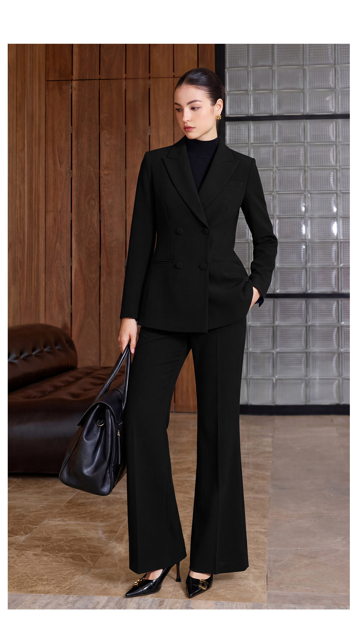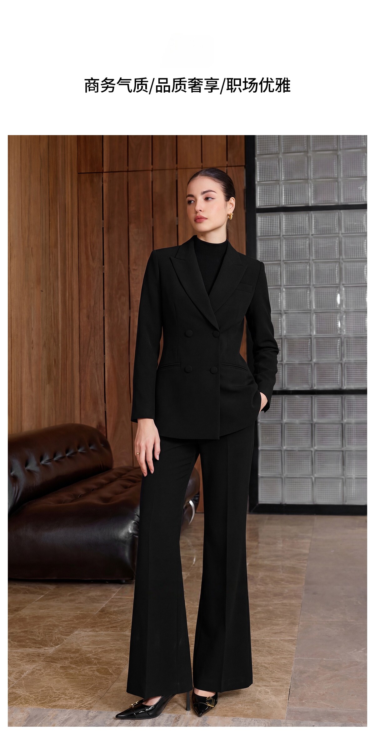 IWY/商务风黑色西装套装女春秋职业正装双排扣显瘦通勤装CP2752