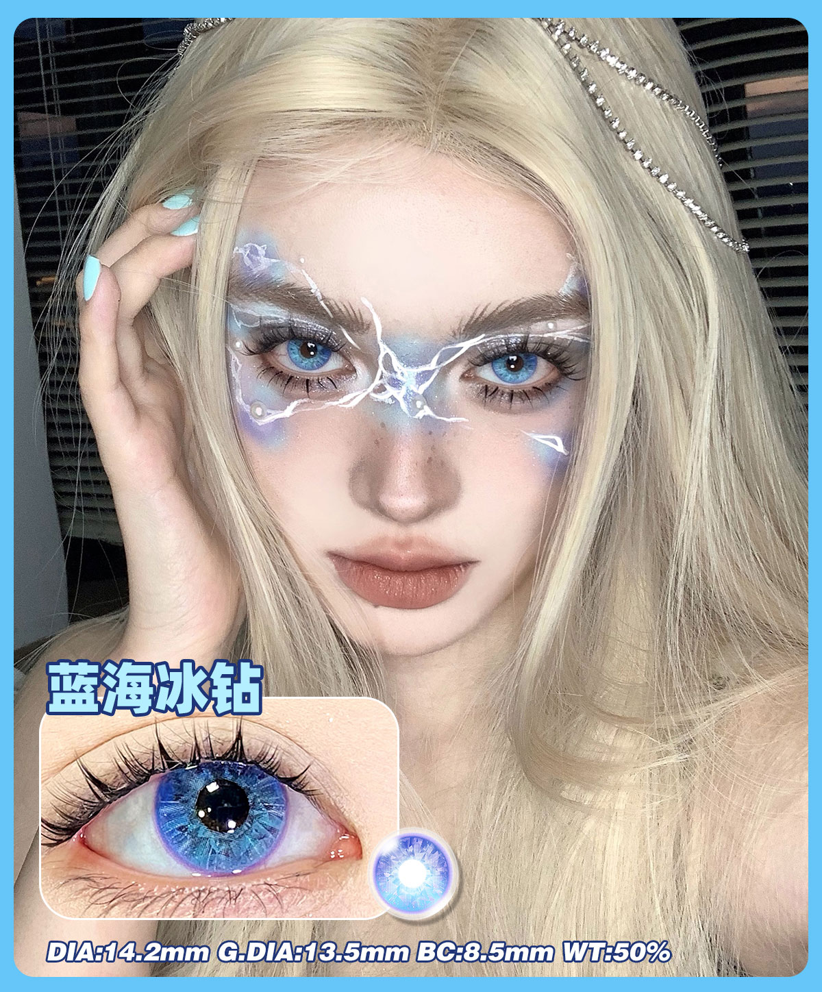 【Woolilens日抛】COS新品沃莉丝美瞳日抛蓝海冰钻显色混血2片隐形眼镜