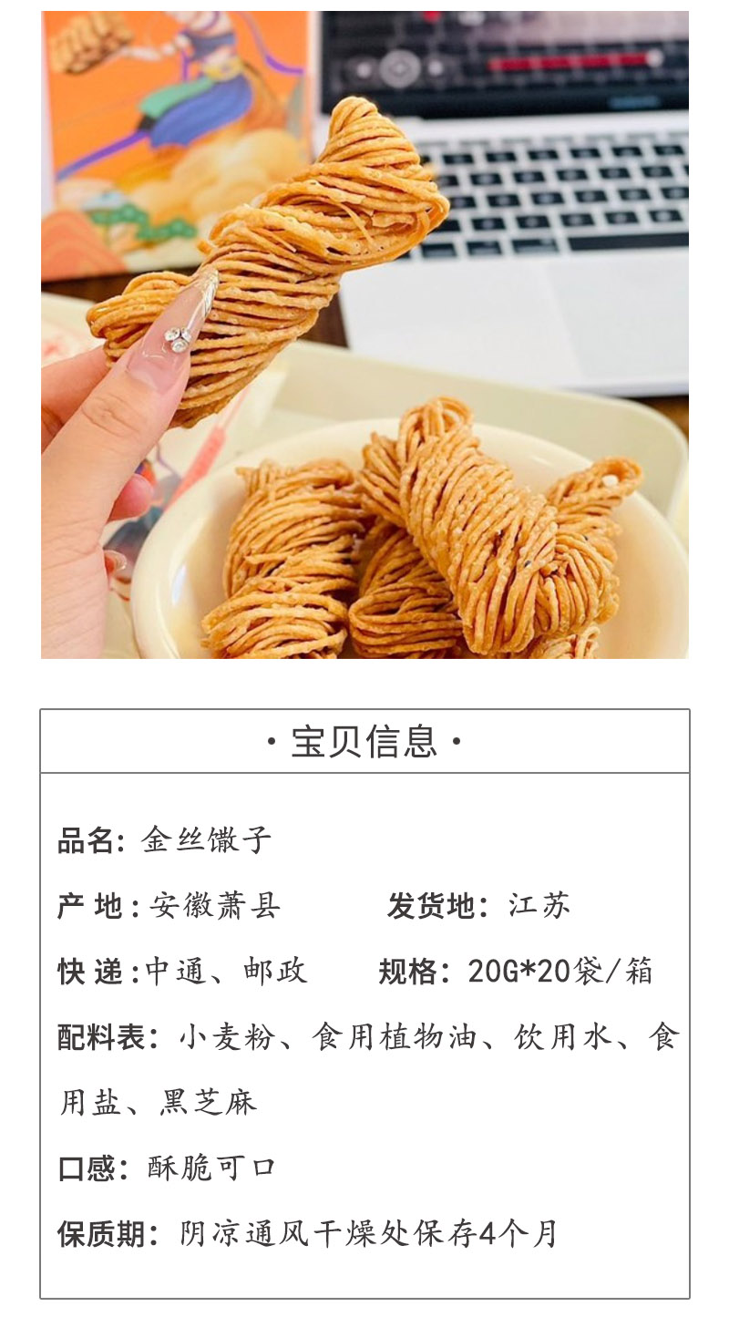 【金丝馓子】源自安徽古老工艺,传承数代。色如金丝,酥脆酥脆,咸香美味,怎么吃都不腻。咬一口嘎嘣脆,口感扎实自然