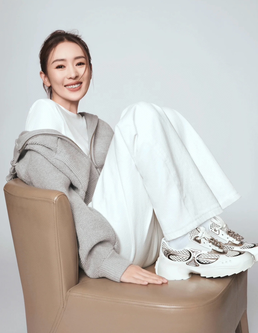 倪虹洁很适合镜面粉金,鞋面是小牛皮拼接白色小牛皮+网格织物+定制软橡胶可拆卸盾牌,这就不是钻扣啦