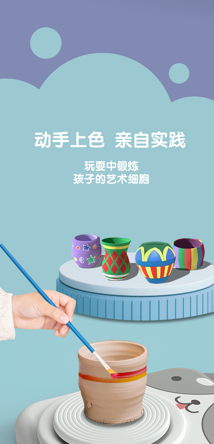 【送围裙+陶艺工具】儿童手工电动陶泥转盘 益智趣味 免烤泥塑DIY陶艺拉坯机