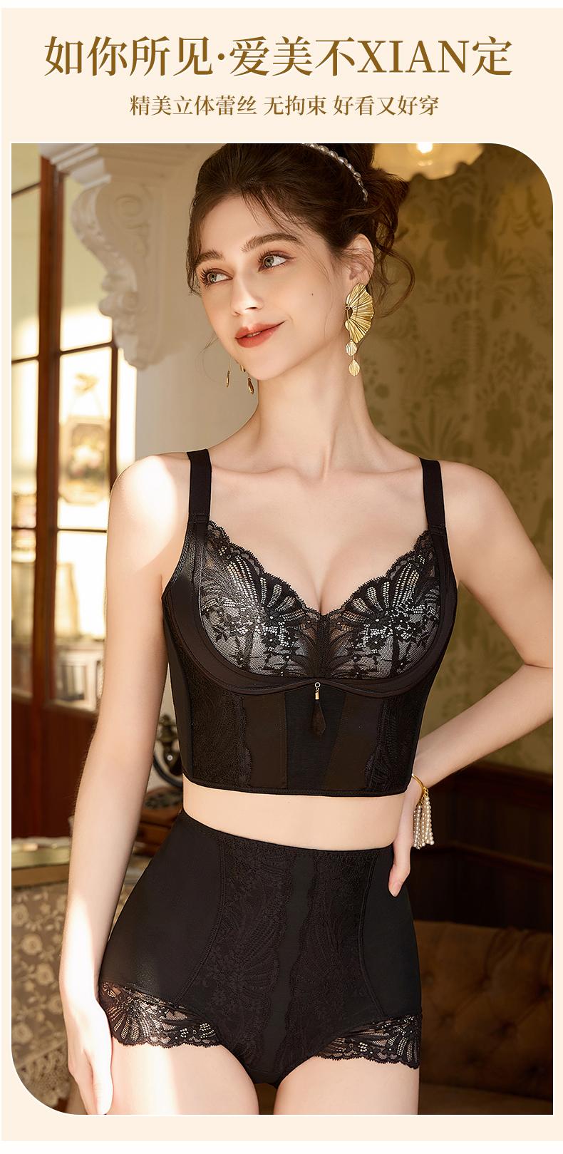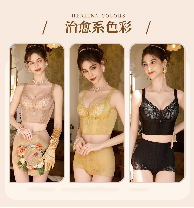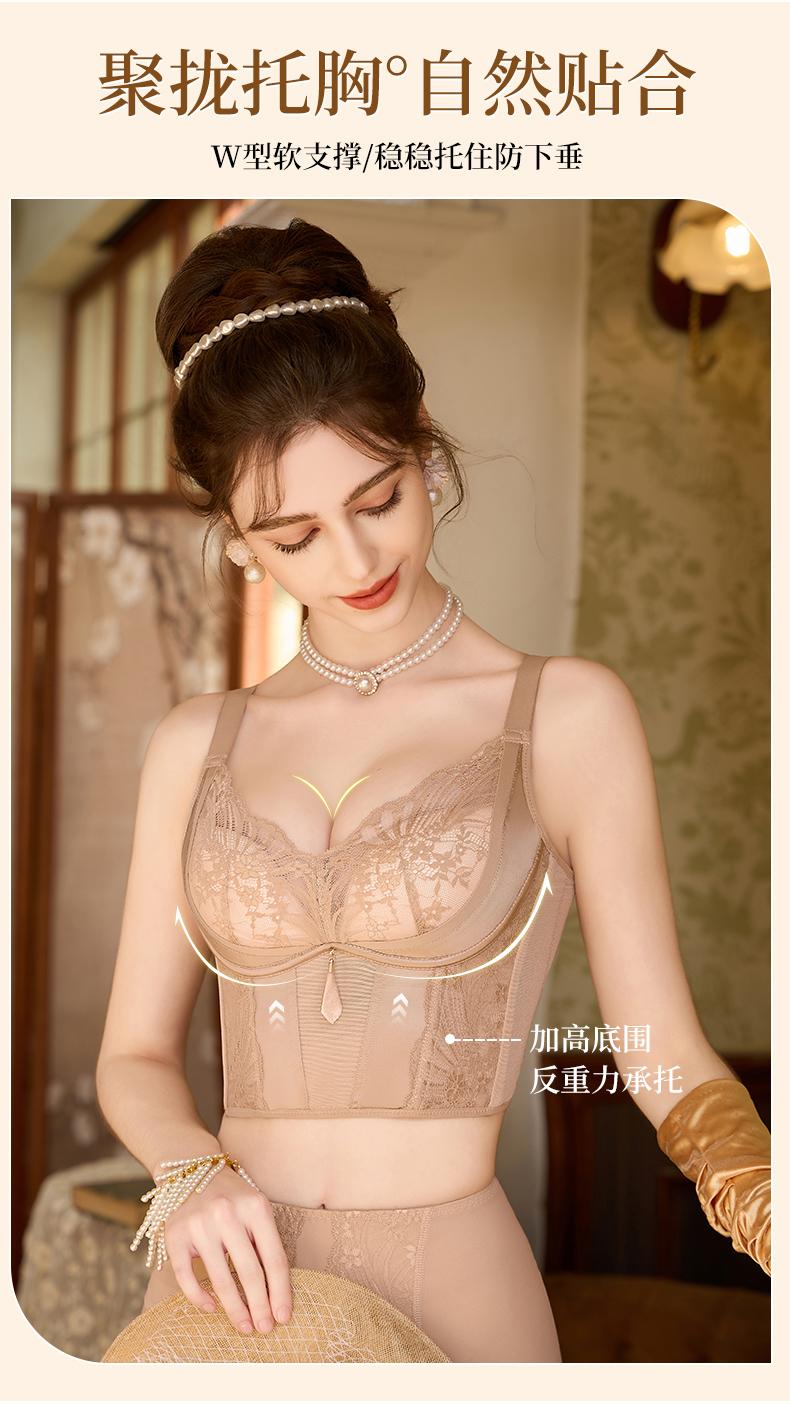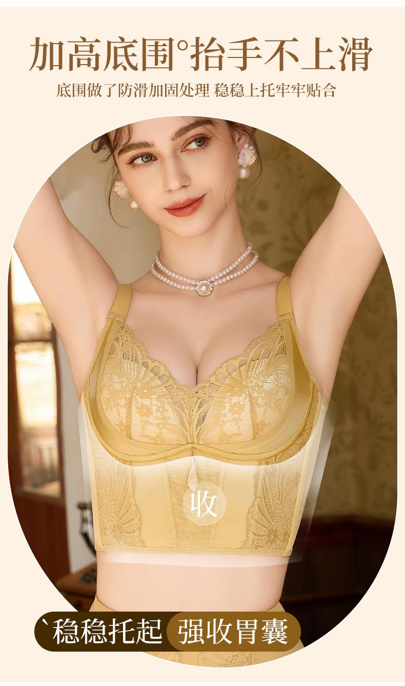 曼芮凯诗【黄金甲】塑身聚拢蕾丝欧若风调整型上托文胸23679