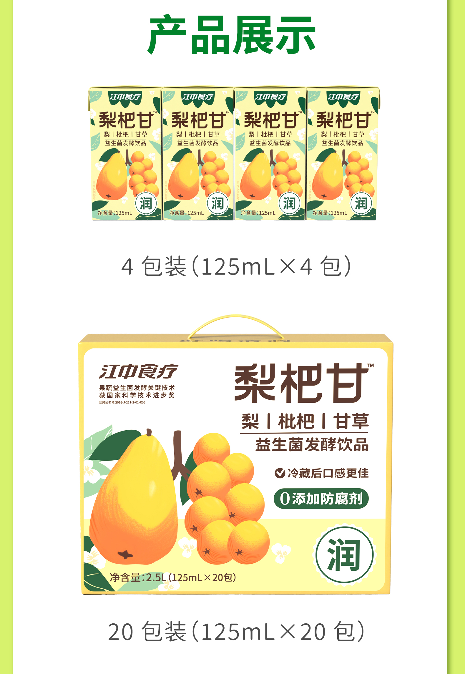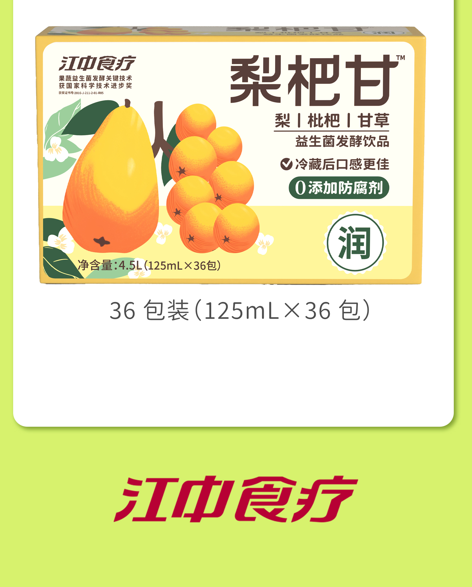 江中食疗·梨杷甘益生菌发酵饮品125ml*20瓶(含糖款) 2025年9月生产/保质期12个月