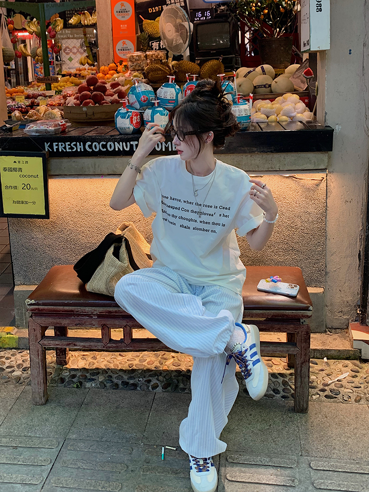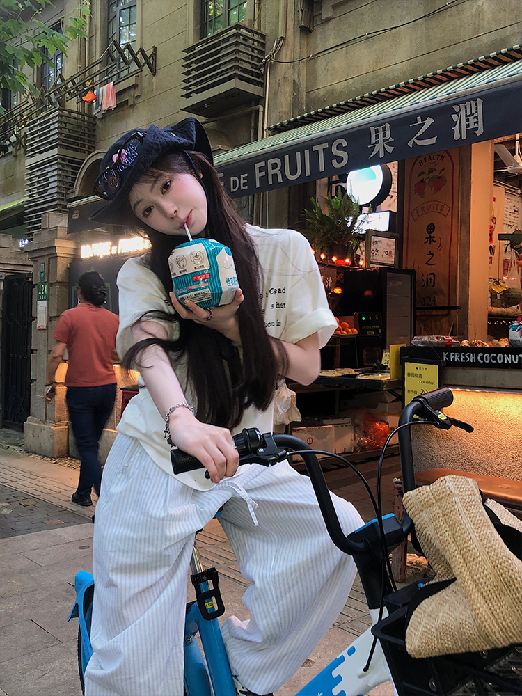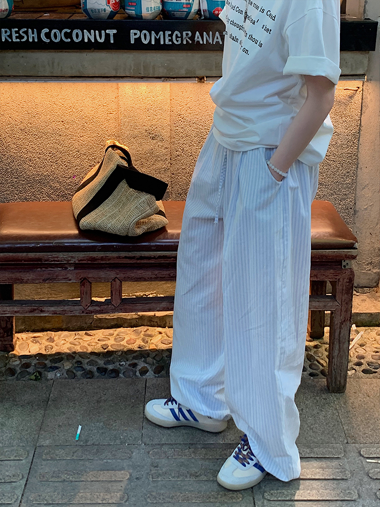 现货 海盐汽水 夏日清新舒适感 条纹束脚裤100棉