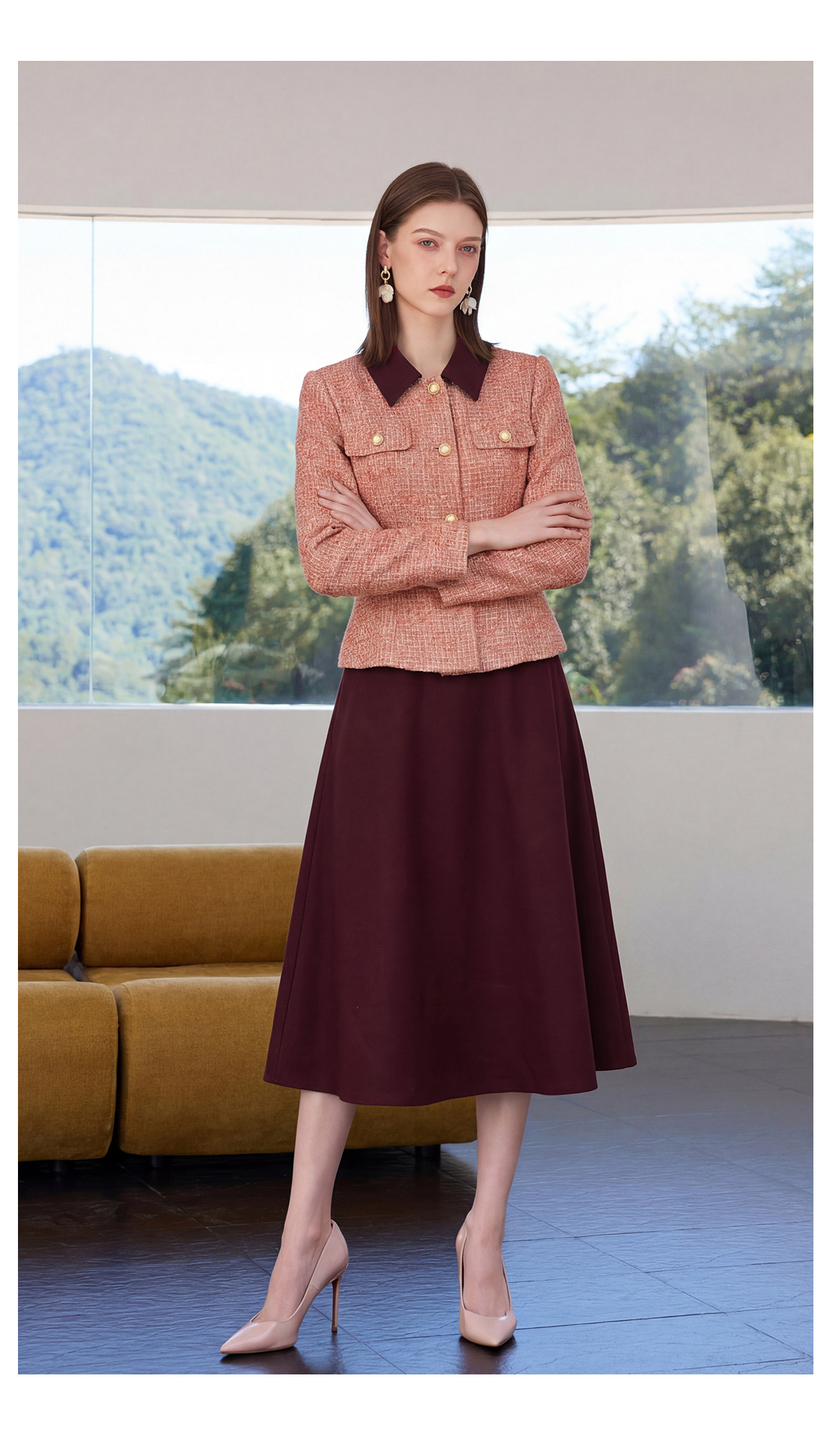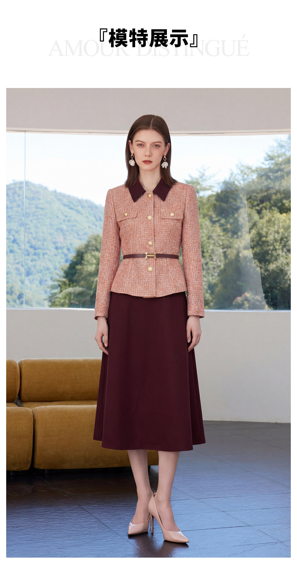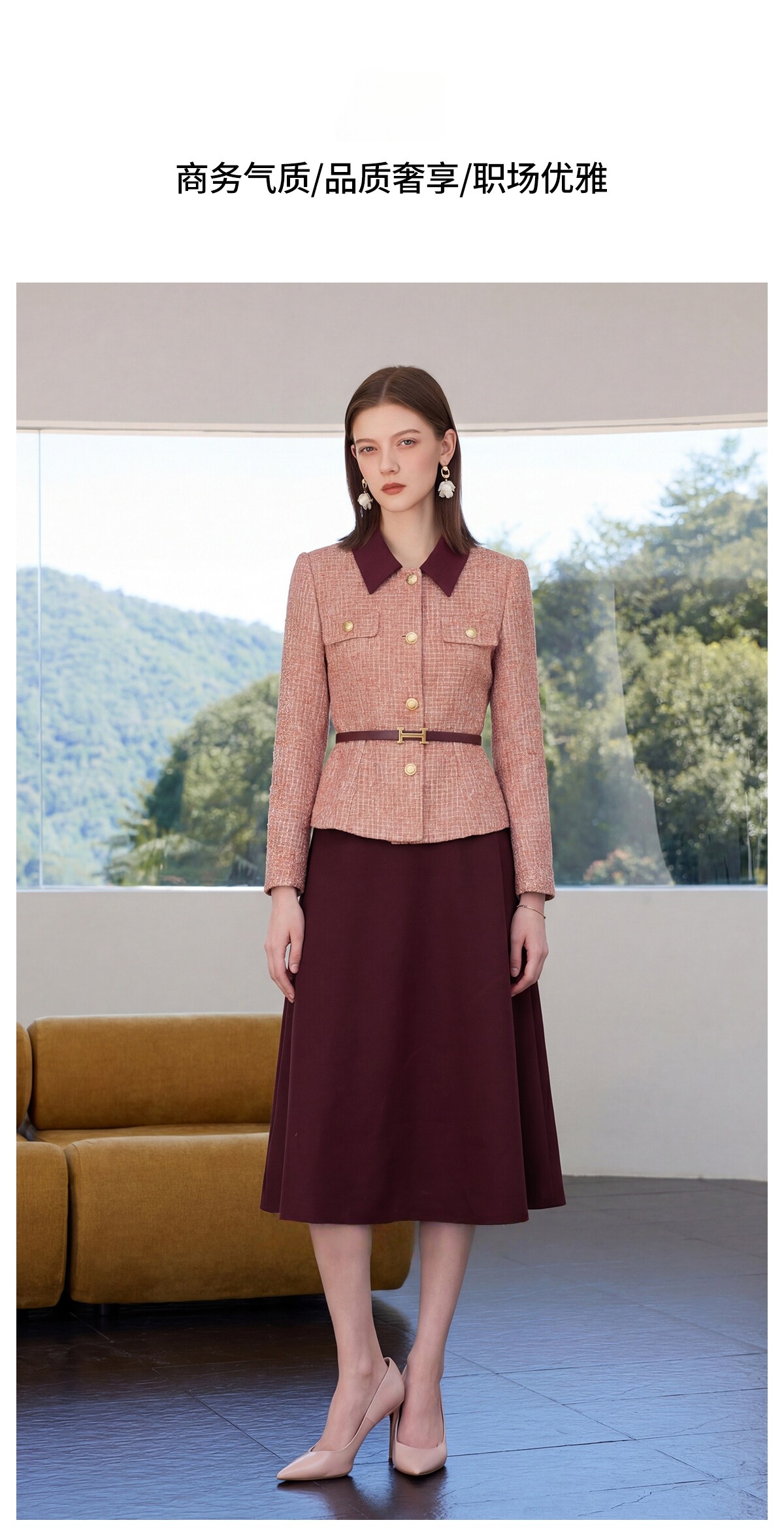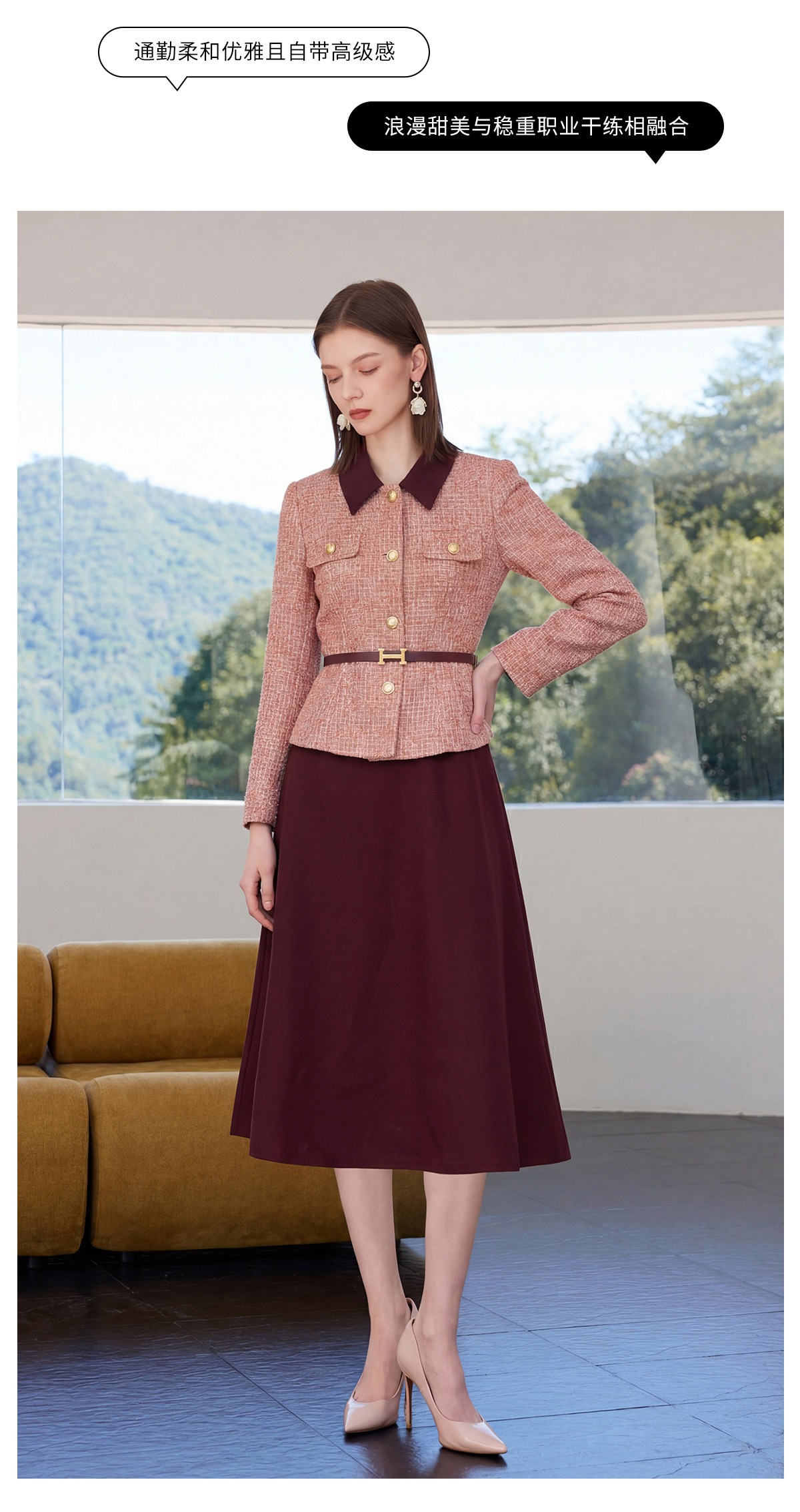 IWY/小香风粗花呢西装套裙女春季高级感通勤职业装气质收腰两件套正装CS2577