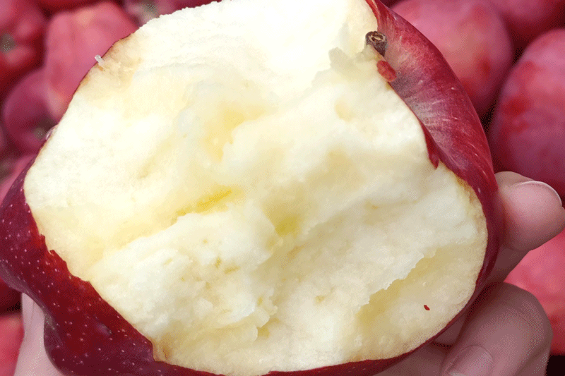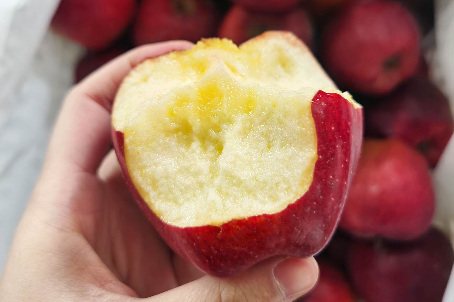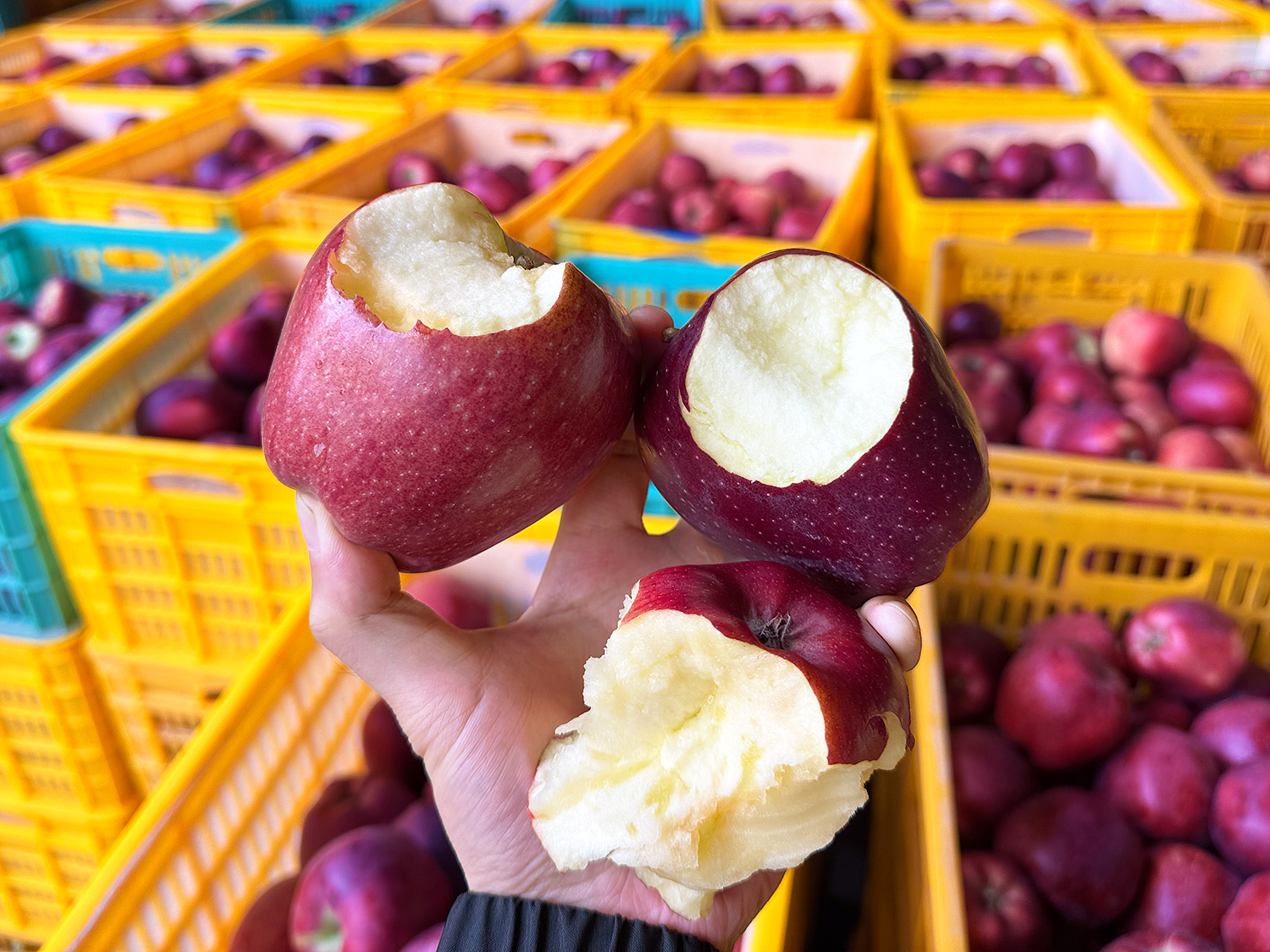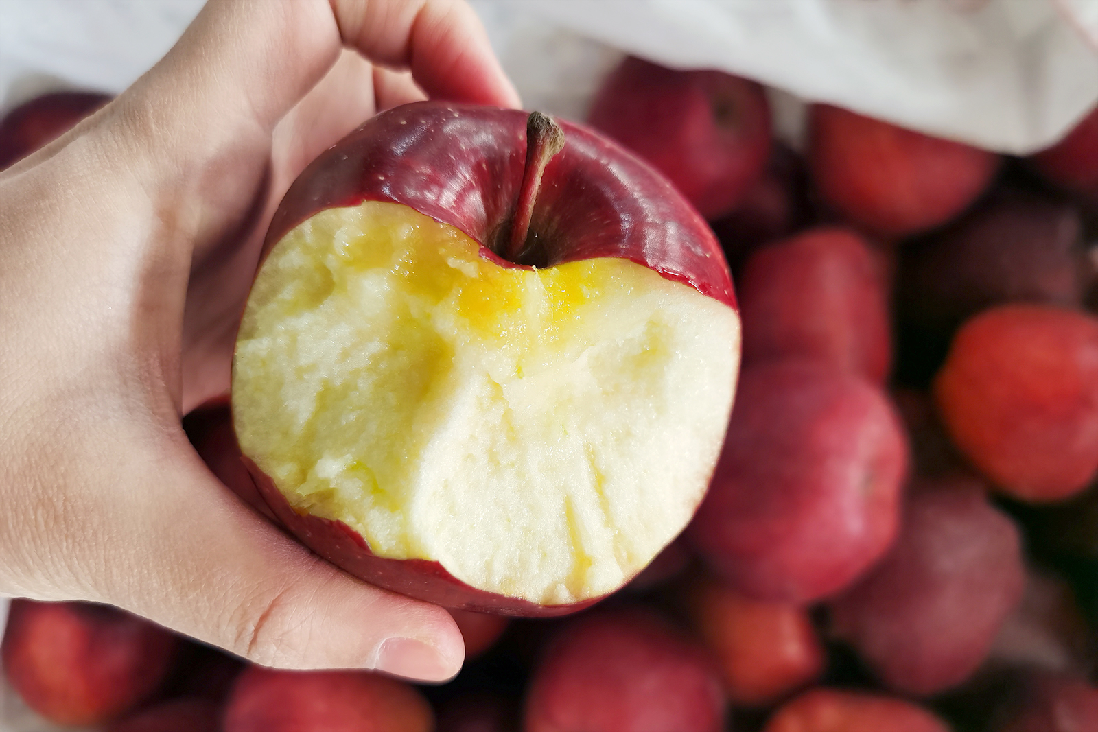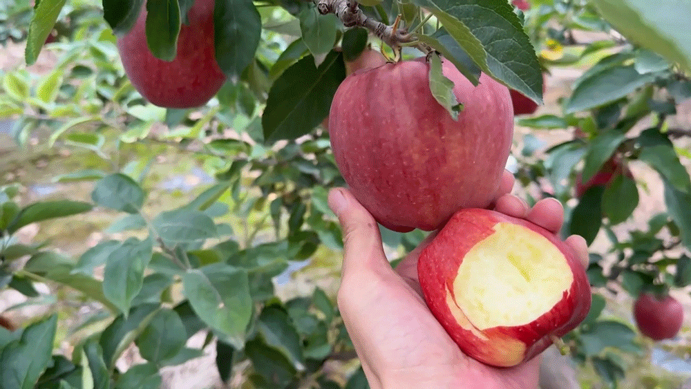 像这样越放越粉、面、沙、甜,可以用勺子刮成果泥吃的花牛苹果,比脆苹果更适合牙口不好的老人孩子。