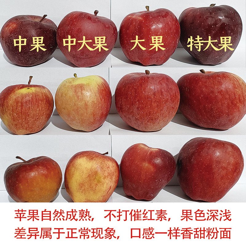 2.苹果自然成熟,不打催红素,果色深浅差异属于正常现象。无论果皮颜色深浅,都是正宗花牛苹果,口感一样香甜粉面。