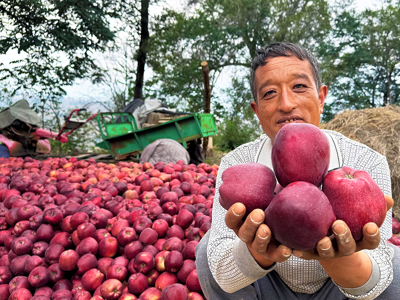 热爱生活的农人,通过勤劳的双手,通过这颗花牛苹果,守护着家人的生活。