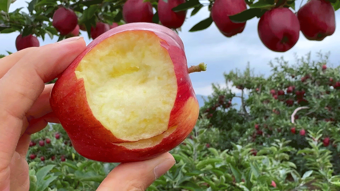 花牛苹果,它的外形比普通苹果更有棱角,表皮色泽鲜艳靓丽,与蛇果、富士苹果同为世界苹果三大品种,是在国际市场上率先获得认可的国产苹果。