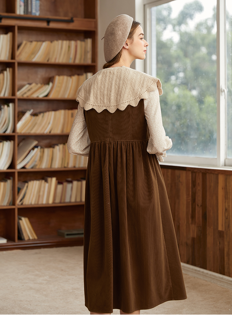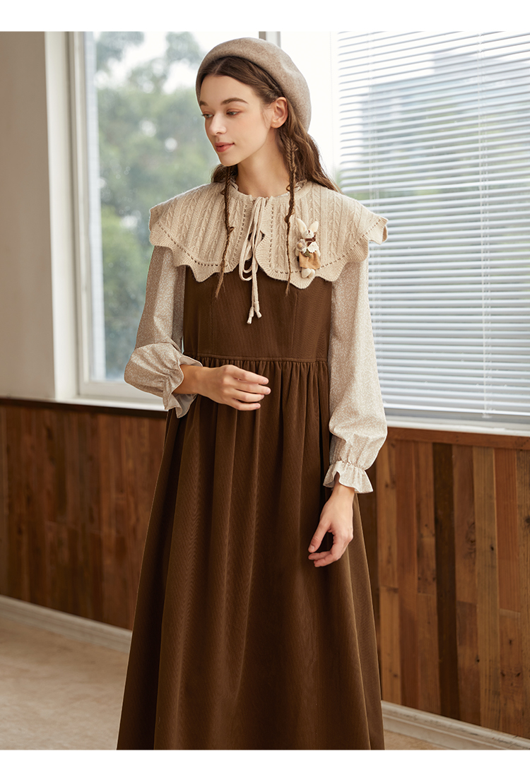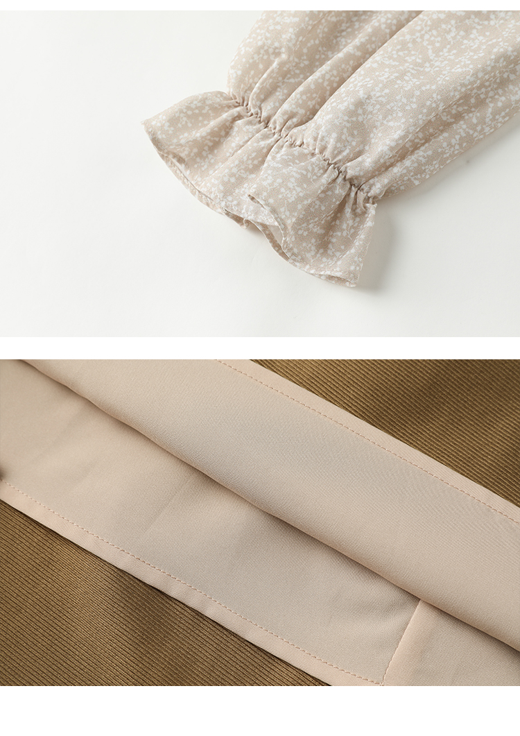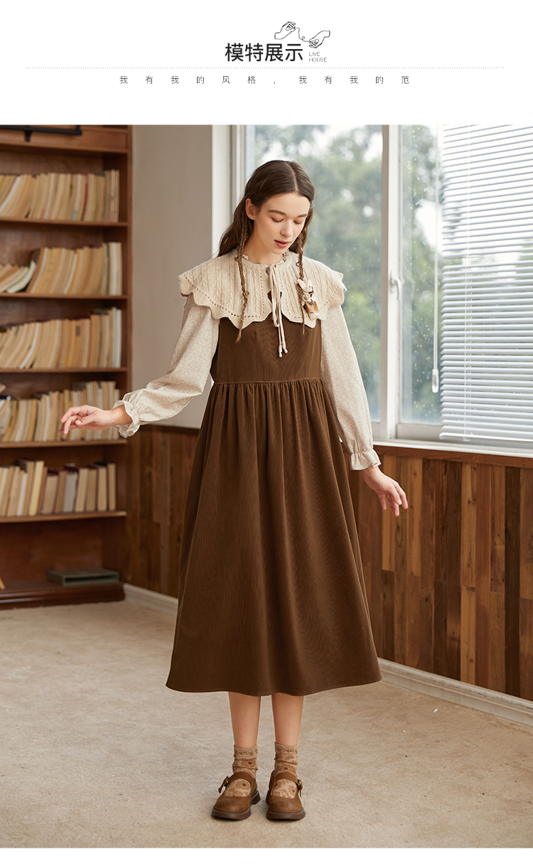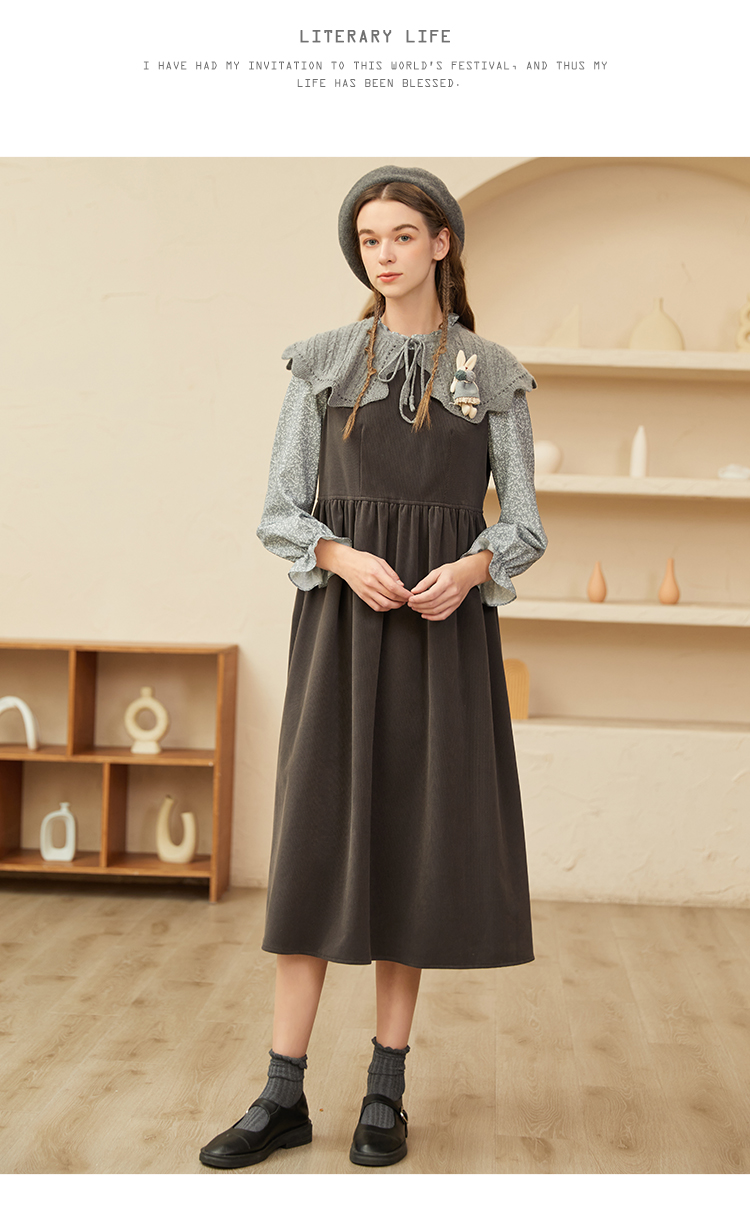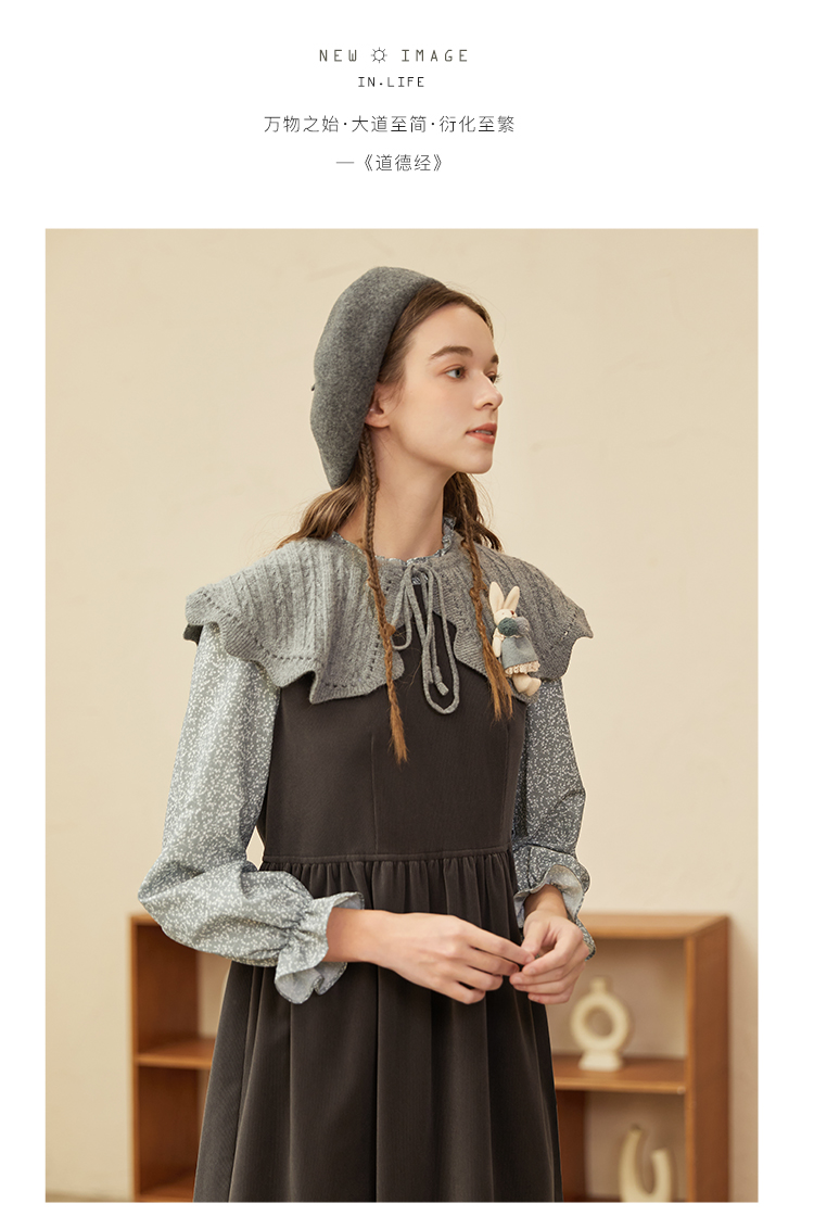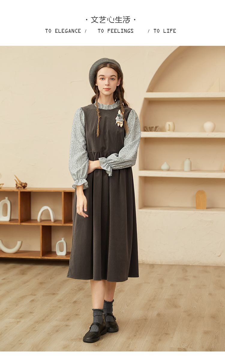 Famecoco范可儿雪纺拼接假两件连衣裙秋冬宽松遮肚子长裙F228FA018