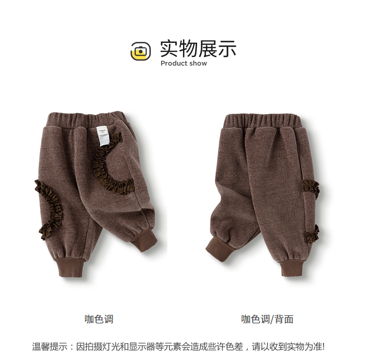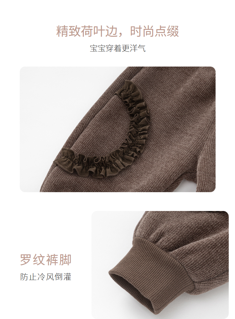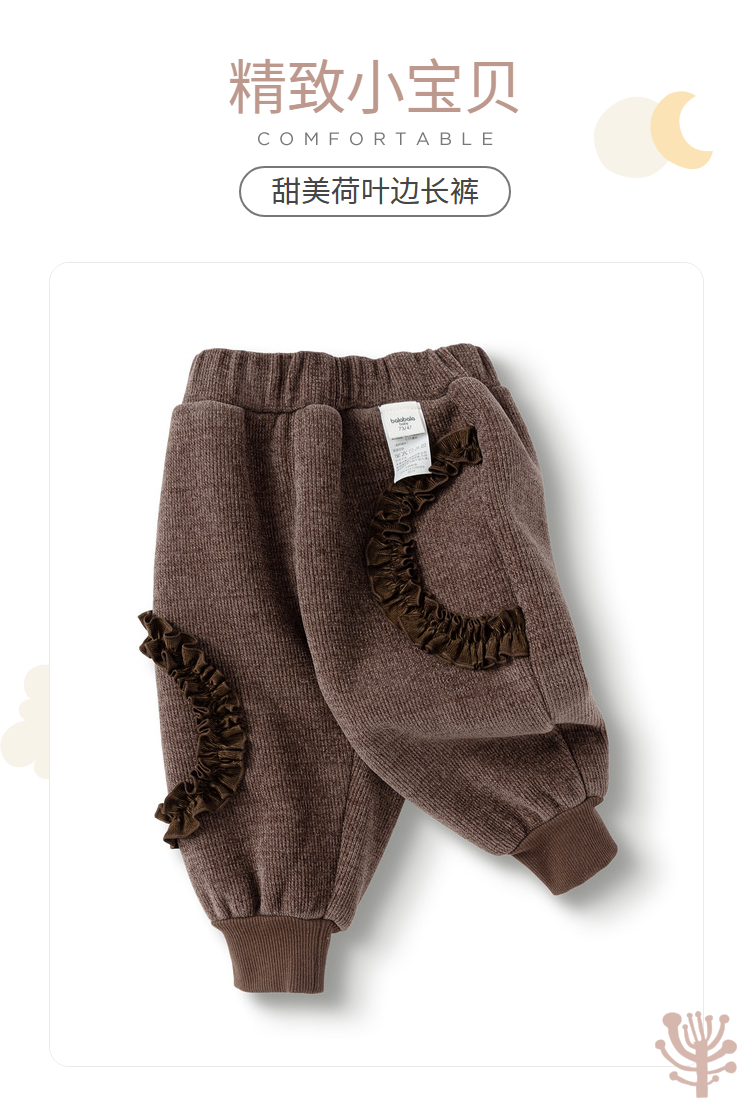 巴拉巴拉宝宝裤子女童休闲裤加绒保暖秋冬婴儿长裤荷叶边精致甜美
