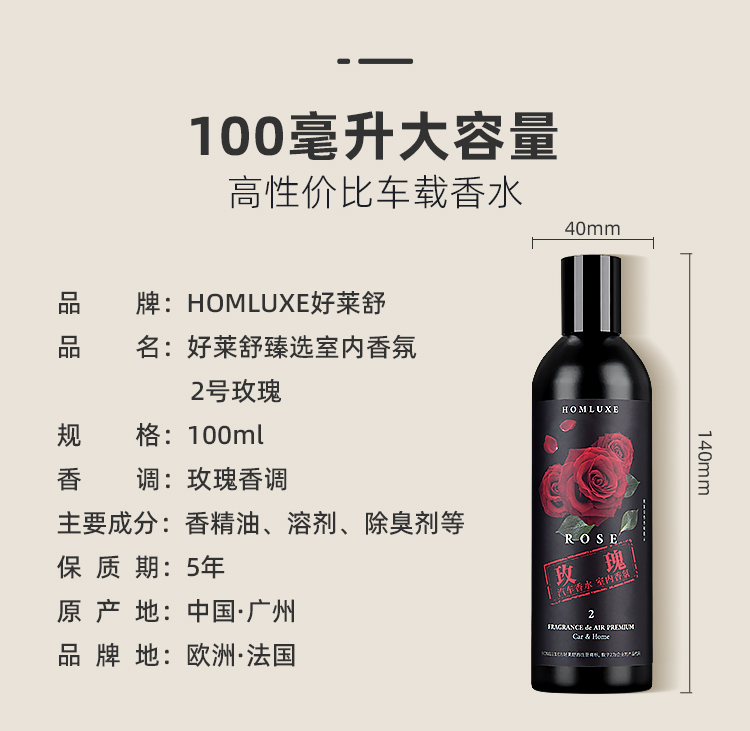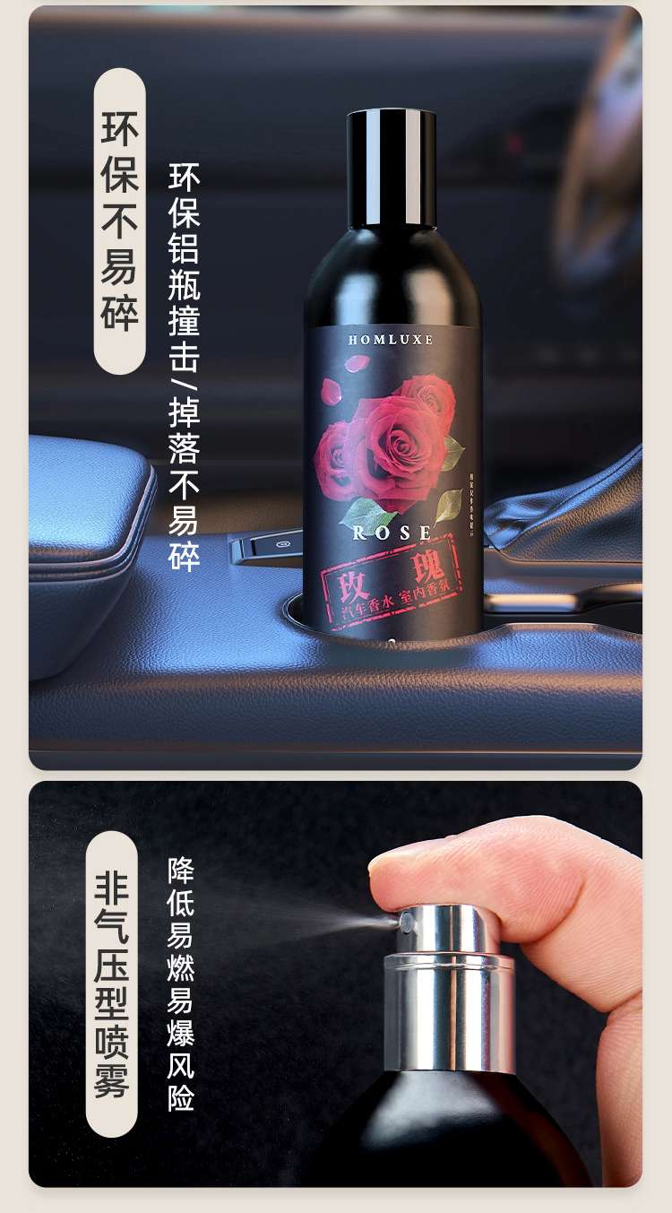 好莱舒汽车香水 无酒精配方安全车载香水室内香氛车用玫瑰香味