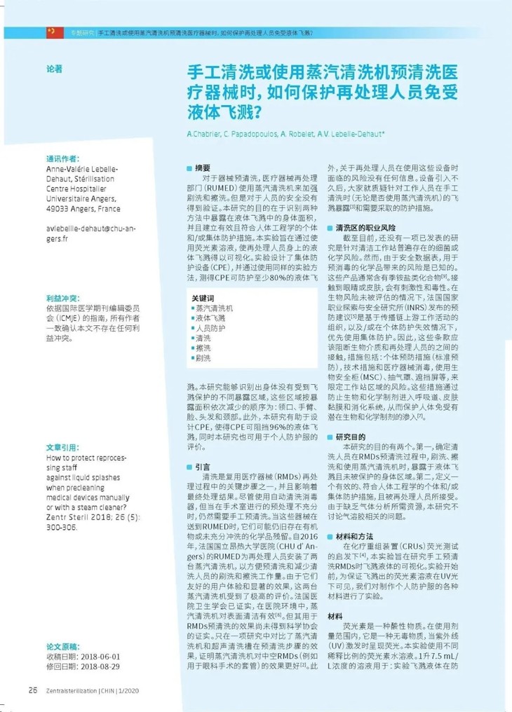 本期杂志包含了论著、教育、指南和德国无菌供应协会质量工作组指南等数篇高质量中英双语文章。