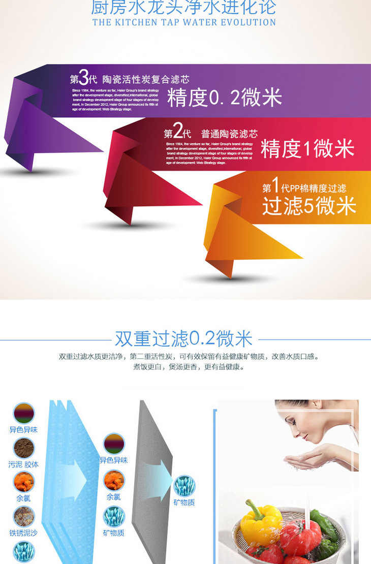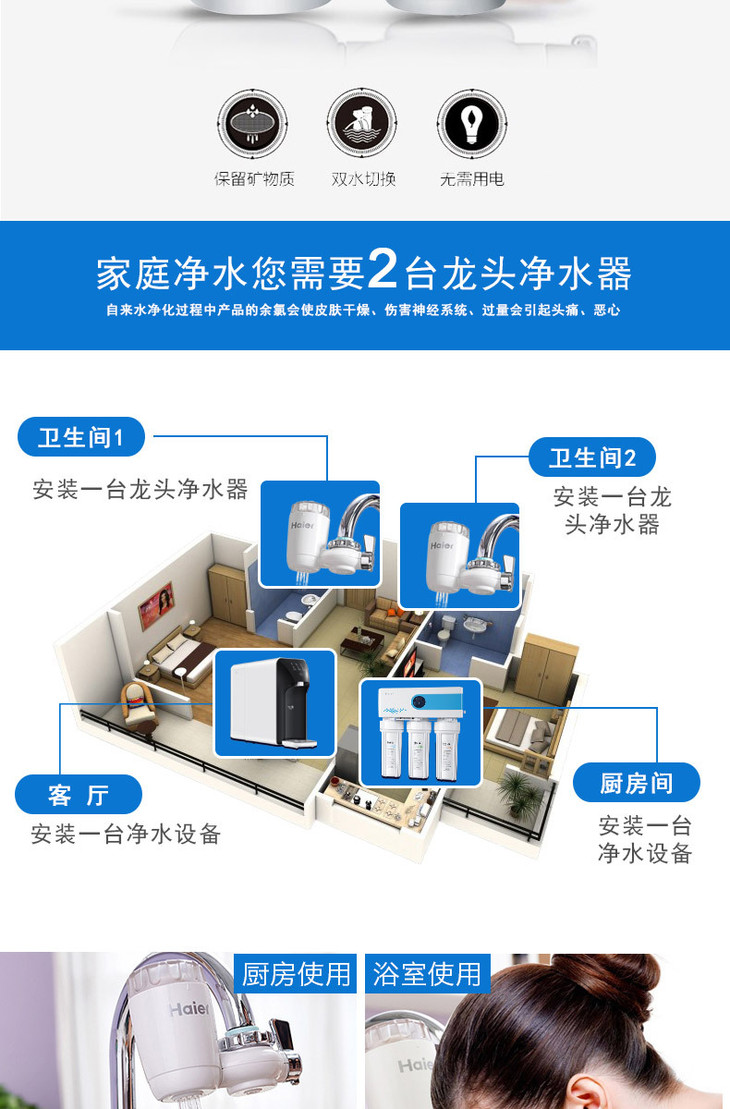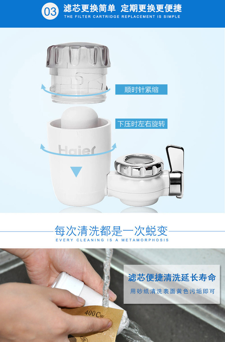 【家用电器】。海尔净水器家用自来水厨房过滤器陶瓷活性炭水龙头净水器HT101-1