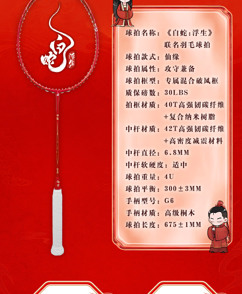 的幸白蛇联名系列仙缘高端款攻守兼备全碳素羽毛球拍专业训练单拍