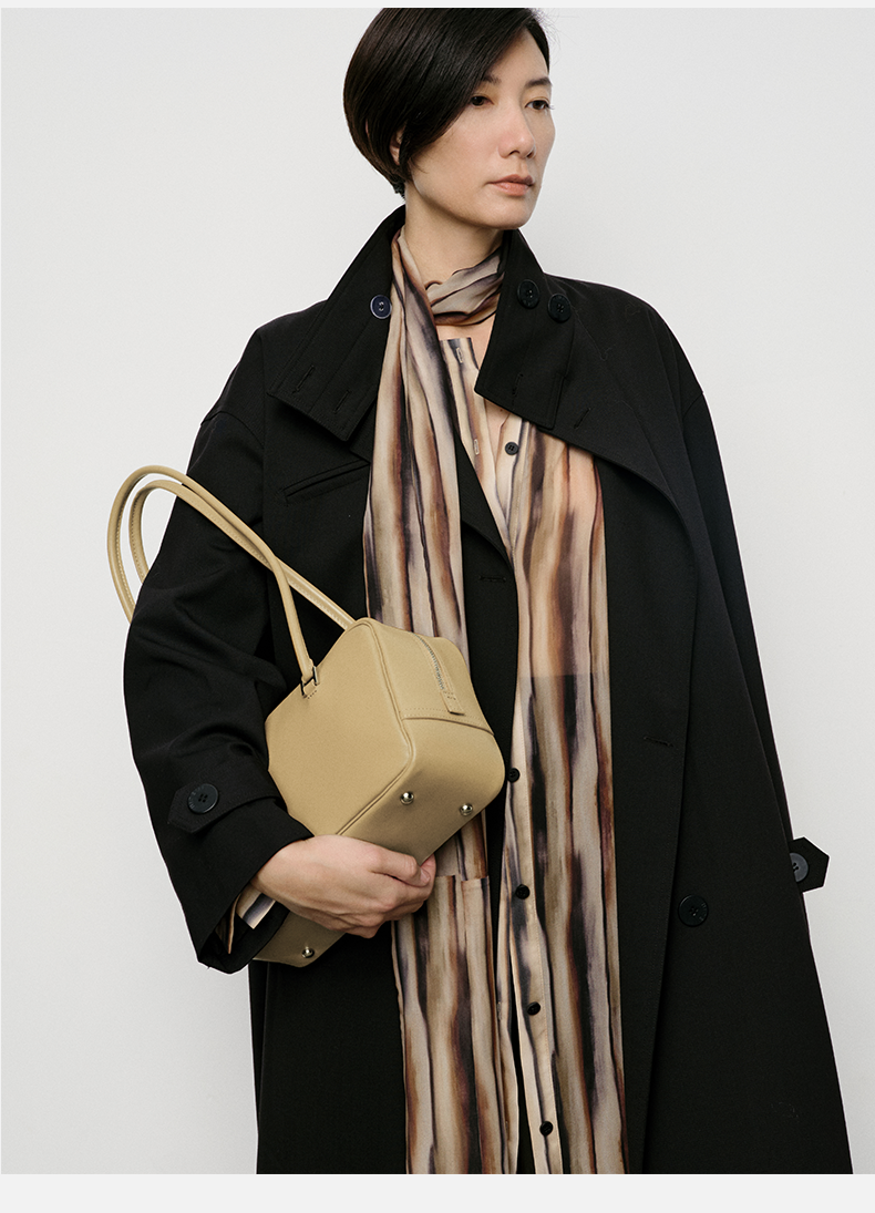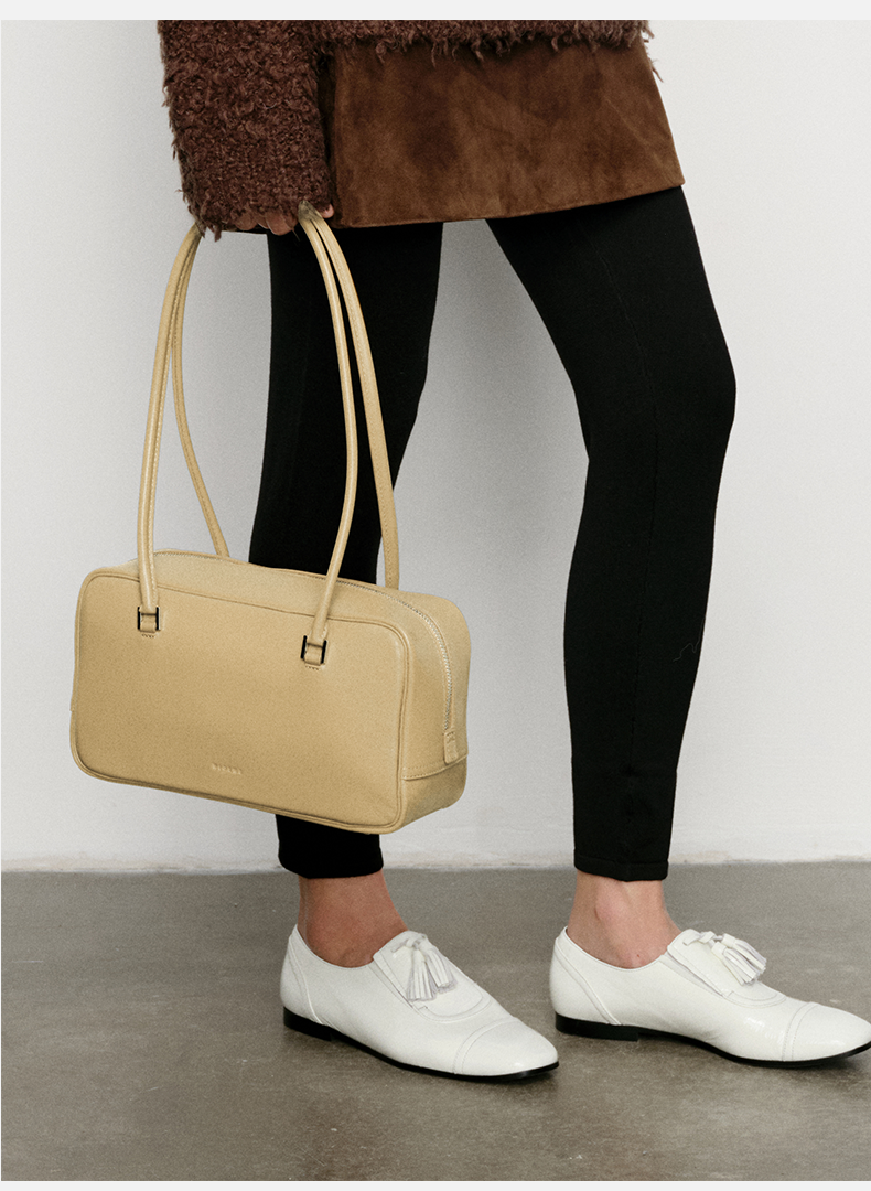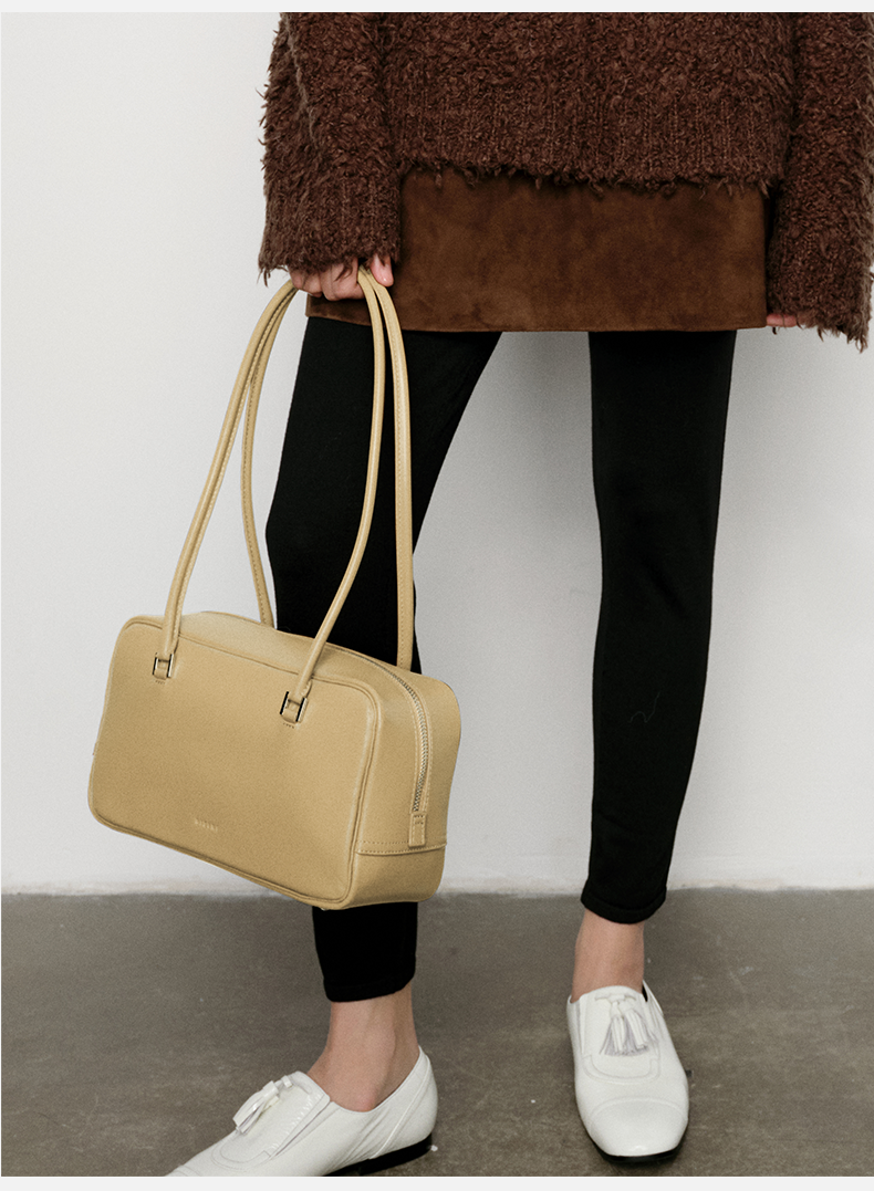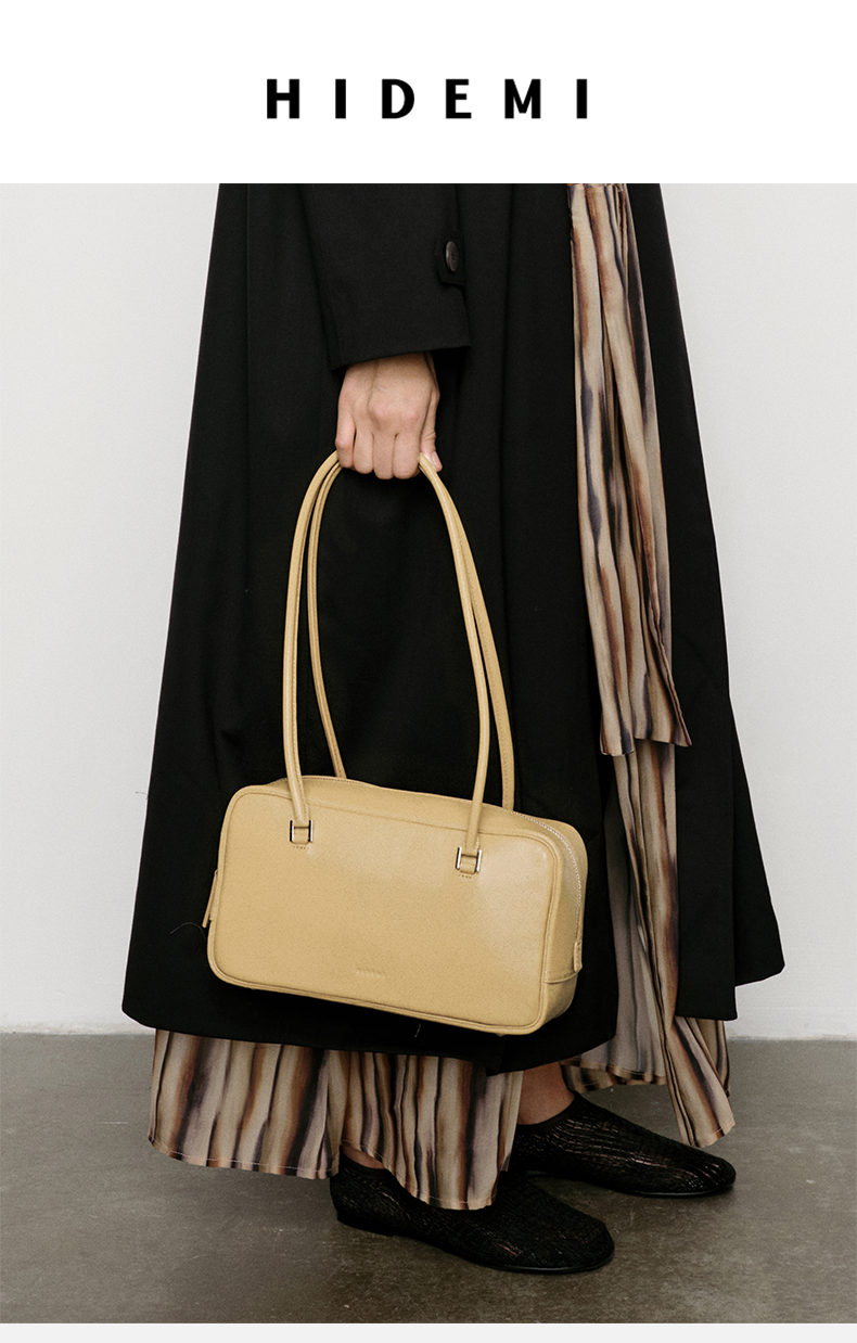 HIDEMI 牛皮波士顿两用包 可手提可腋下肩背/奶茶色