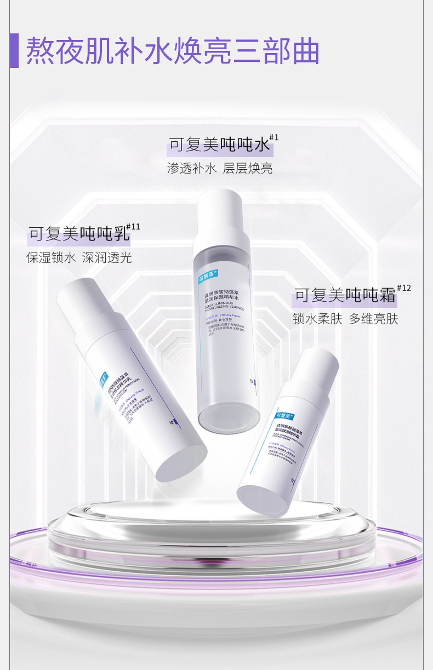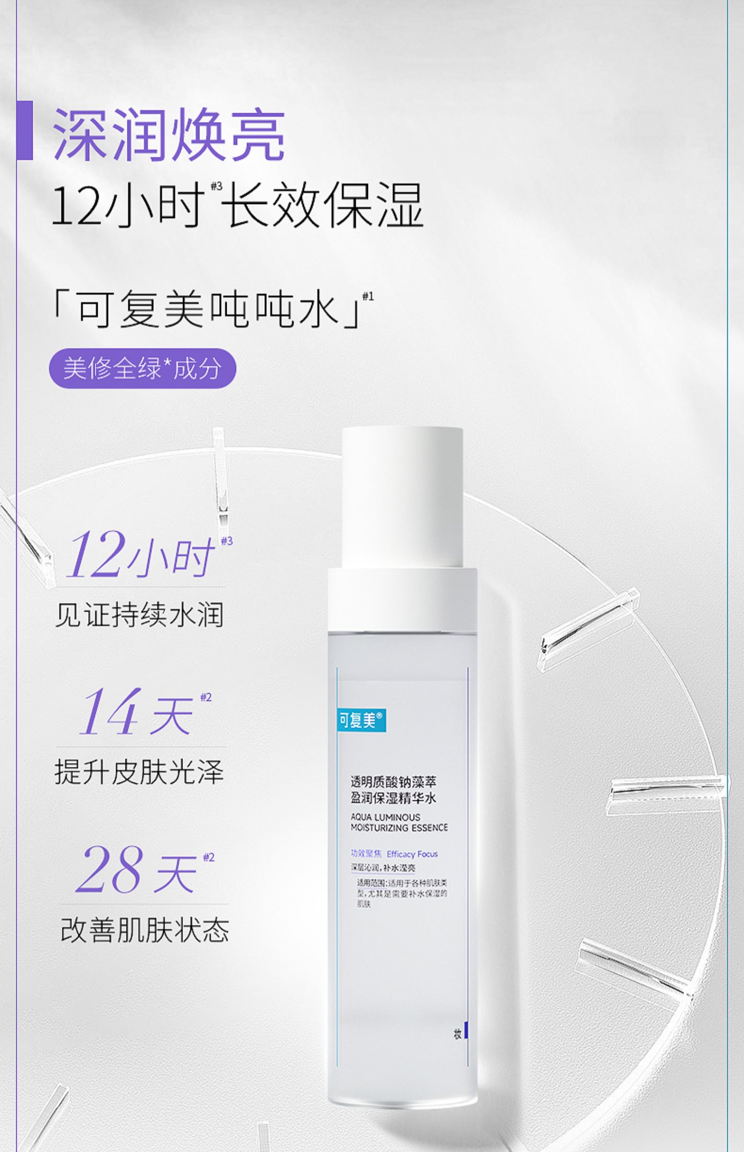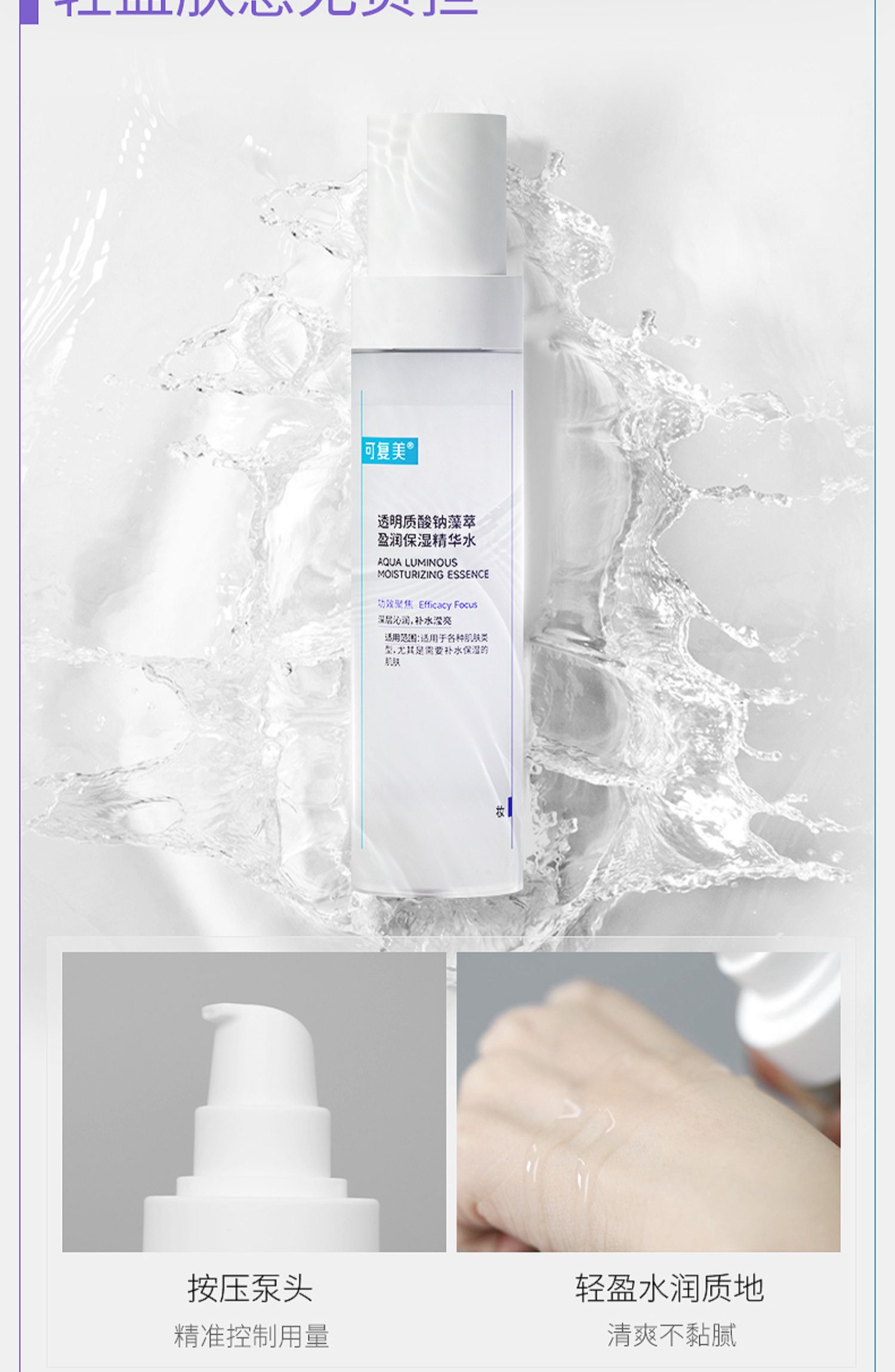 可复美透明质酸钠藻萃盈润保湿精华水120ml瓶(吨吨水)