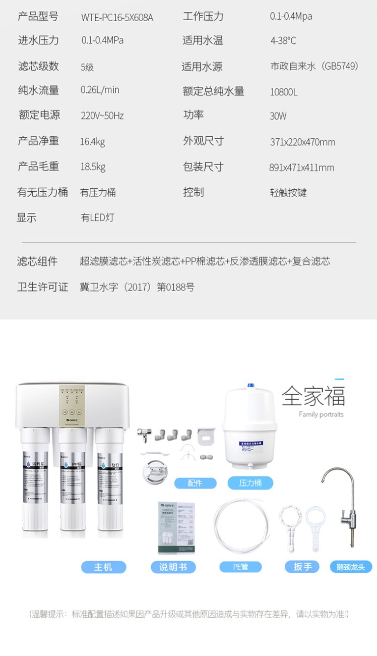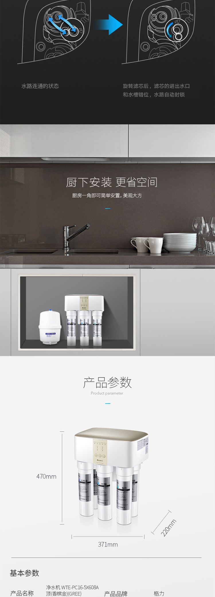 格力·反渗透净水机 WTE-PC16-5X608A /香槟金