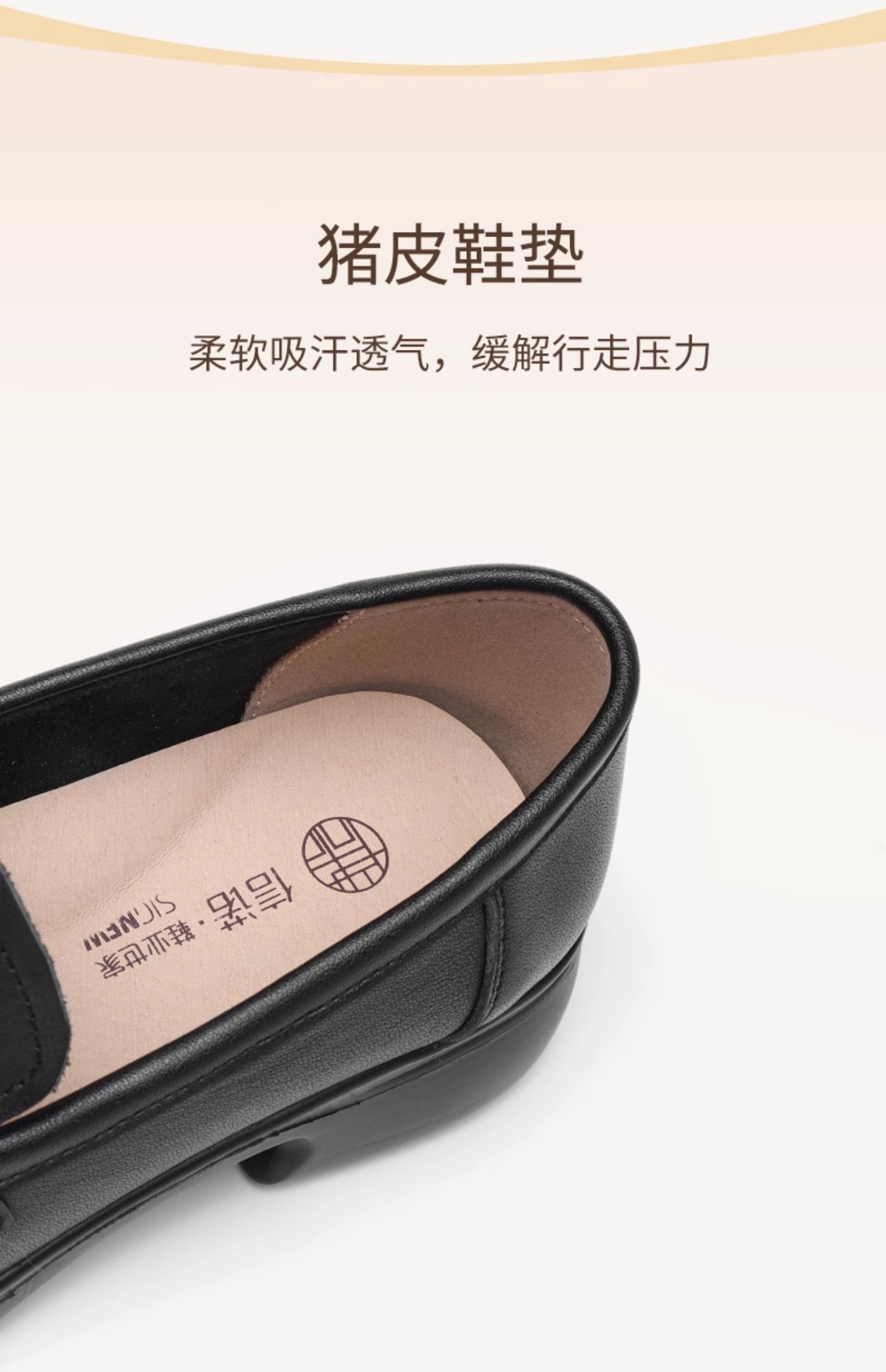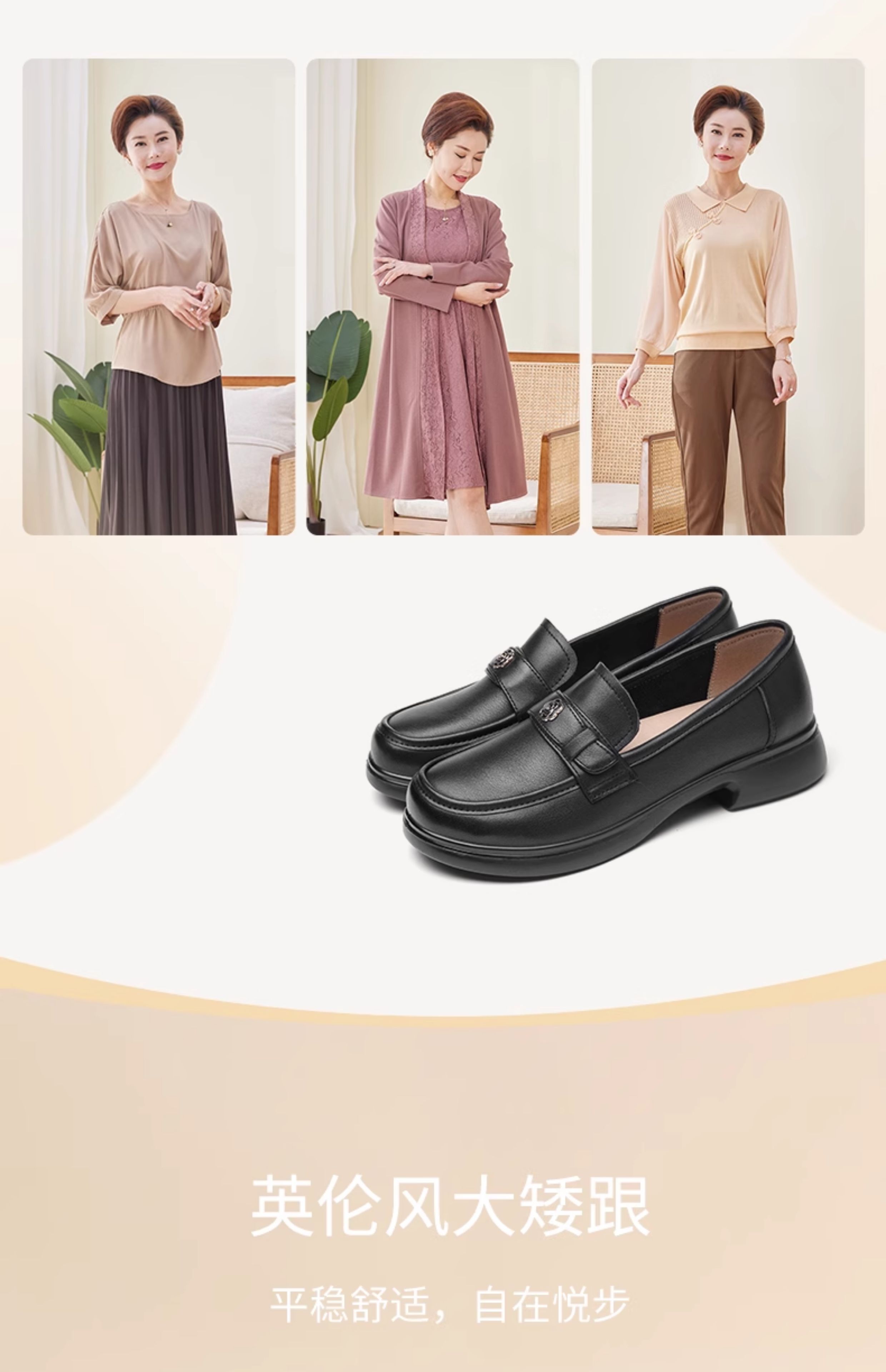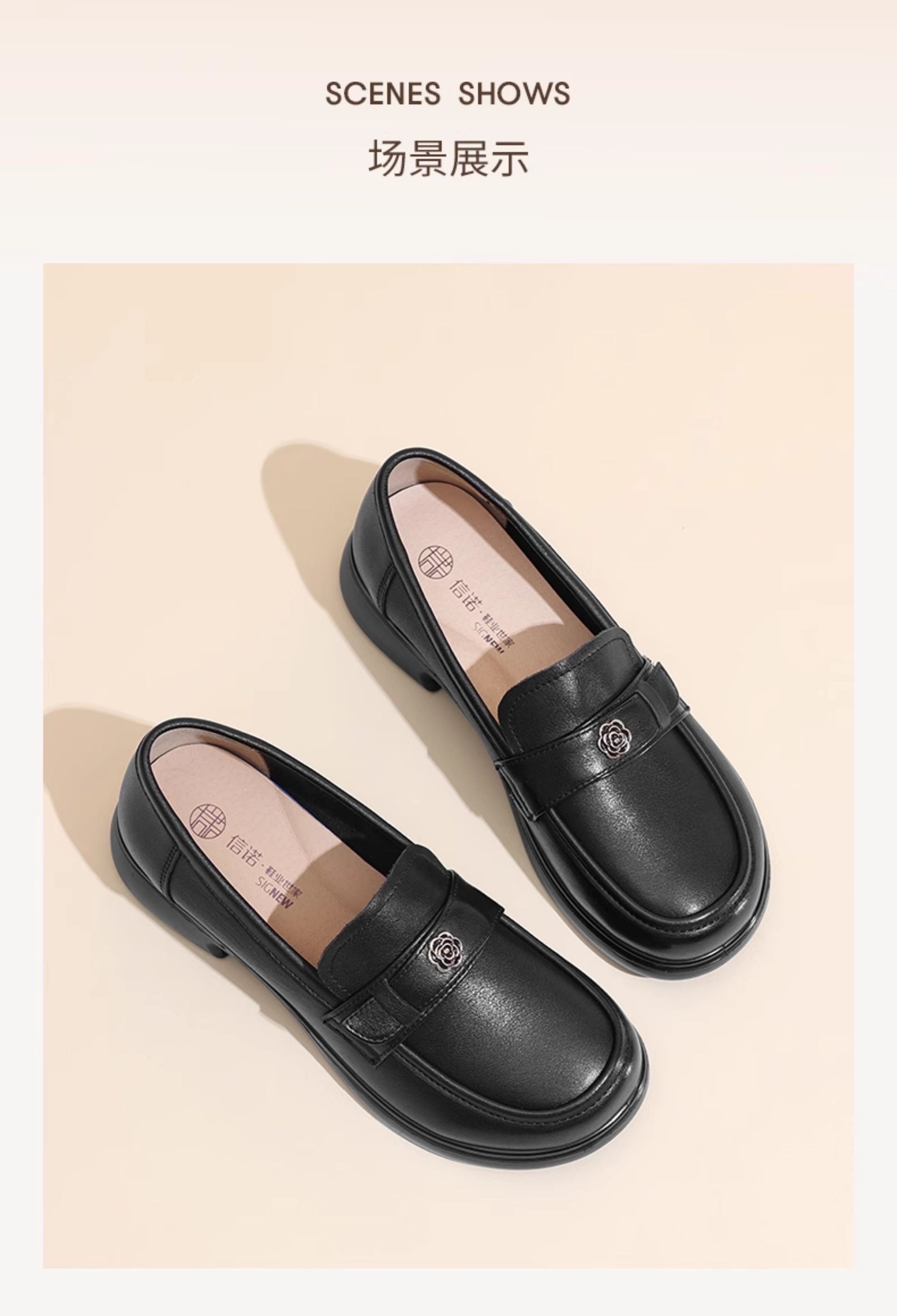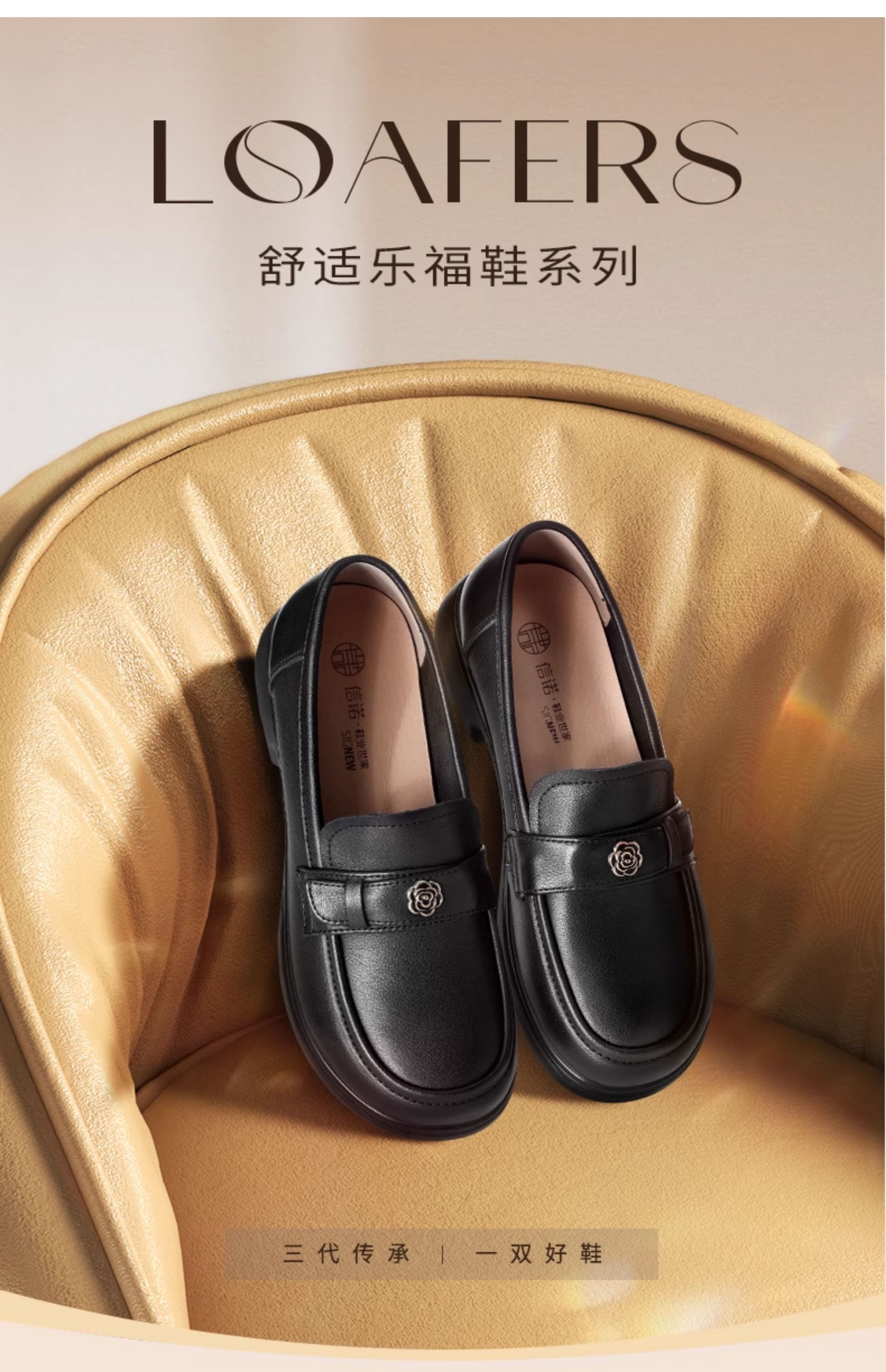 信诺妈妈鞋中老年真皮软底单鞋一脚蹬皮鞋乐福鞋女款2025秋季新款5Q8681-16