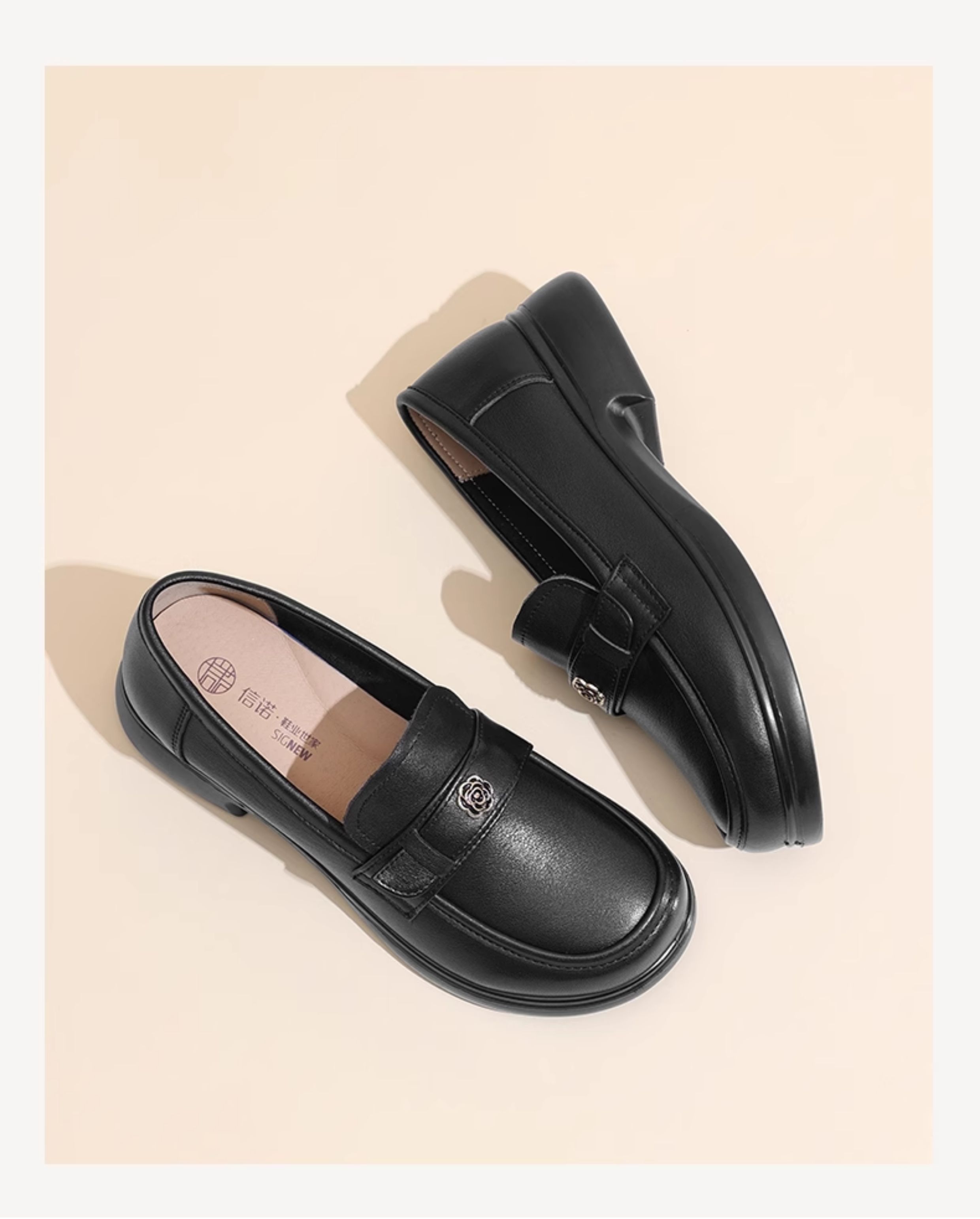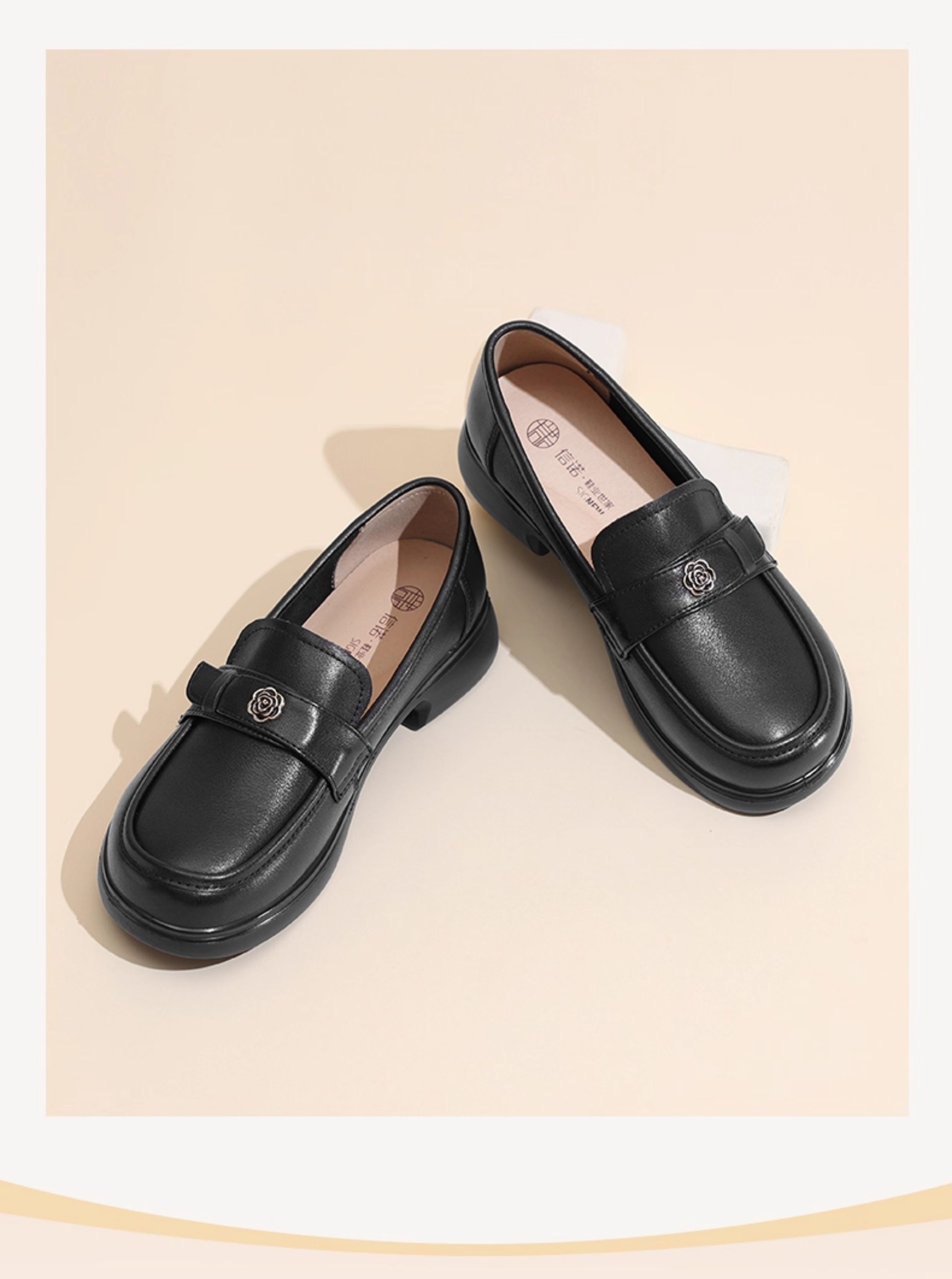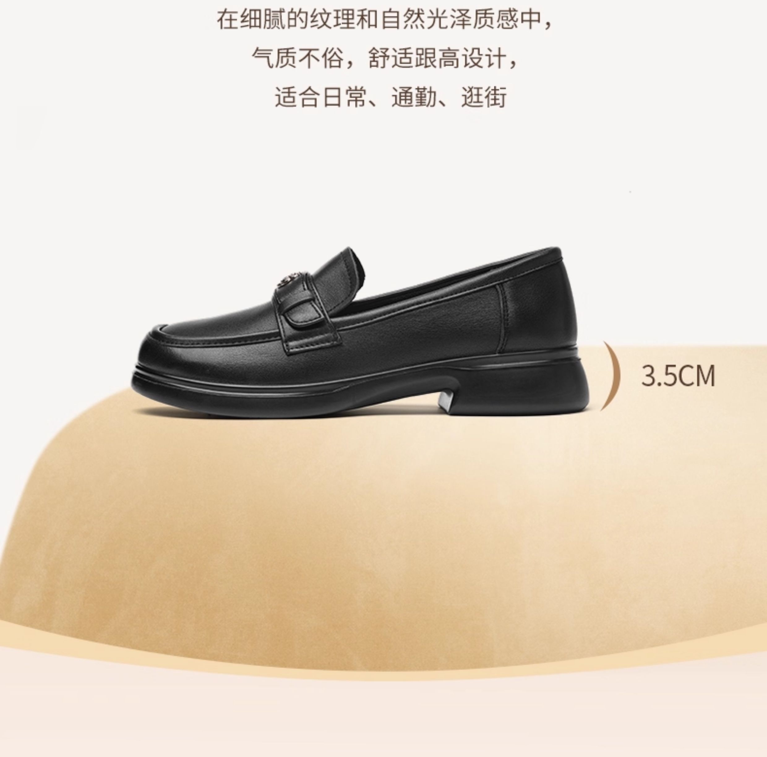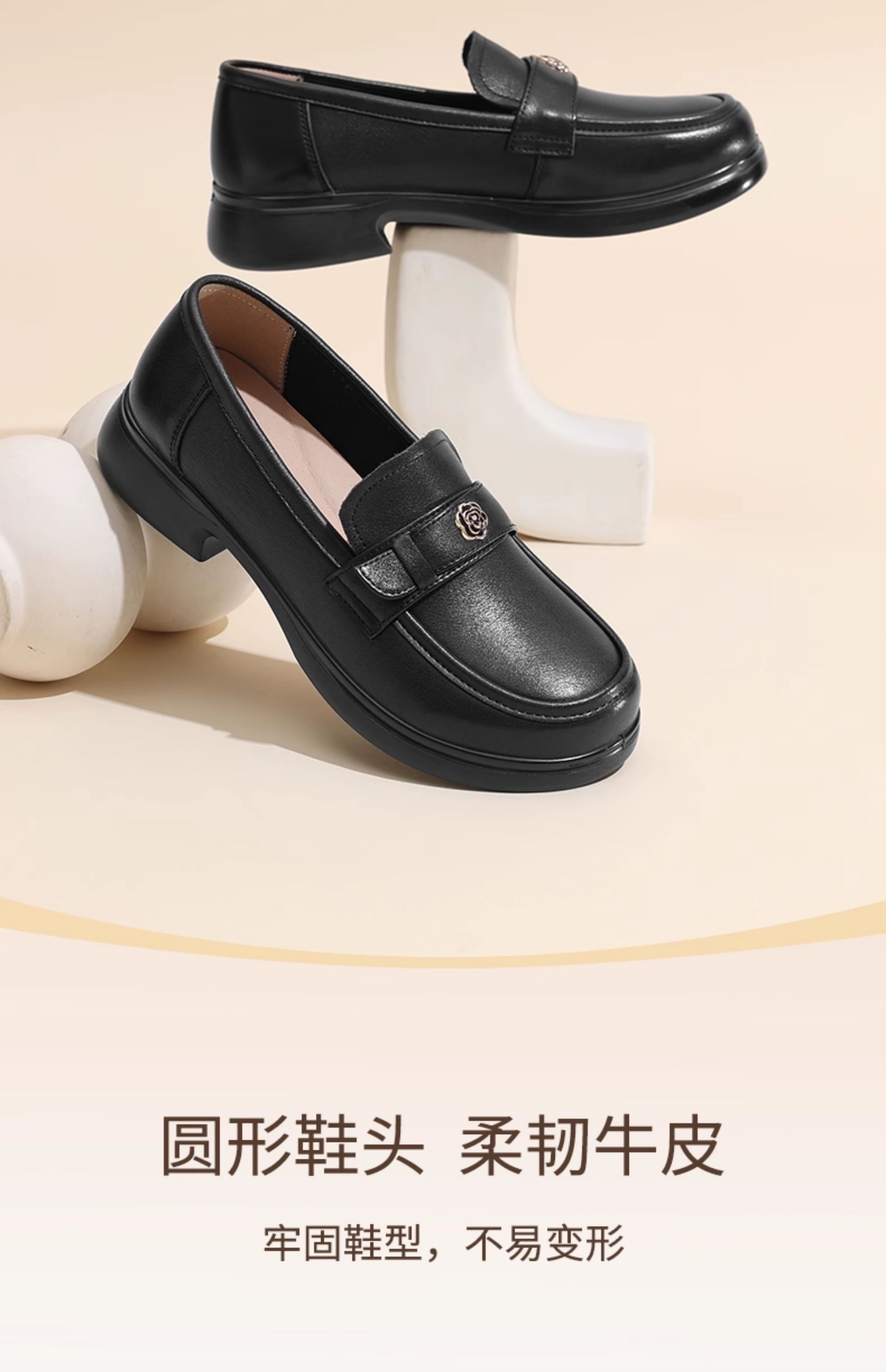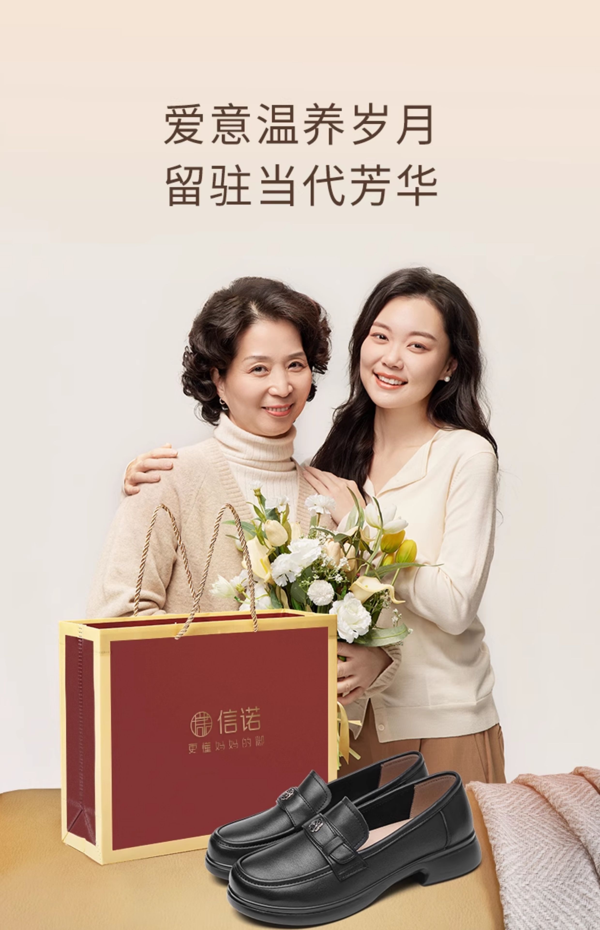 信诺妈妈鞋中老年真皮软底单鞋一脚蹬皮鞋乐福鞋女款2025秋季新款5Q8681-16