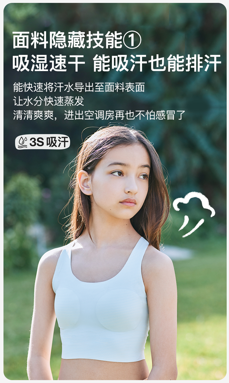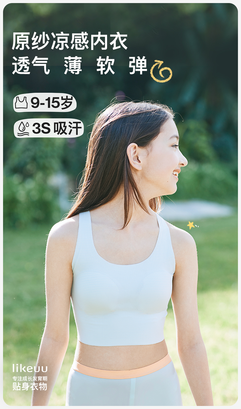 【明星同款】ubras旗下likeuu 小凉风内衣女学生初高中青春发育期儿童内衣少女文胸凉感夏