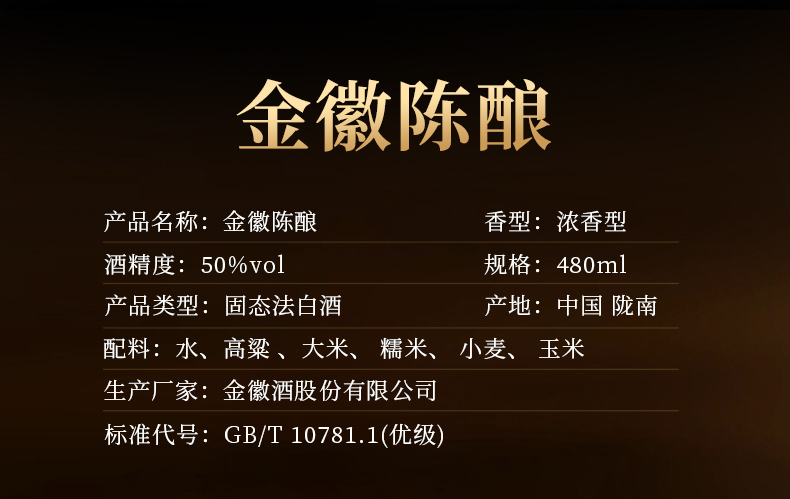 金徽酒 50度金徽陈酿480mL*4瓶 浓香型白酒