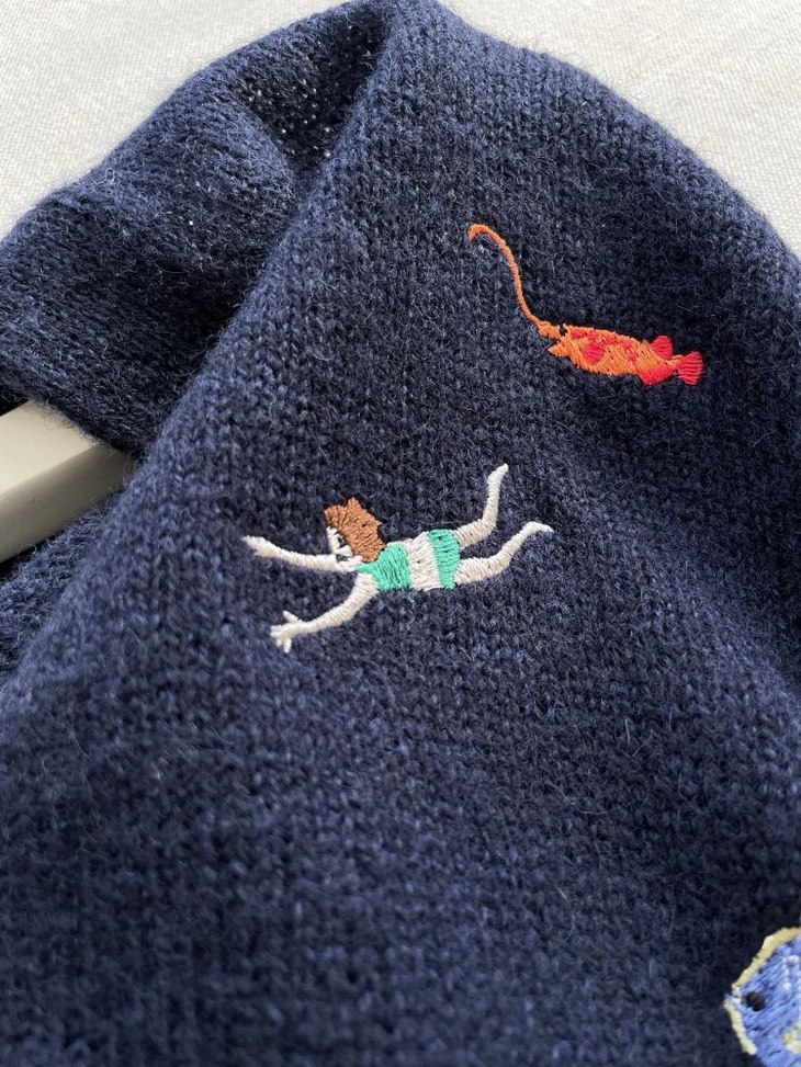 高端设计师女装 | 复古巴素兰羊毛蓬松趣味小鱼多多刺绣V领开衫