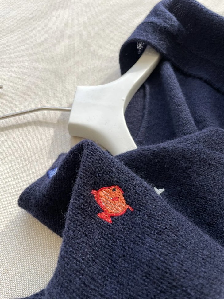 【高品质私服】【复古巴素兰羊毛蓬松趣味小鱼多多刺绣V领开衫】V领设计很好地修饰脸型和颈部线条,超级柔软舒适 展现慵懒随性的女人味【无标出货 介意慎拍】-WD
