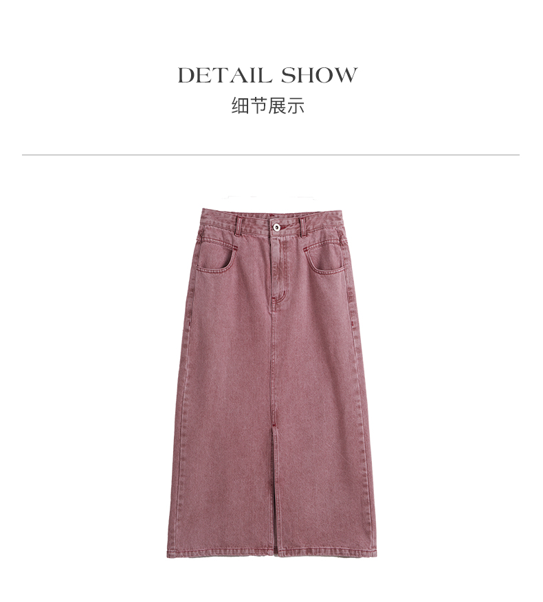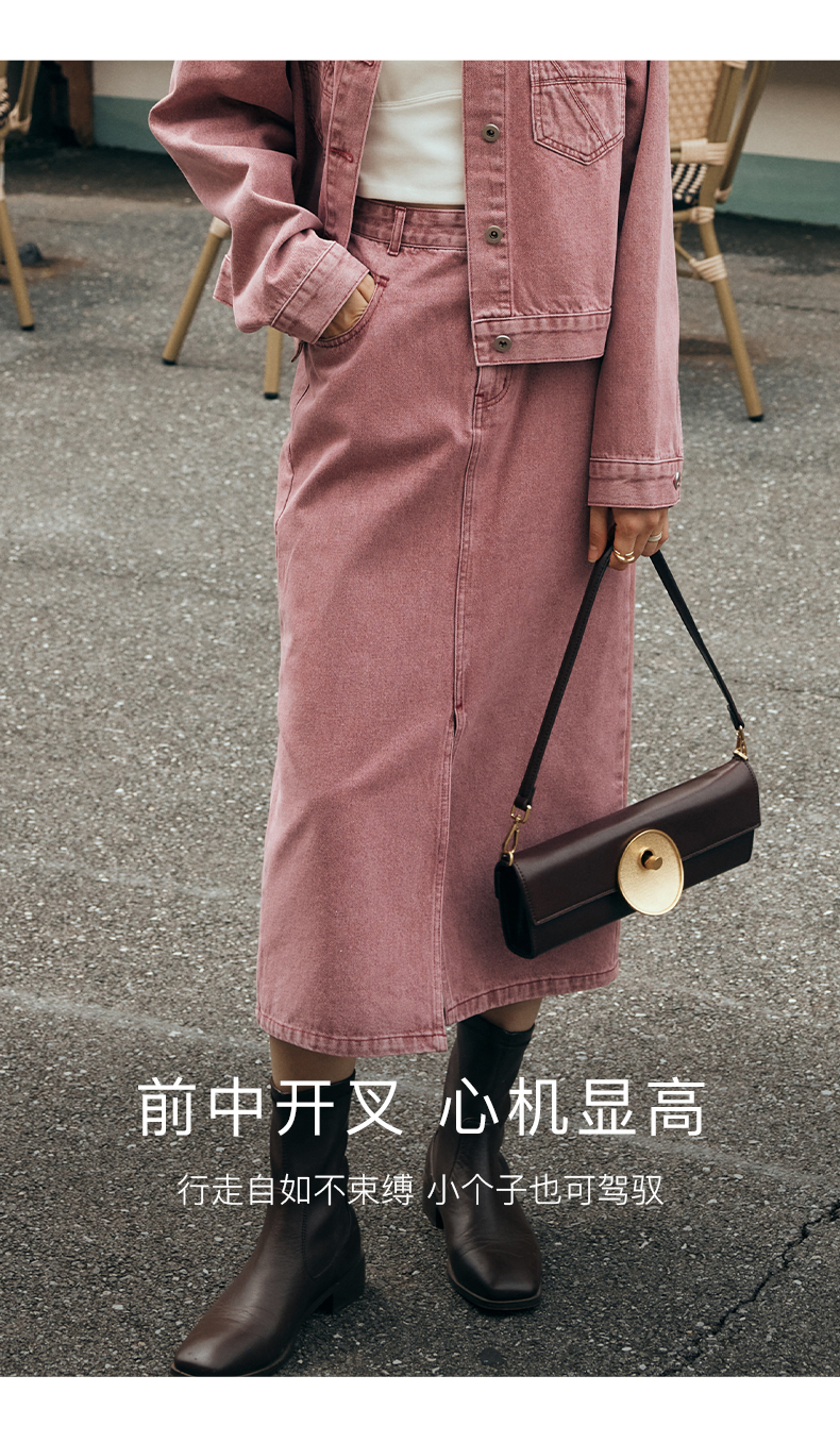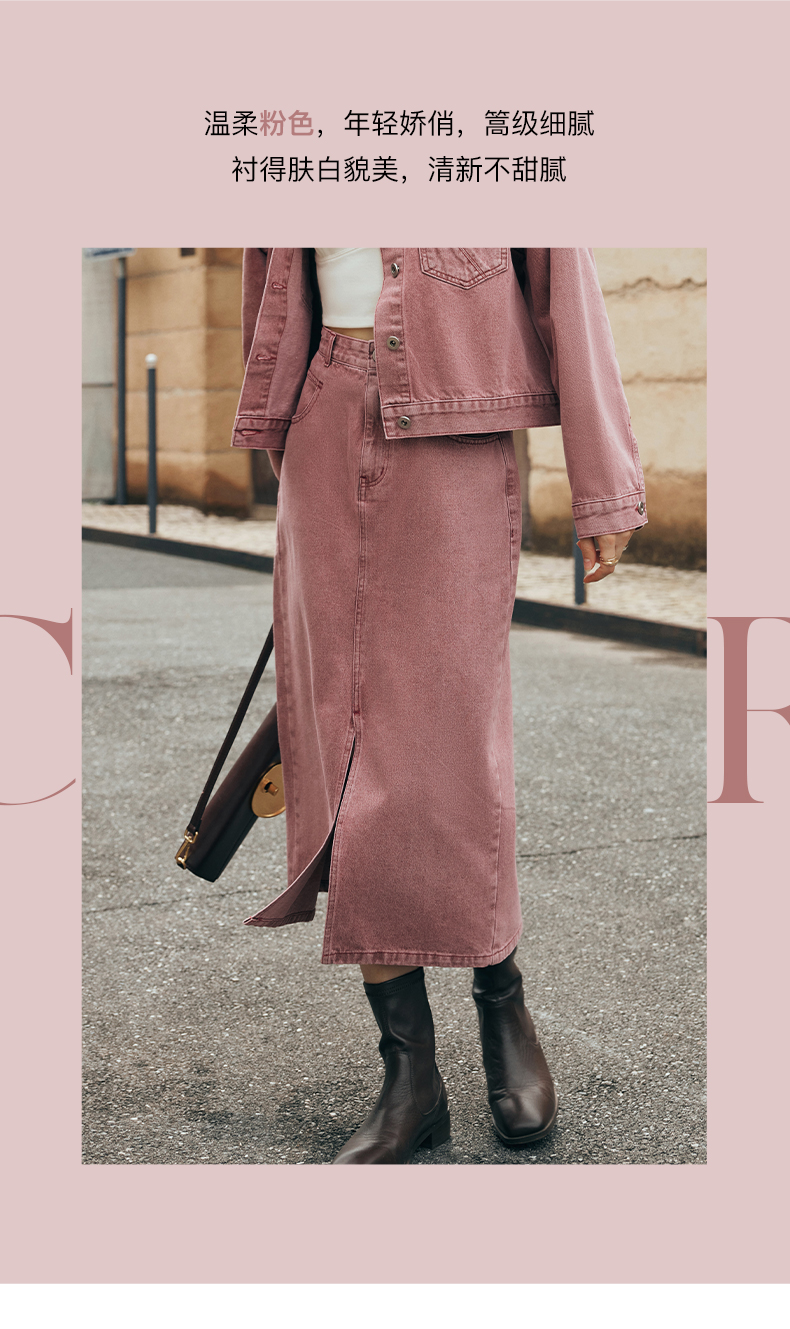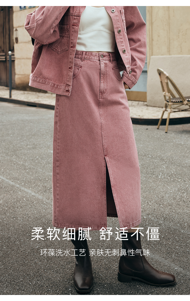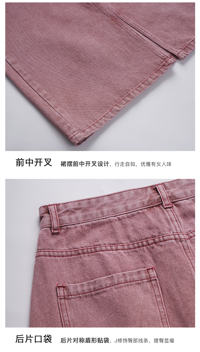 OLrain欧芮儿法式粉色牛仔半身裙女夏季2023新款高腰直筒开叉裙子