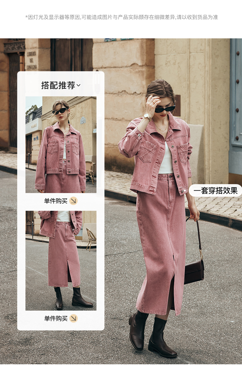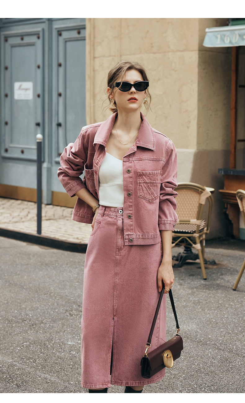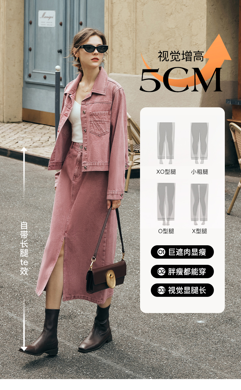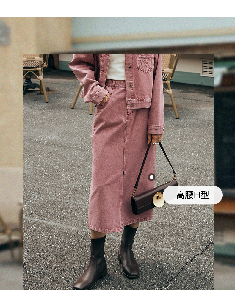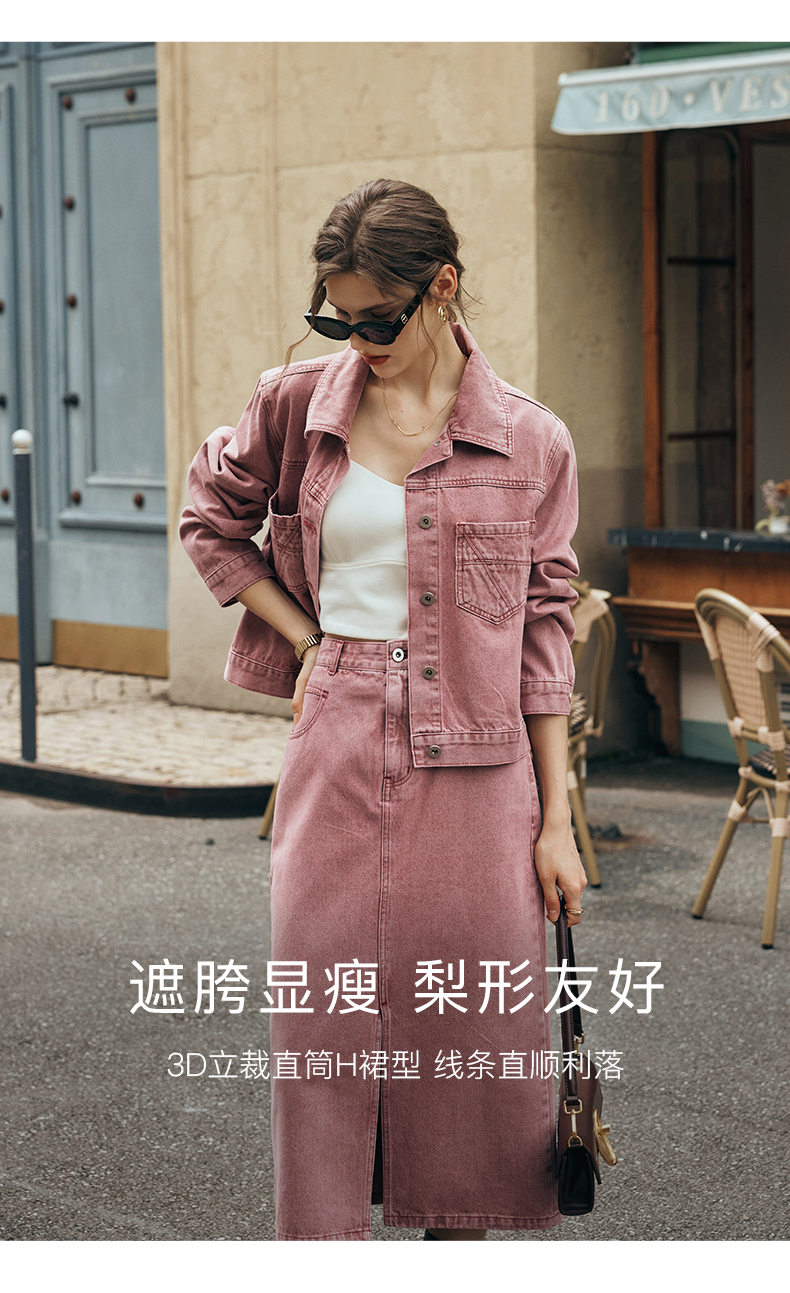 OLrain欧芮儿法式粉色牛仔半身裙女夏季2023新款高腰直筒开叉裙子