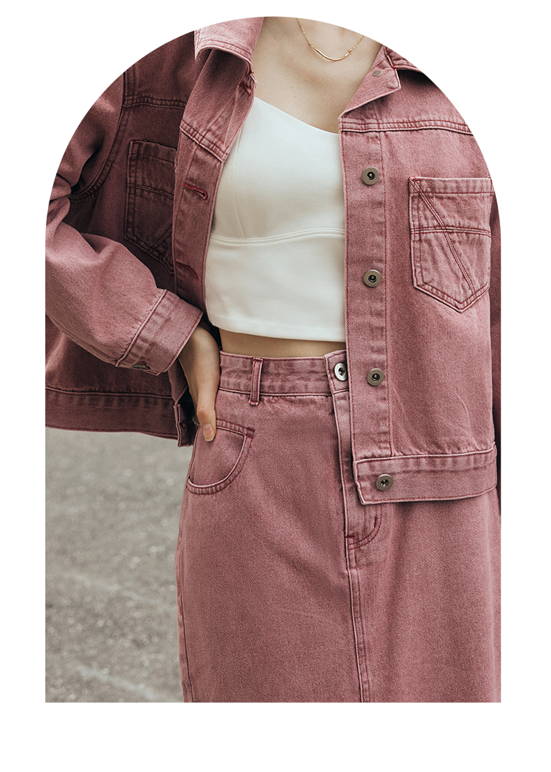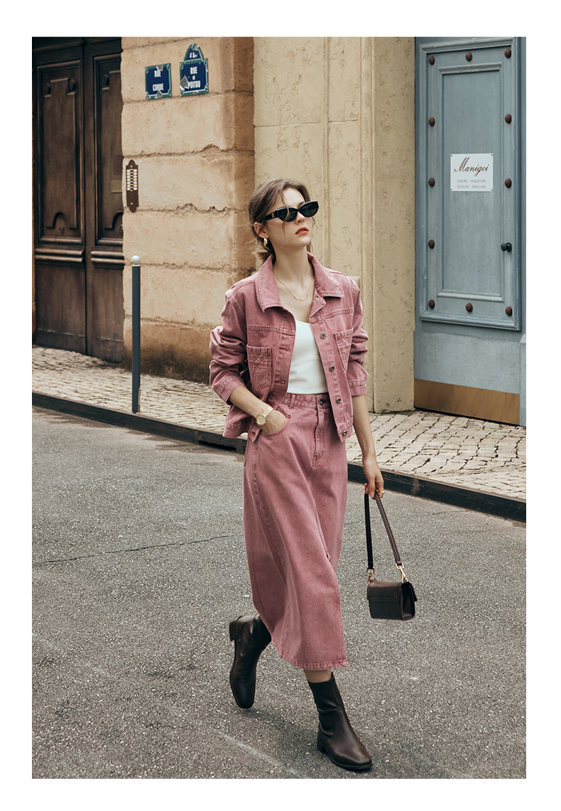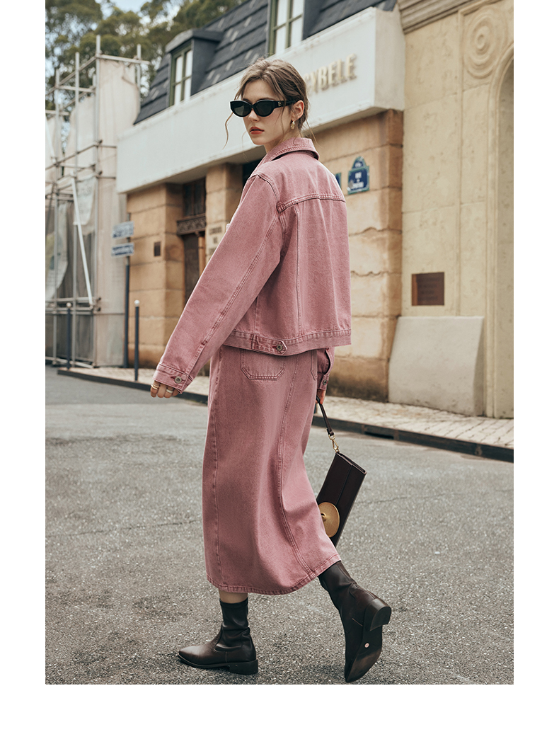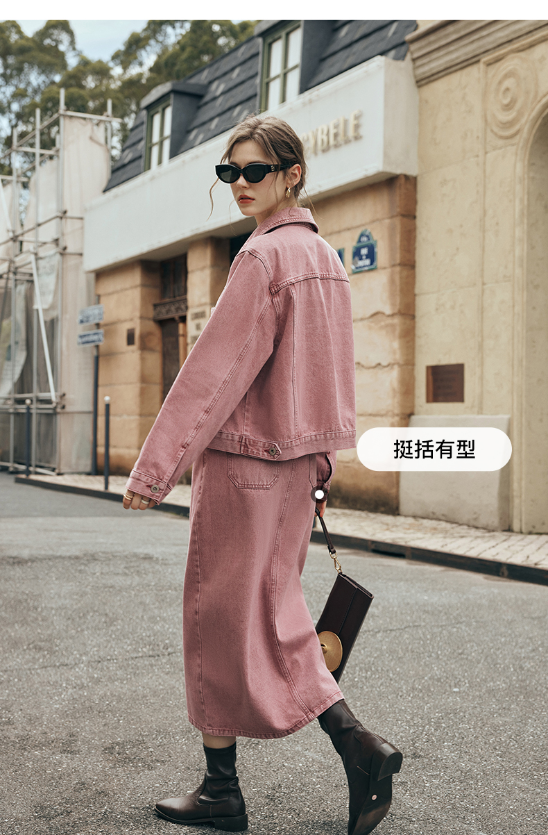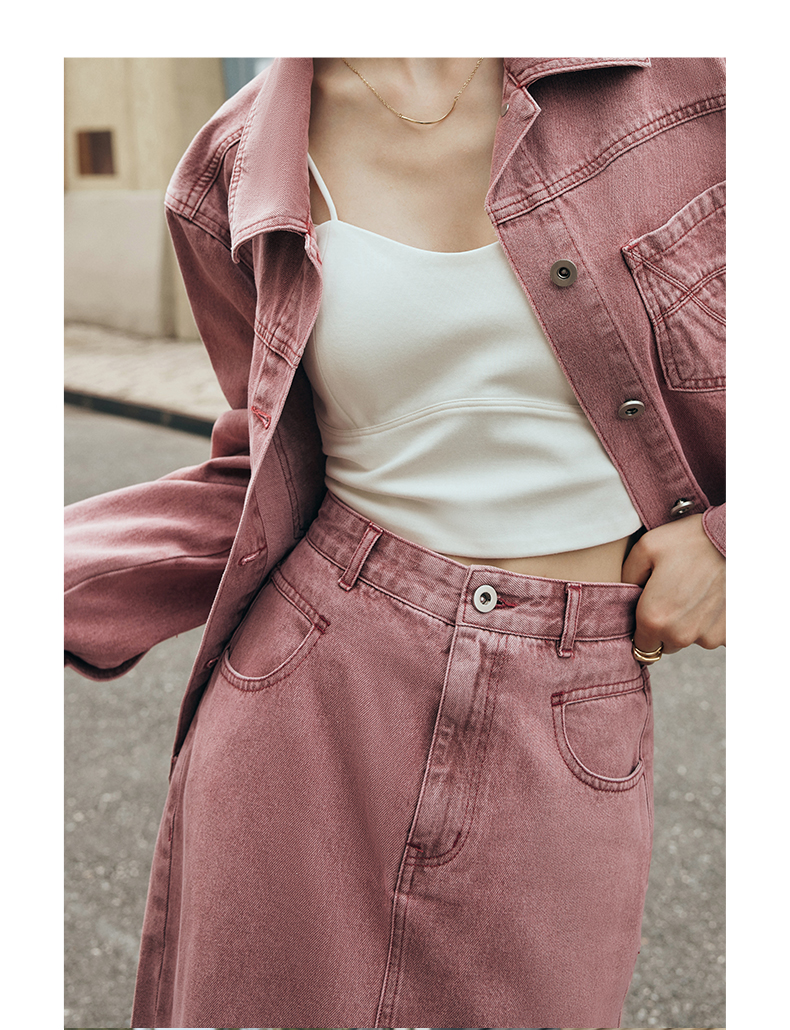 OLrain欧芮儿法式粉色牛仔半身裙女夏季2023新款高腰直筒开叉裙子