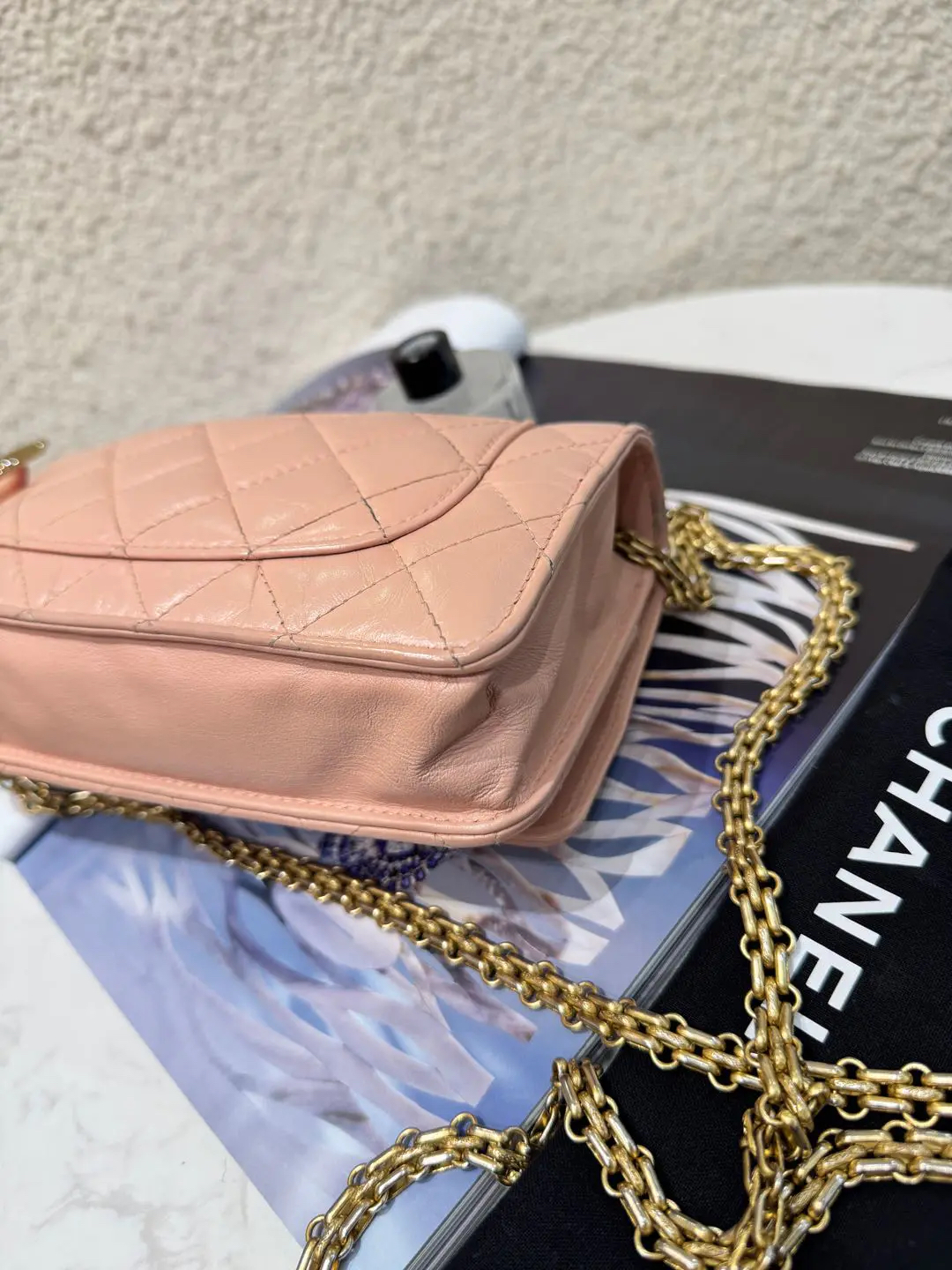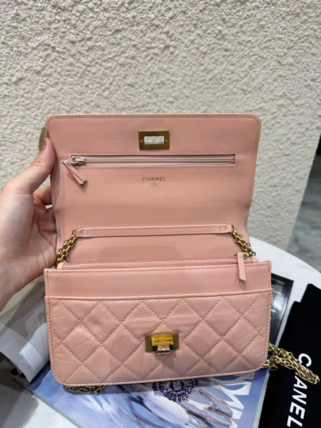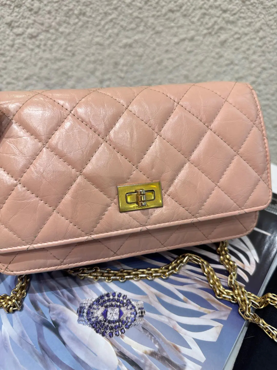 Chanel 2.55 woc 粉色 油蜡牛皮 链条包